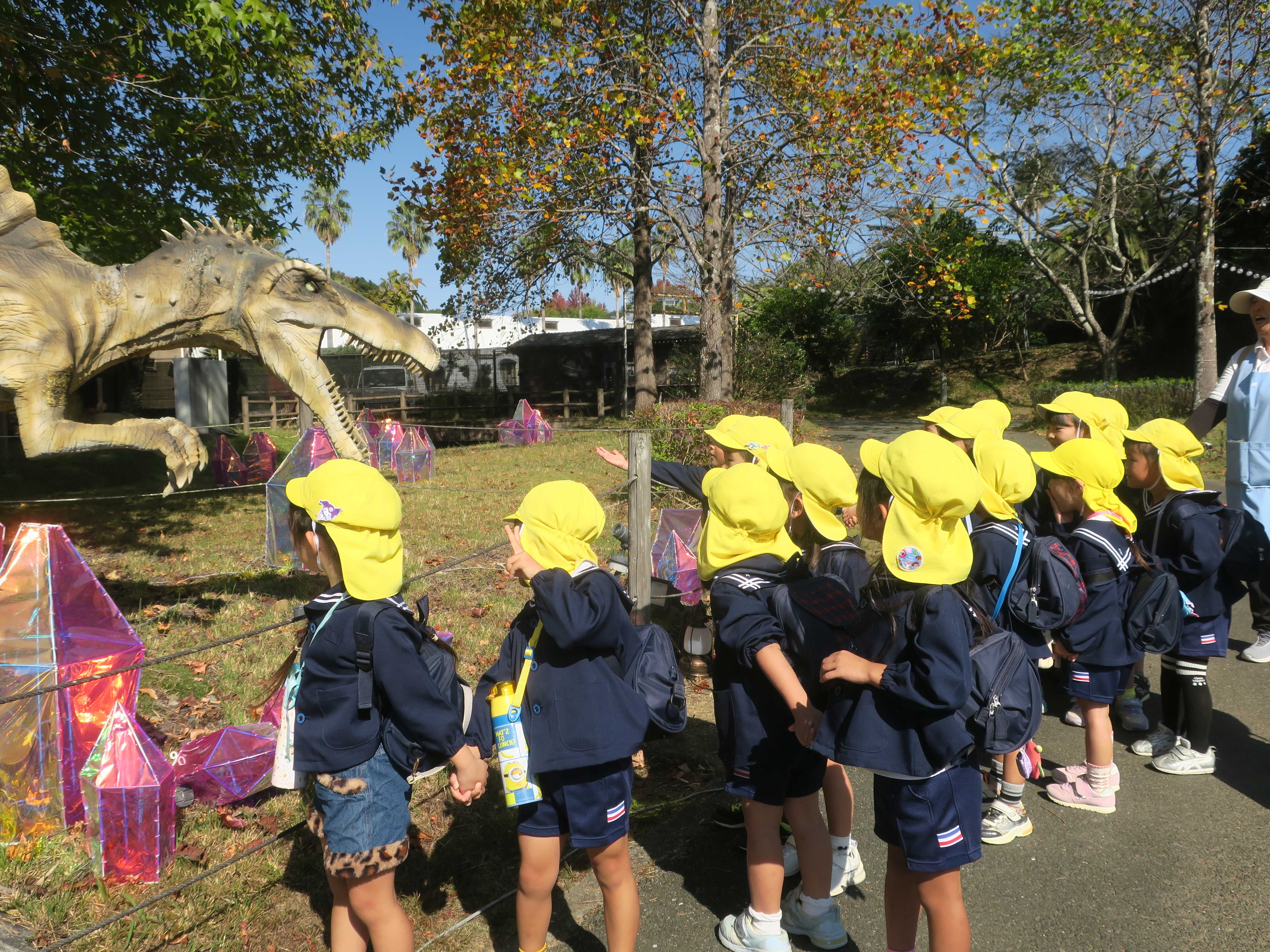 園外保育へ行ってきました! ゆり・あやめ組さんが園外保育で浜松フルーツパークへ行ってきました♪みんなでバスに乗って行ってきましたよ。パーク内では、温室の植物や恐竜のオブジェを見て回ったり、みんなでおうちの方が作ってくれたおにぎりやサンドイッチを食べたりしました。お昼ご飯を食べたあとは、遊具でたっぷり遊んで帰ってきましたよ。とてもいいお天気の中、たくさん遊んでこれました♪