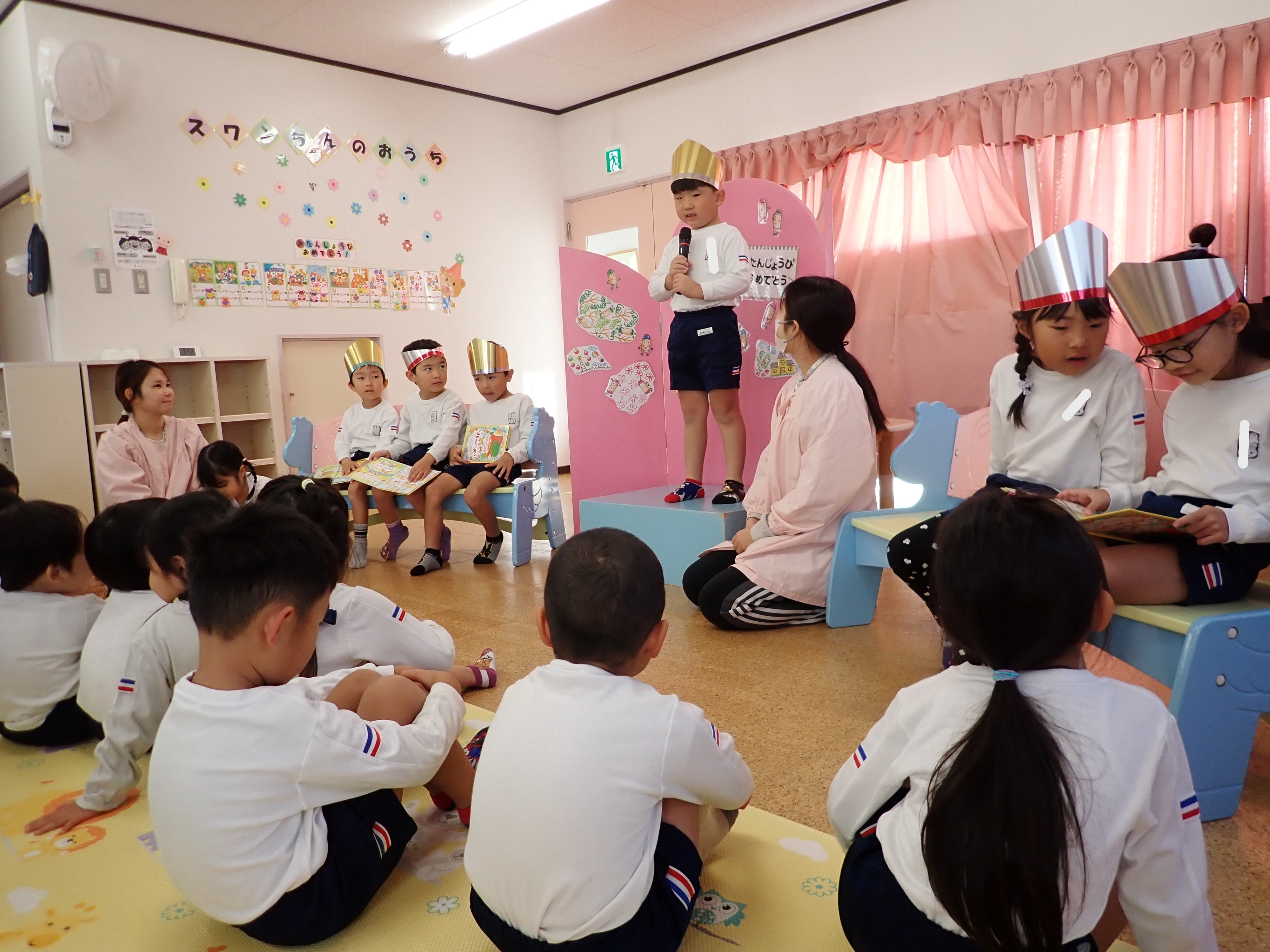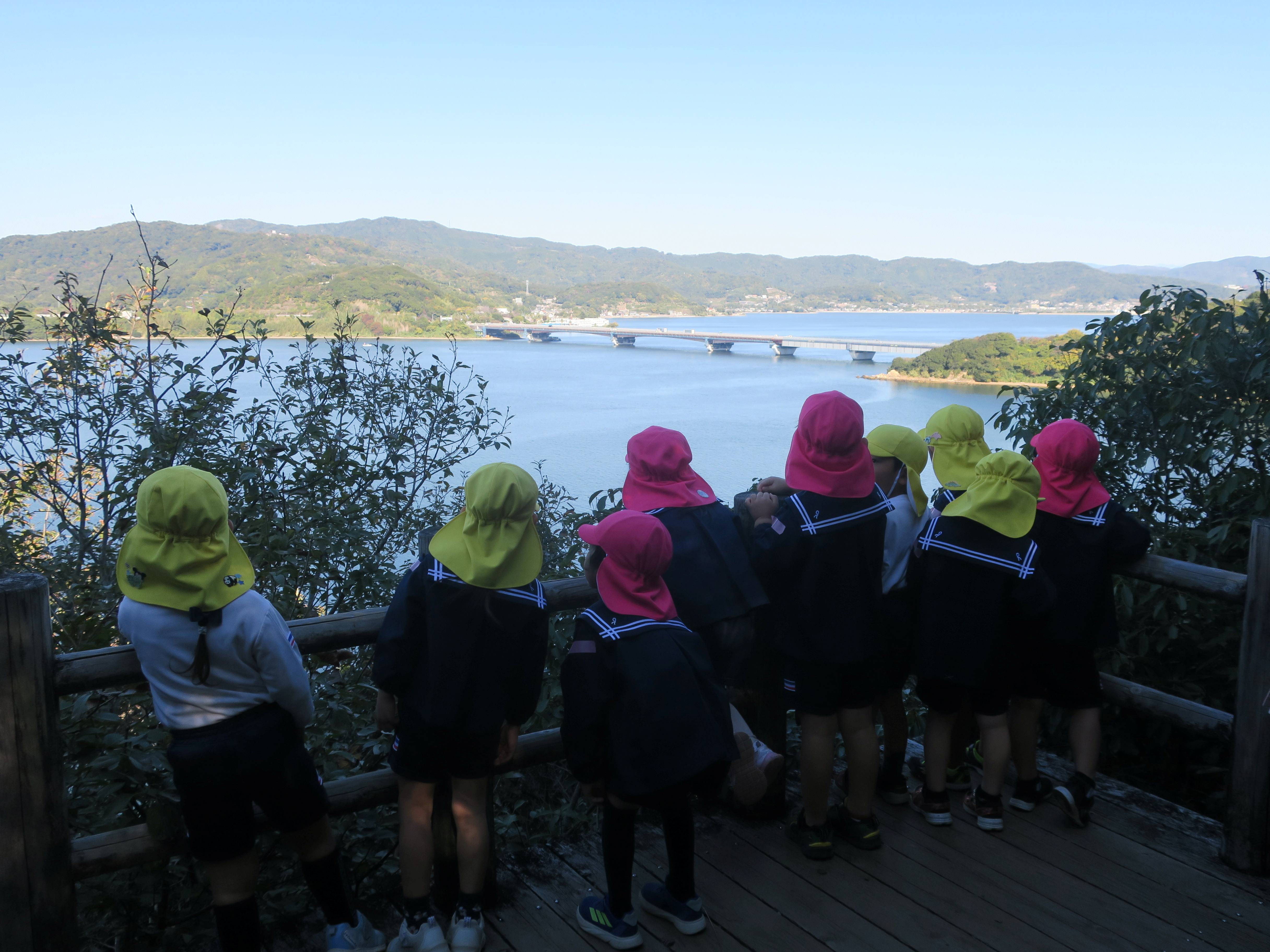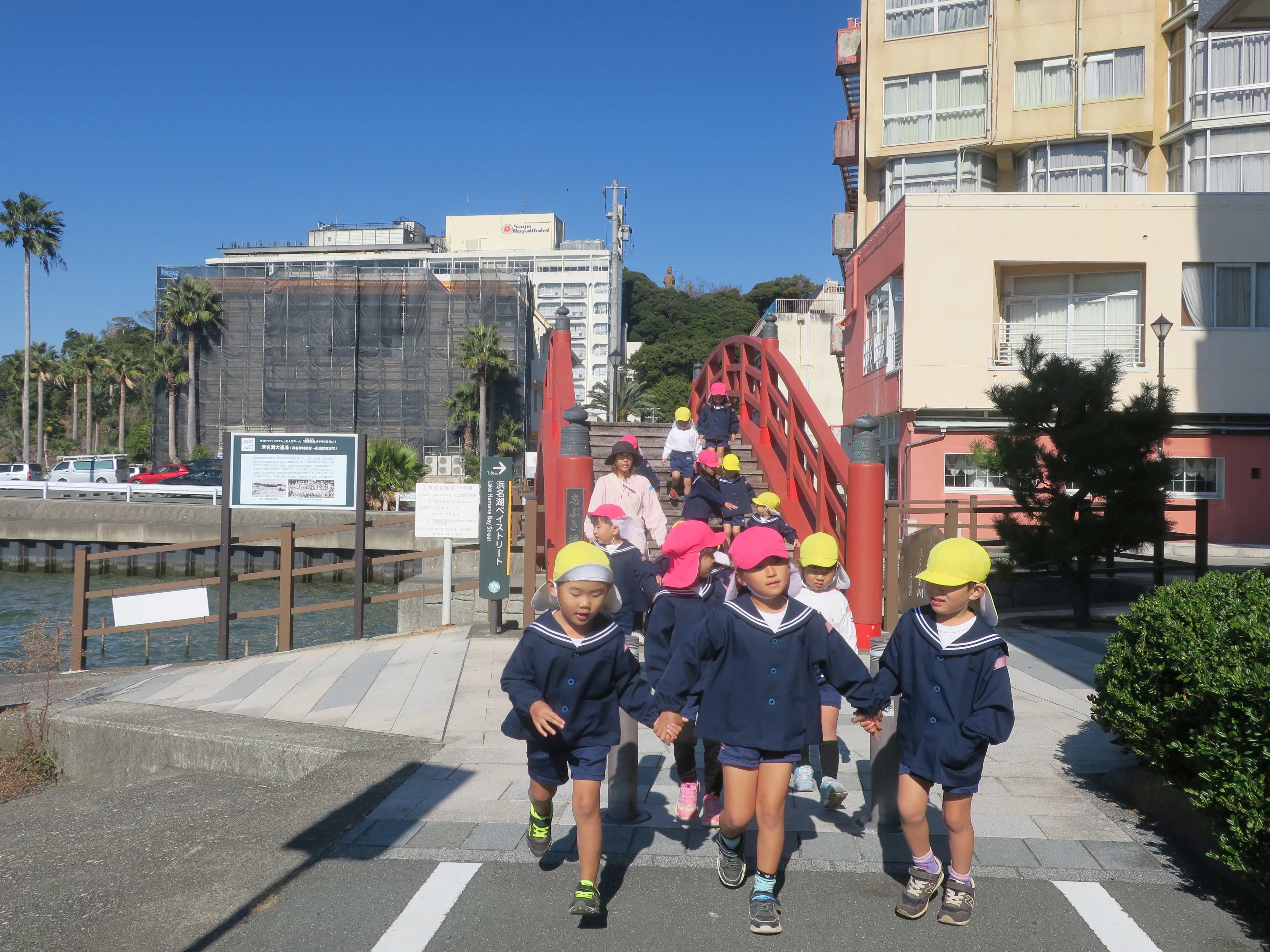 11月のお誕生会を行いました♪ 11月のお誕生会が行われました。11月生まれのお友だち、お誕生日おめでとう♪お誕生会のあと、きく・ゆり・あやめ組さんみんなでお散歩に出かけましたよ!舘山寺山を目指して、手を繋いで歩きました。舘山寺山では、展望台で海を眺めたり穴大師様の中に入ってお参りをしたりしました。海がとてもきれいでしたよ~!帰り道でも、みんなで仲良く手を繋いで舘山寺探検を楽しみました♪