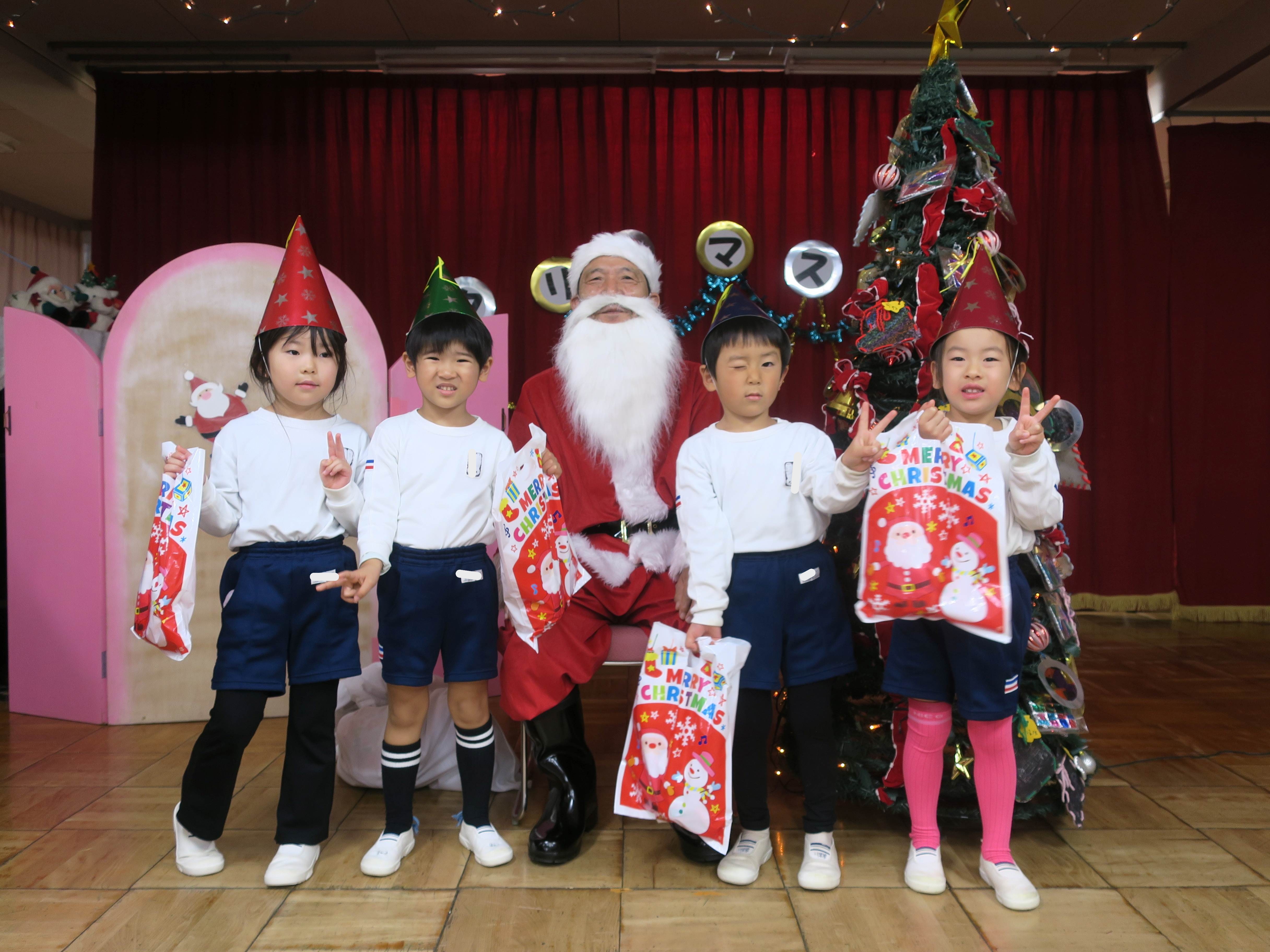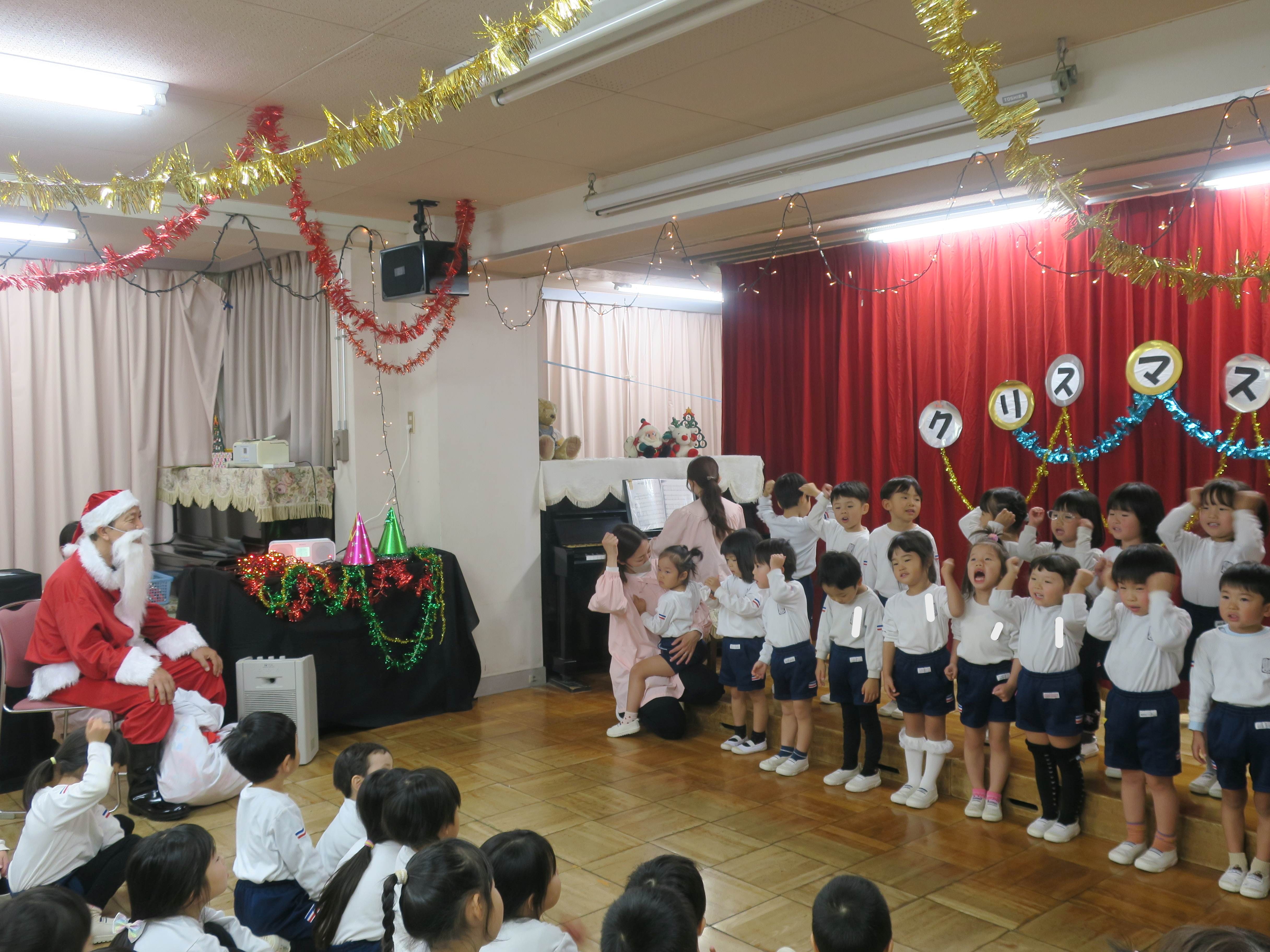 12月のお誕生会がありました。12月生まれのお友だち、お誕生日おめでとう!お誕生会のあとは子どもたちが楽しみにしていたクリスマス会♪キラキラに装飾された保育室に目を輝かせていましたよ。サンタさんも登場し、子どもたちが考えた質問に答えてもらったり、各クラスでお歌の発表をサンタさんに見てもらったりしました。そして楽しみにしていたプレゼントをいただきましたよ!「ありがとう!!」「メリークリスマス!」とサンタさんにお礼をしてにこにこ笑顔の子どもたちでした。