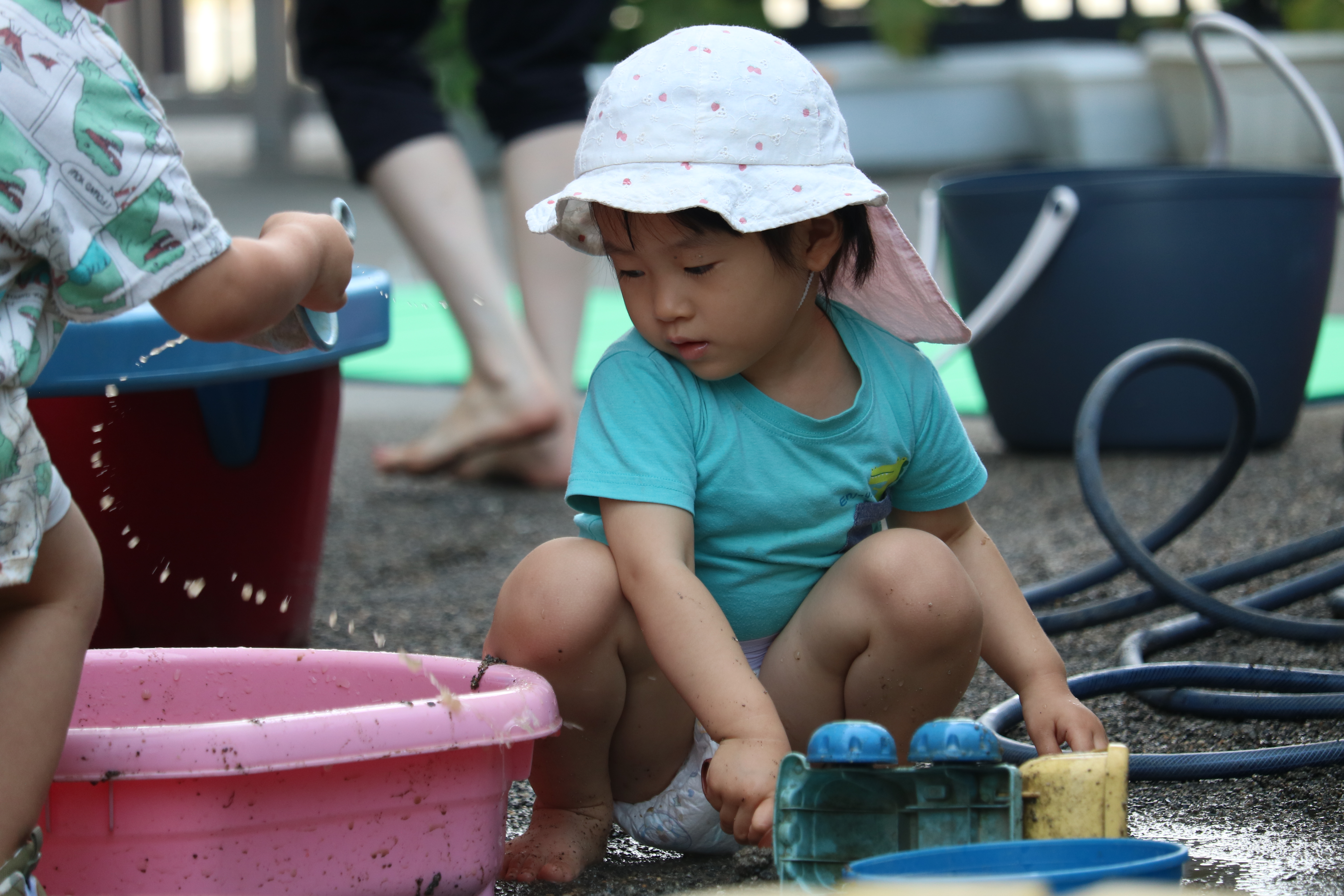 今回も、子どもたちの楽しそうな笑顔がたくさん見られ、泥の感触を思いきり味わいながら、全身を使って遊ぶ姿が印象的でした。泥の中を走ったり、寝転んだり、それぞれが自由な発想でどろんこ遊びを楽しんでいました。