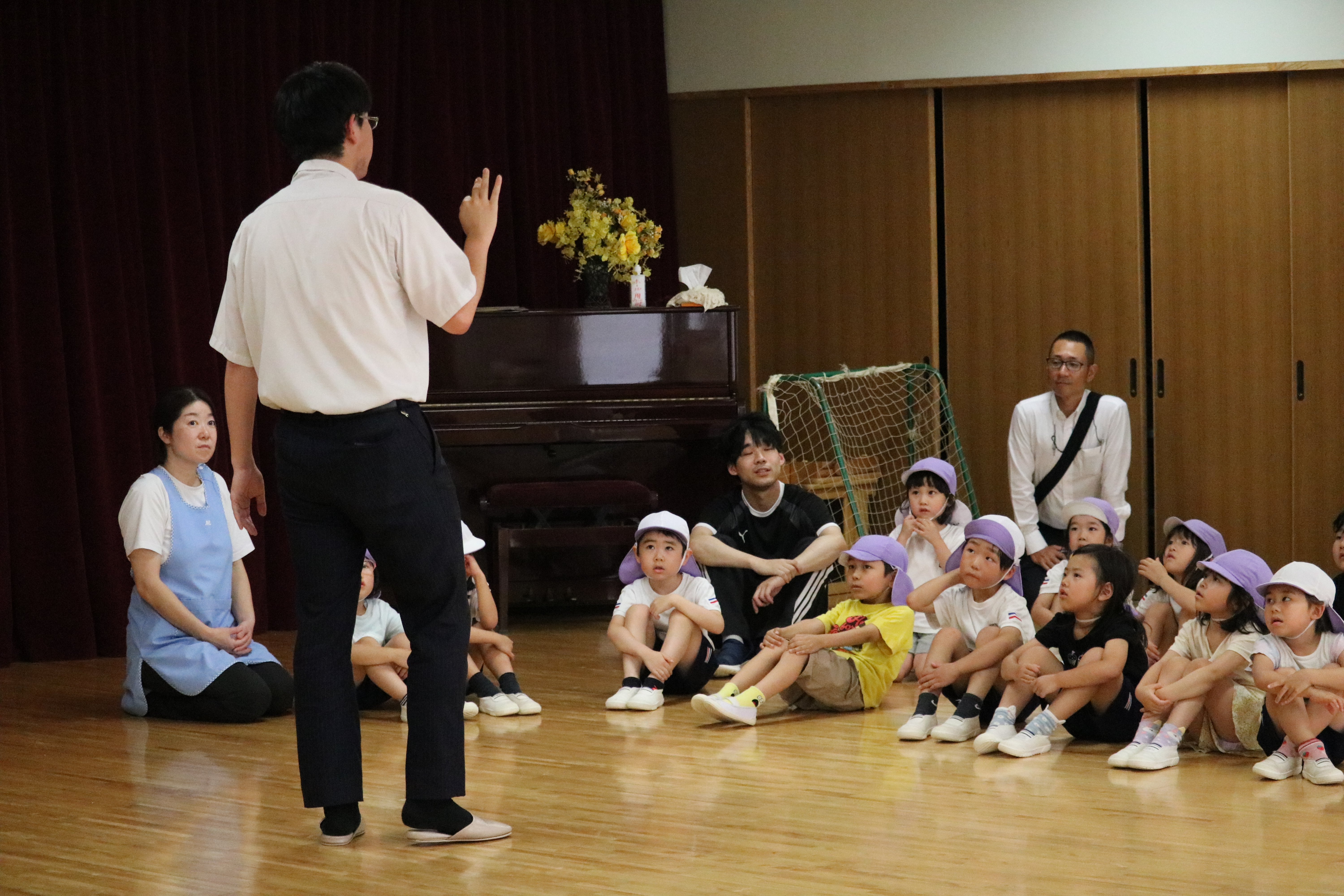 本日、あやめ組保育室にて、不審者対応訓練を行いました。警察官が不審者役となり、窓の鍵やカーテンを閉めて身を守る練習をしました。また、「い・か・の・お・す・し」の約束も教えていただきました。子どもたちは真剣に話を聞き、疑問に思ったことは自分から質問する姿も見られました。
