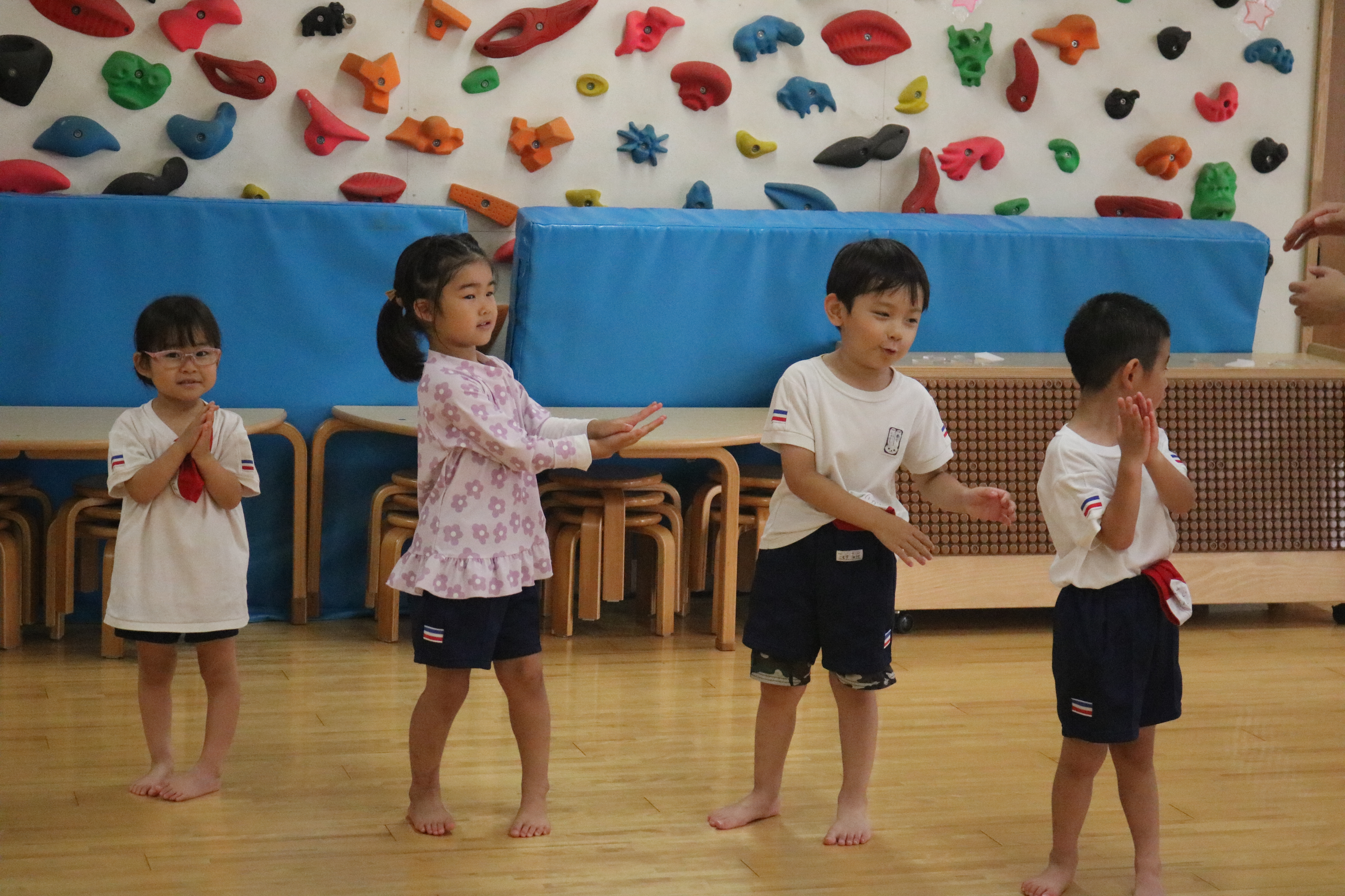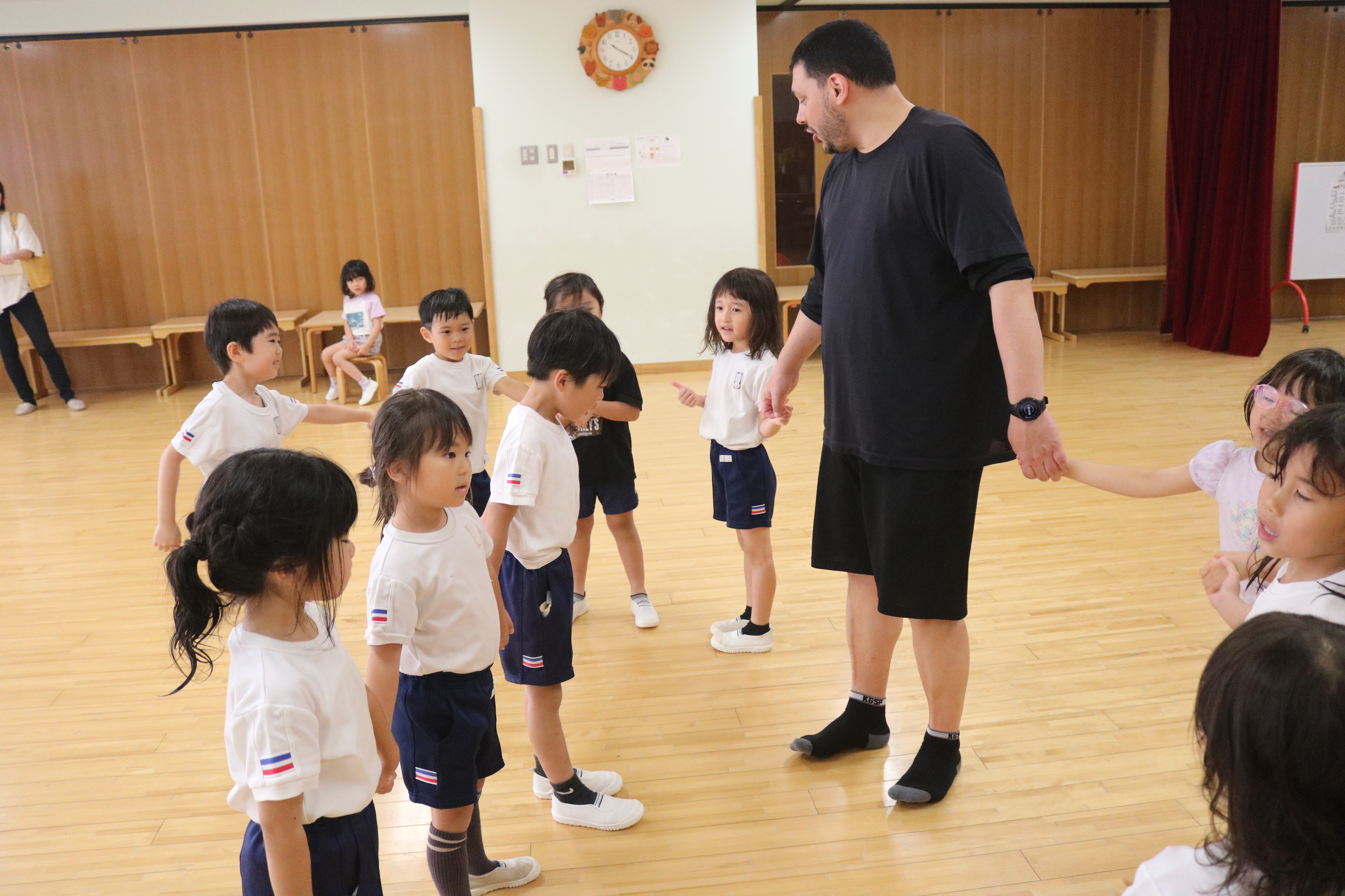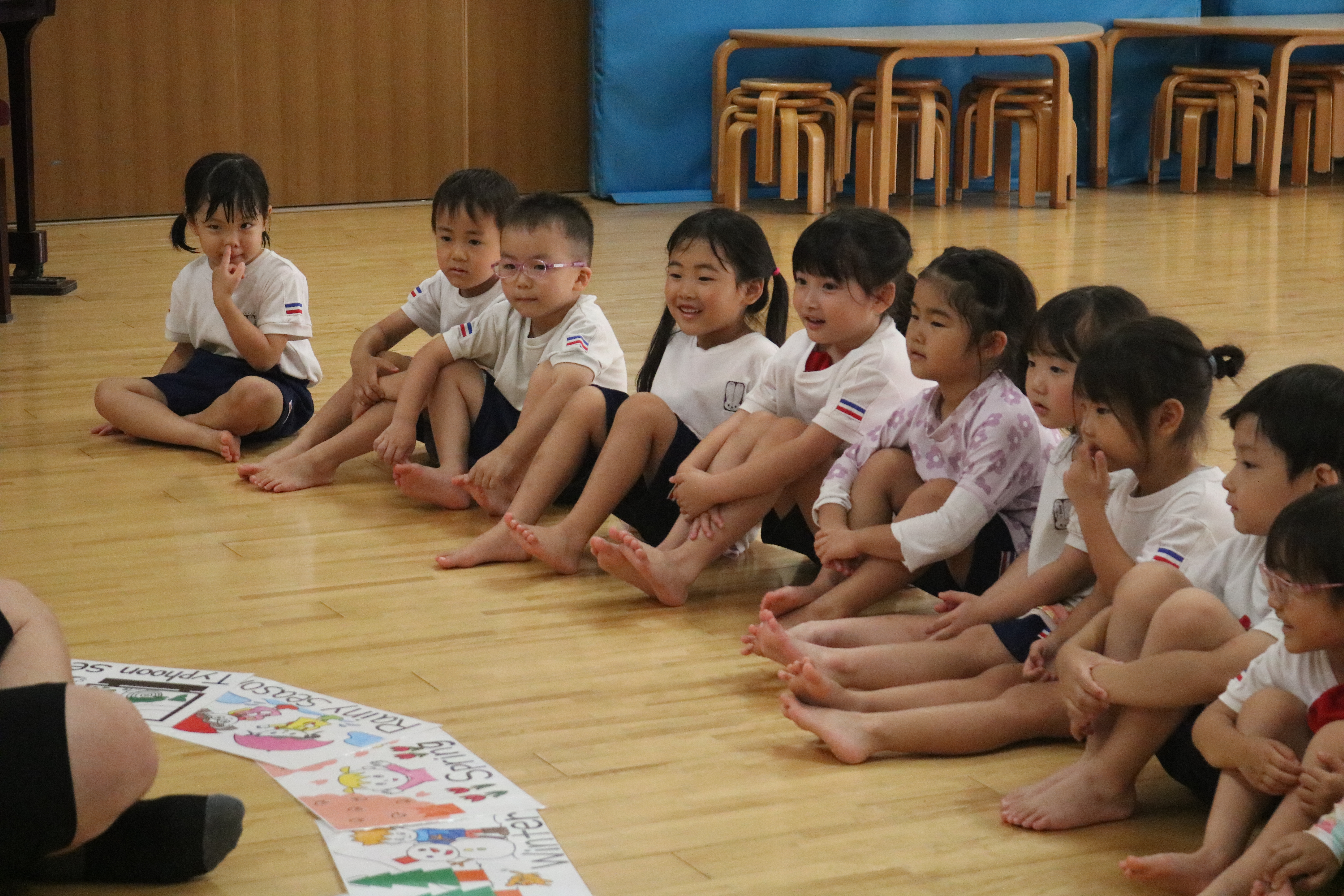 英語であそぼうがありました ゆり組 ゆり組 あやめ組 あやめ組 本日、ゆり組・あやめ組が「英語であそぼう!」に参加しました。イングラム先生と一緒に、英語の歌に合わせて歌ったり踊ったり、海の生き物のカードゲームをしたりして、楽しみながら英語に親しむことができました。みんな興味津々で、元気いっぱいに参加していましたよ!