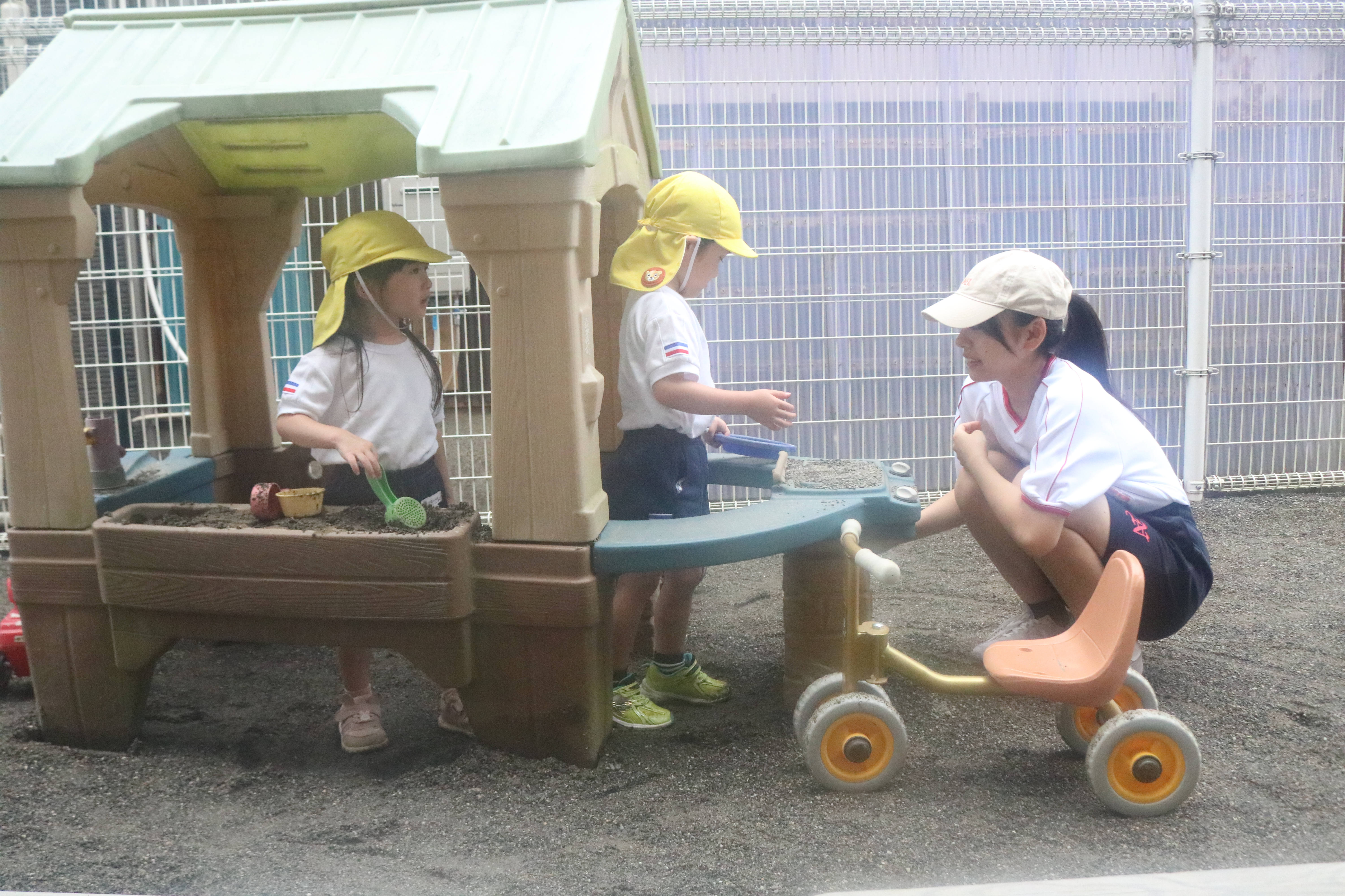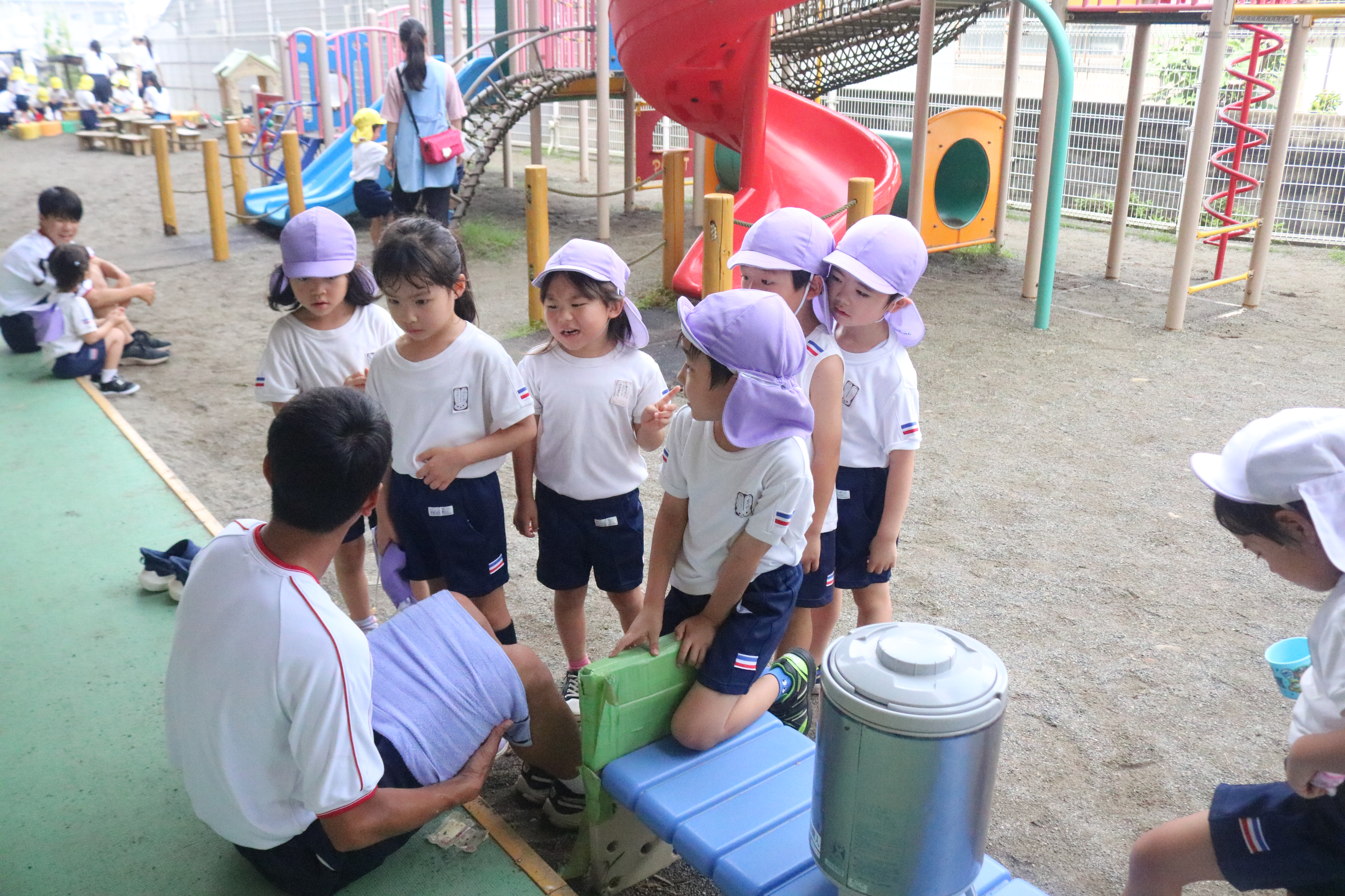 昨日に続いて磐田西高校の生徒さんが来てくれました。今日もすみれ組以上のクラスにお兄さん・お姉さんが入り、一緒に遊んでくれました。子どもたちの目線になり、遊んでくれている姿が印象的でした。子どもたちも昨日で少し慣れたのか、今日は別れ際に涙したり、名残惜しそうに手を振ったりする姿が見られ、貴重な体験になりました!