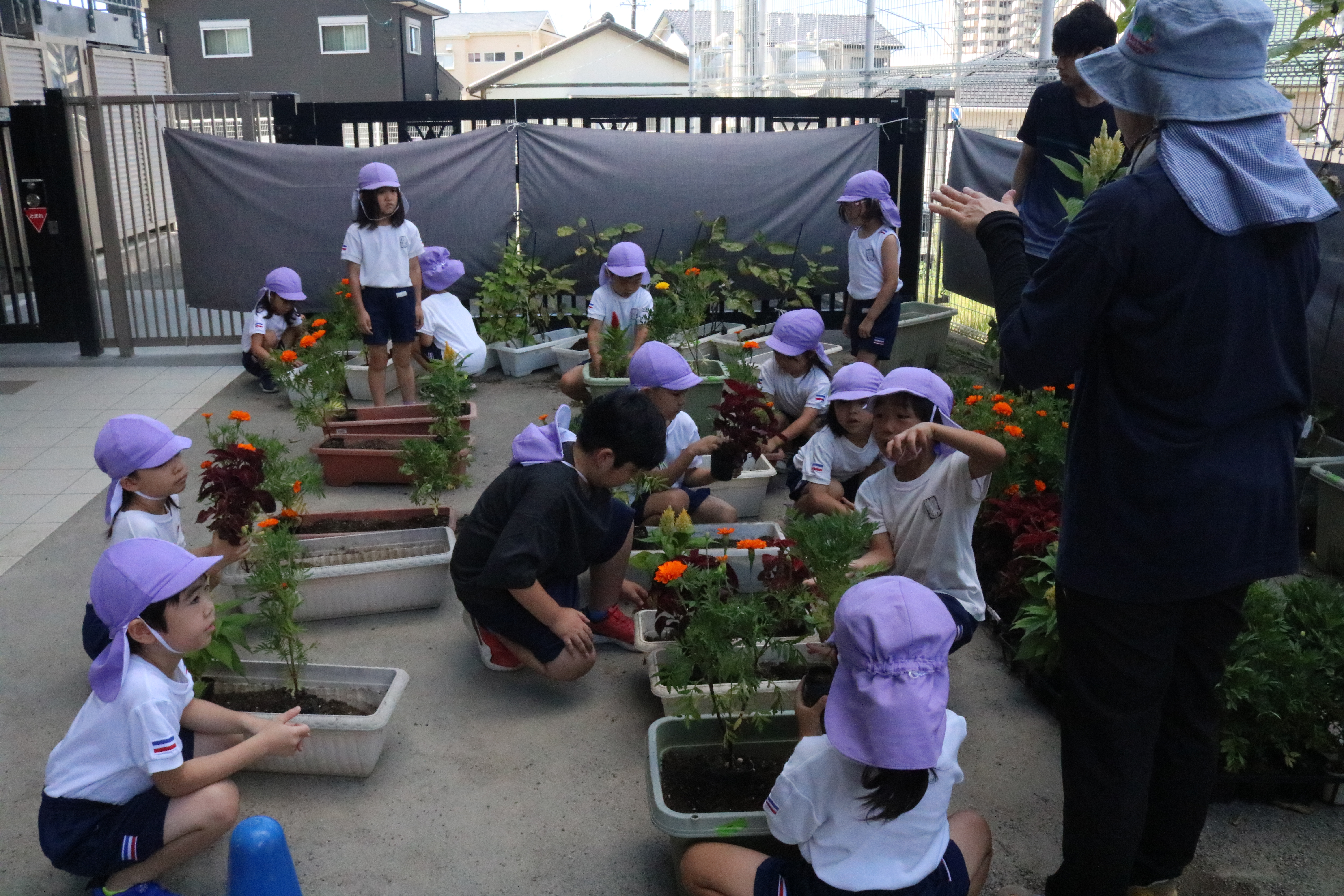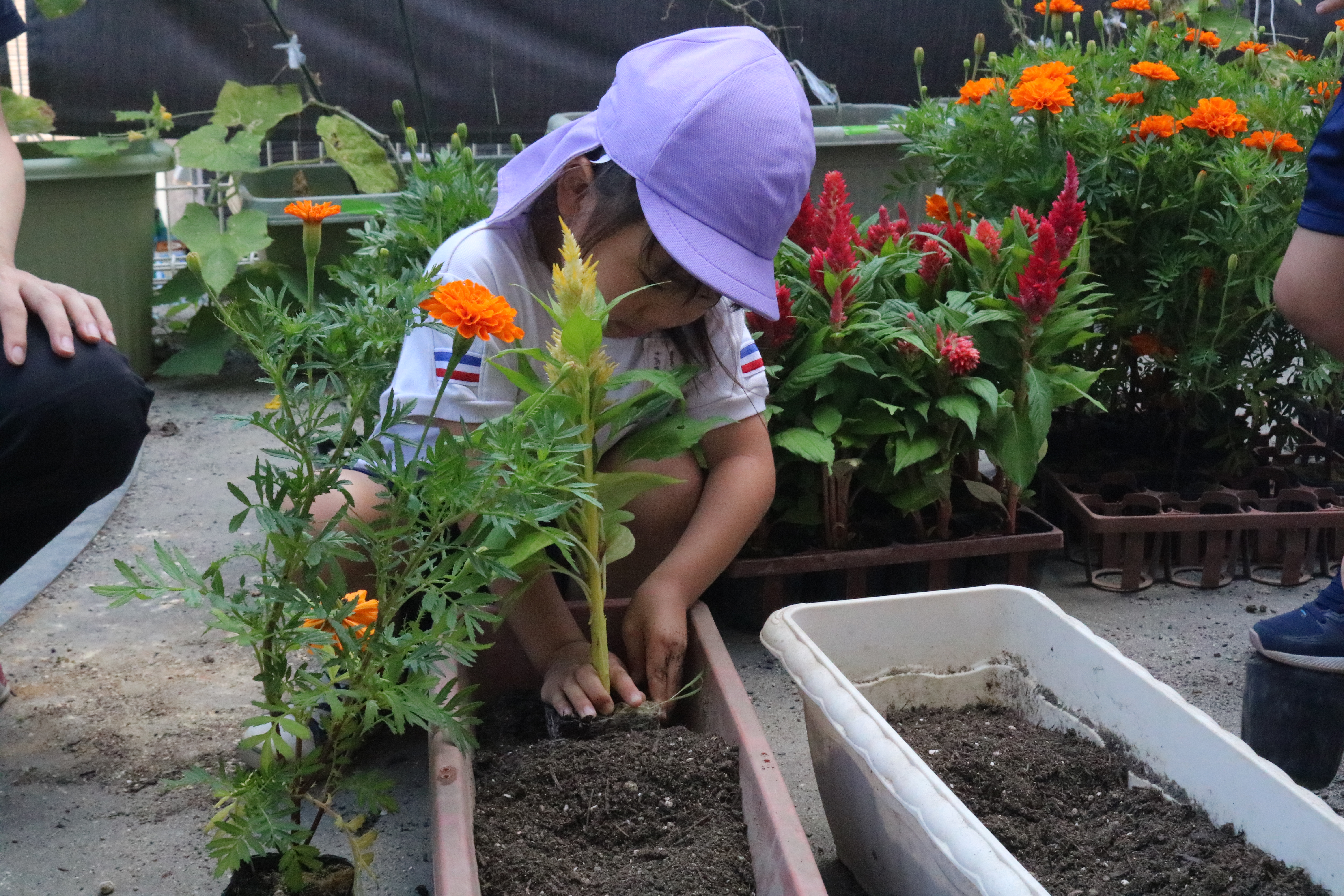 プランターにお花を植えました 本日、あやめ組の子どもたちが、お花をプランターに植えてくれました。 一人ひとりが好きな花を選び、バランスを考えながら丁寧に植えてくれたおかげで、正面玄関の外が一気に華やかになりました。 登園・降園の際に、ぜひご覧くださいね!