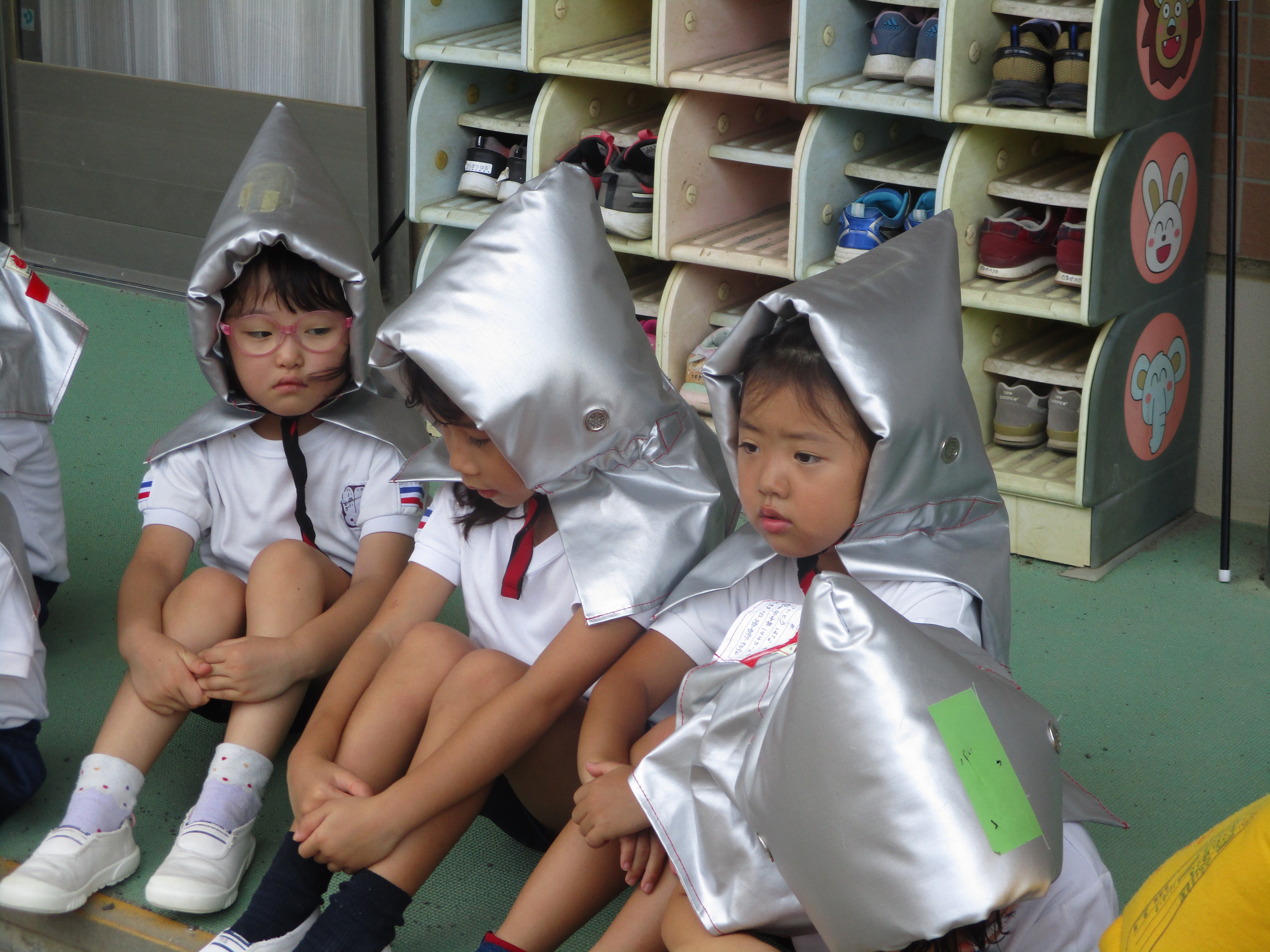 避難訓練(火災想定)がありました。放送をよく聞いて、みんな落ち着いて窓から避難し、避難経路の確認もできました。小さいクラスの子も安心して避難できていましたよ。