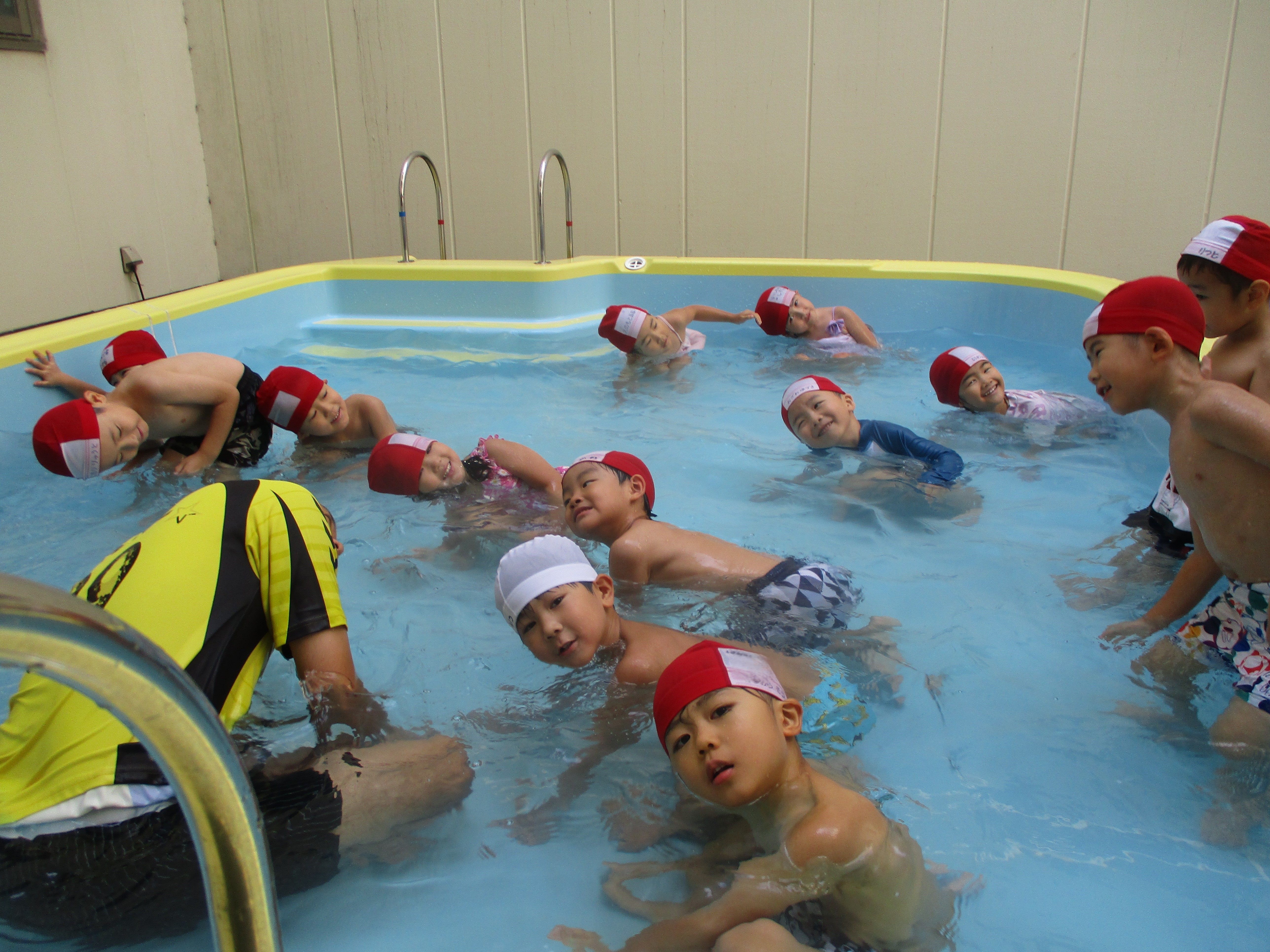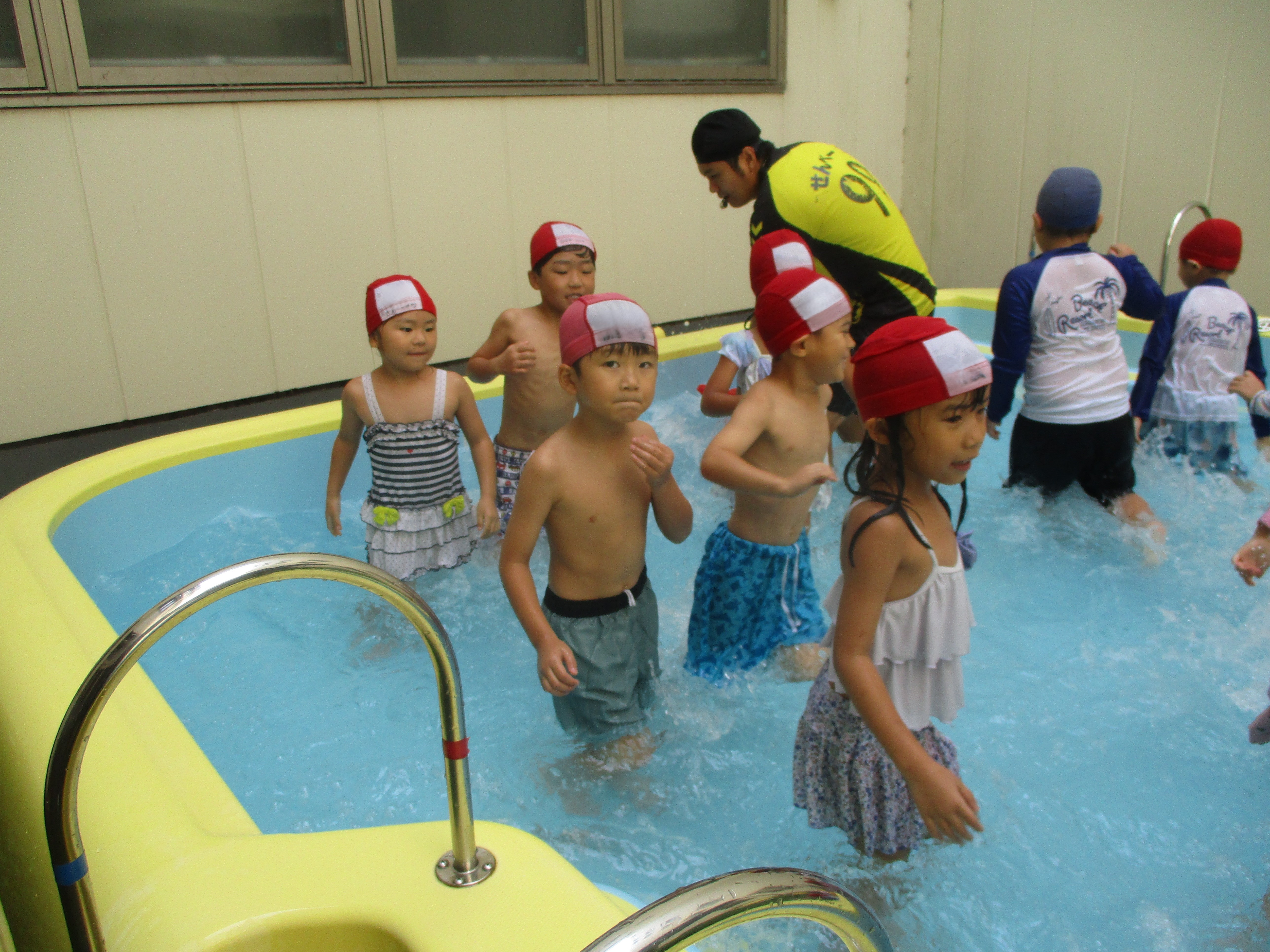 「きのいい羊達」では、きく組~あやめ組の子どもたちが、せんべー先生と一緒に水に触れて楽しく遊びました。