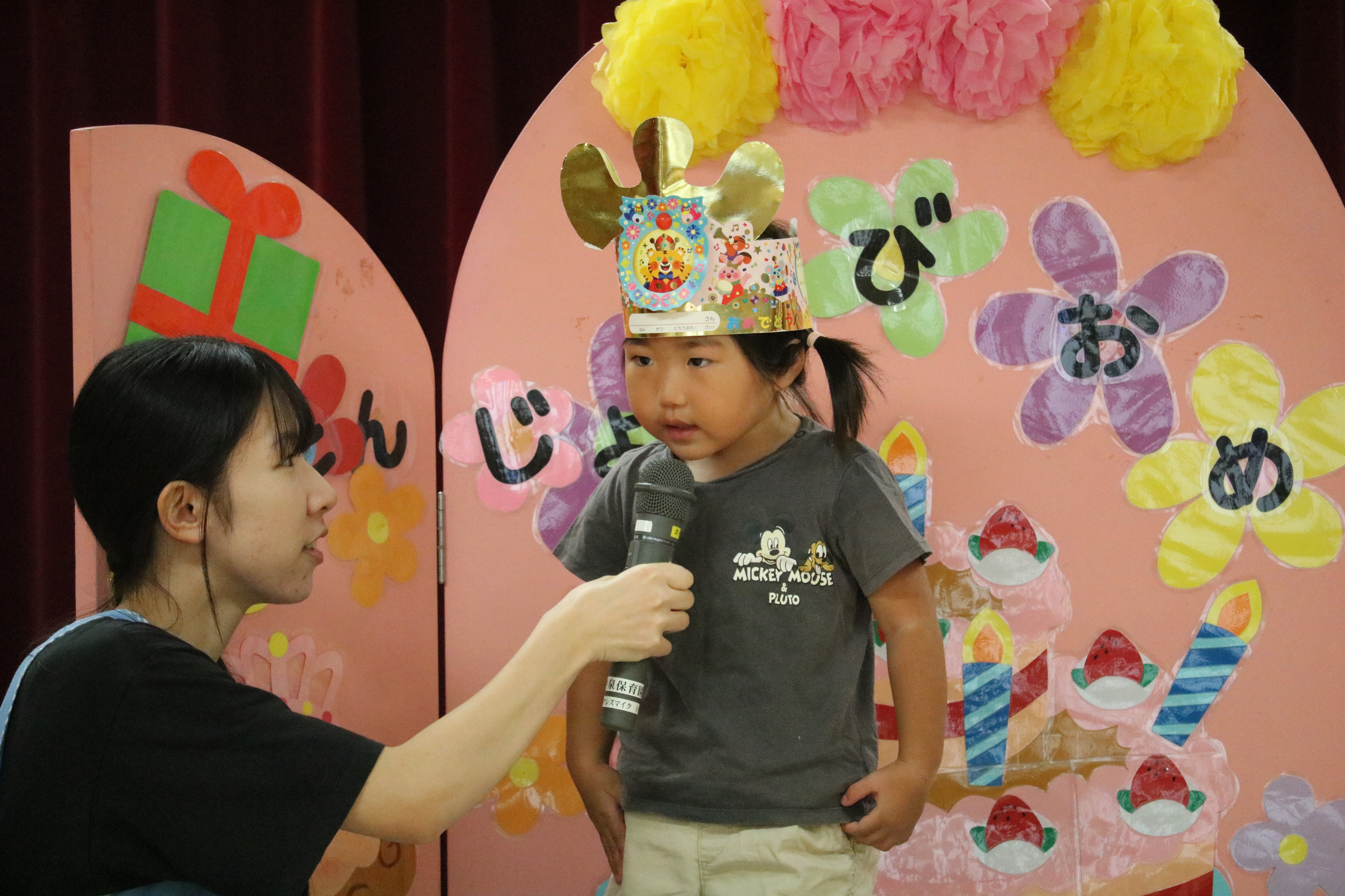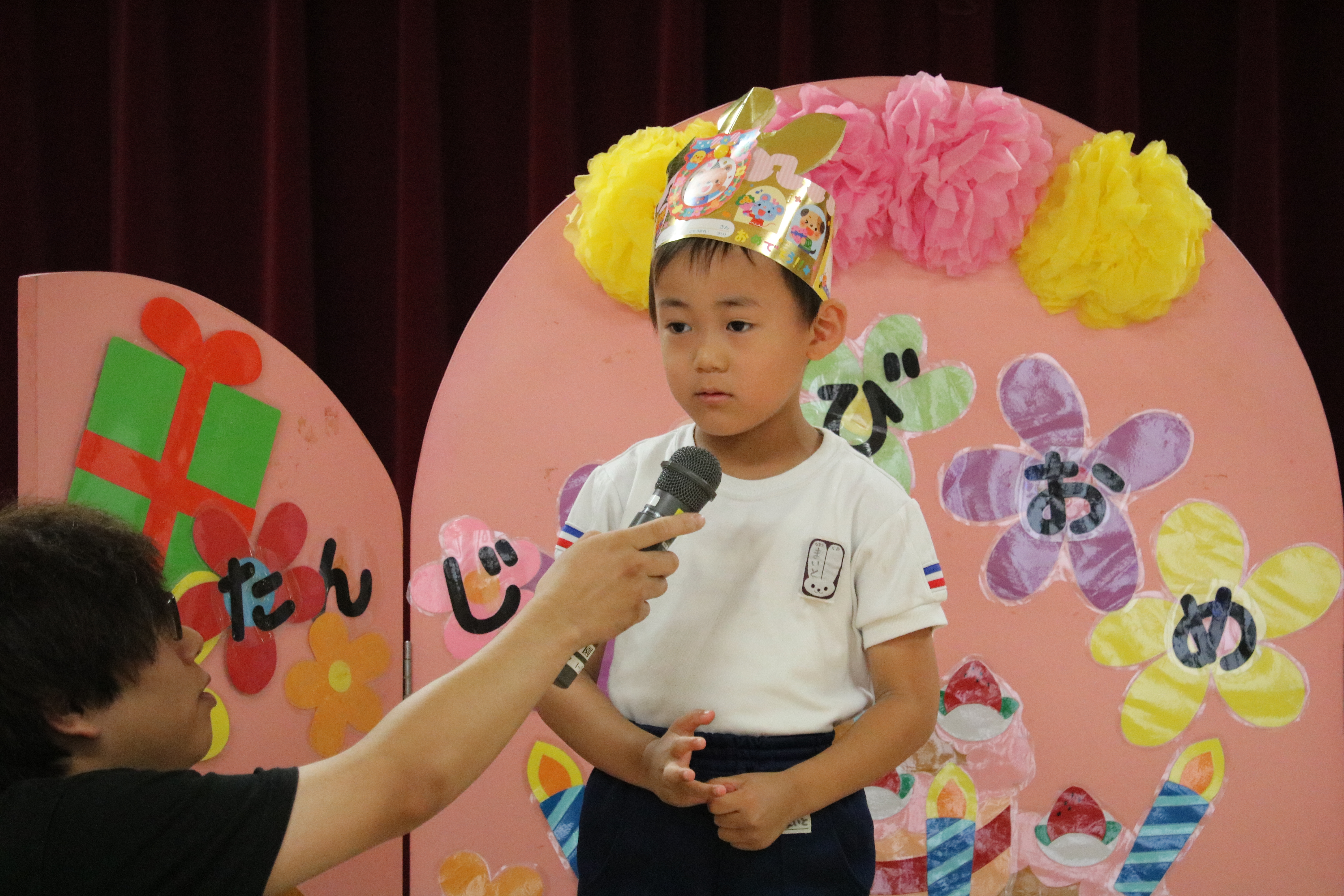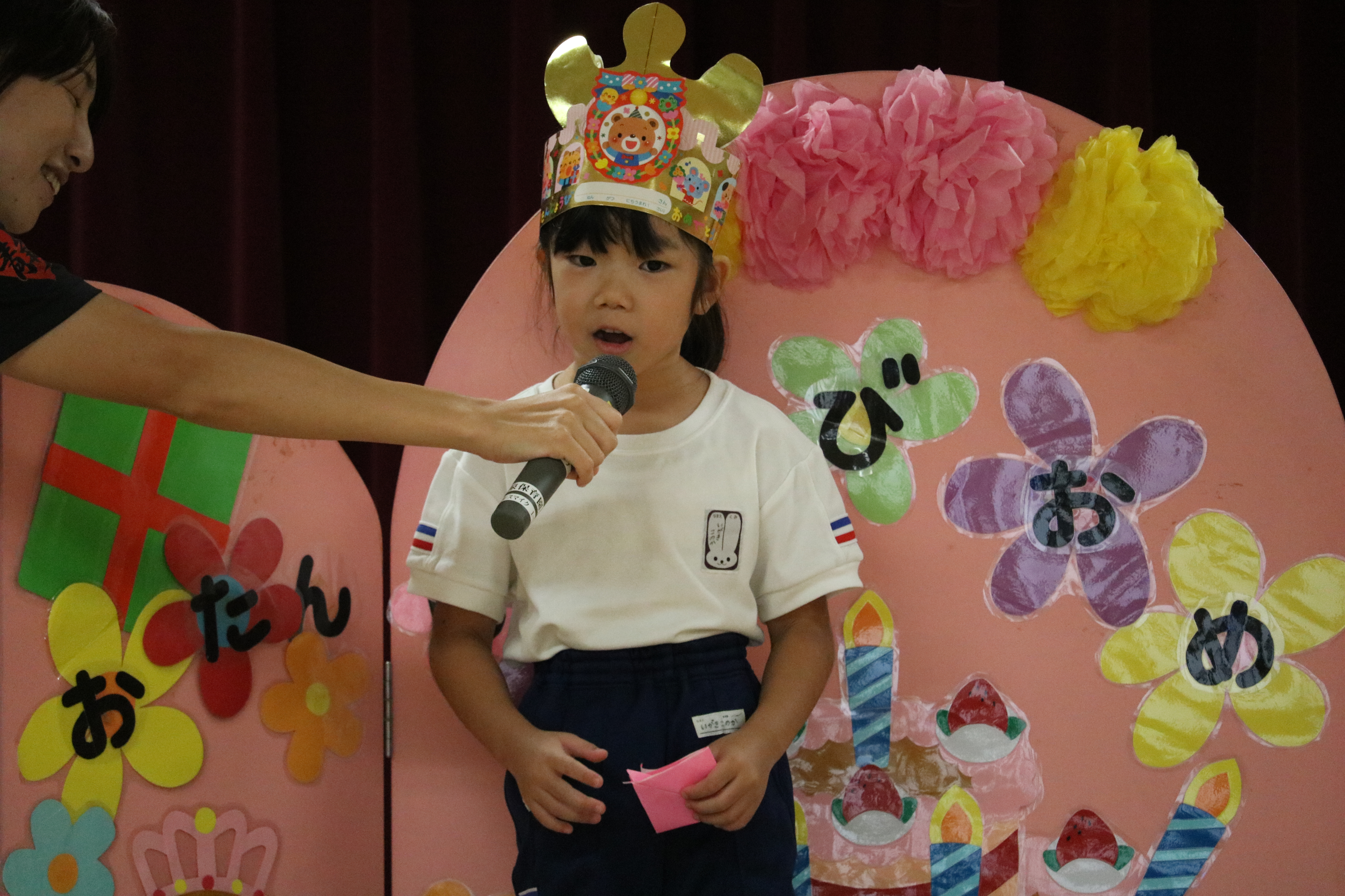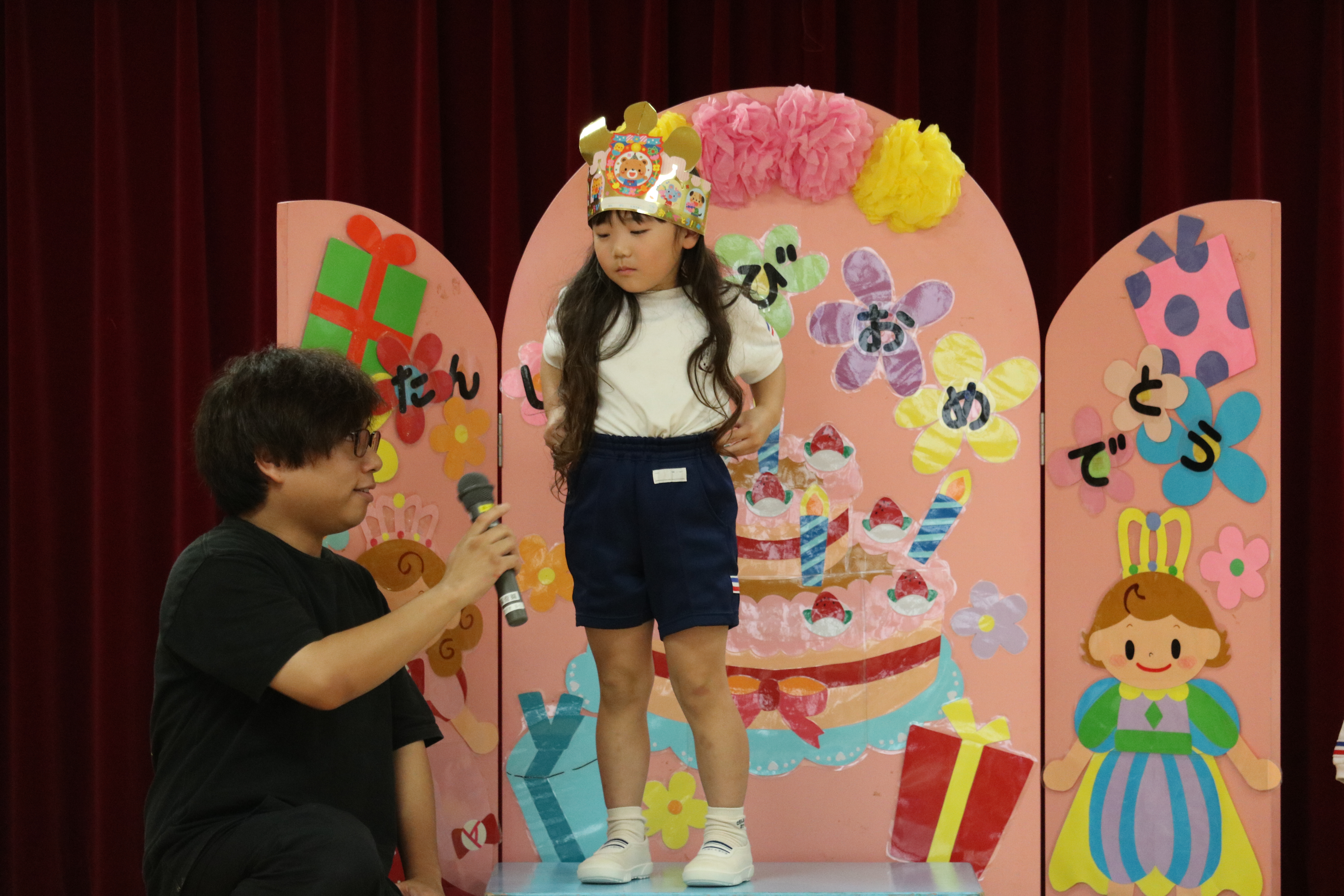 あやめ組児にとっては最後の誕生会となりますので、9月生まれのお友達も一緒にお祝いしました。なお、あやめ組では誕生会をお休みされた場合、次回のお誕生会の際に一緒にお祝いさせていただきますね。