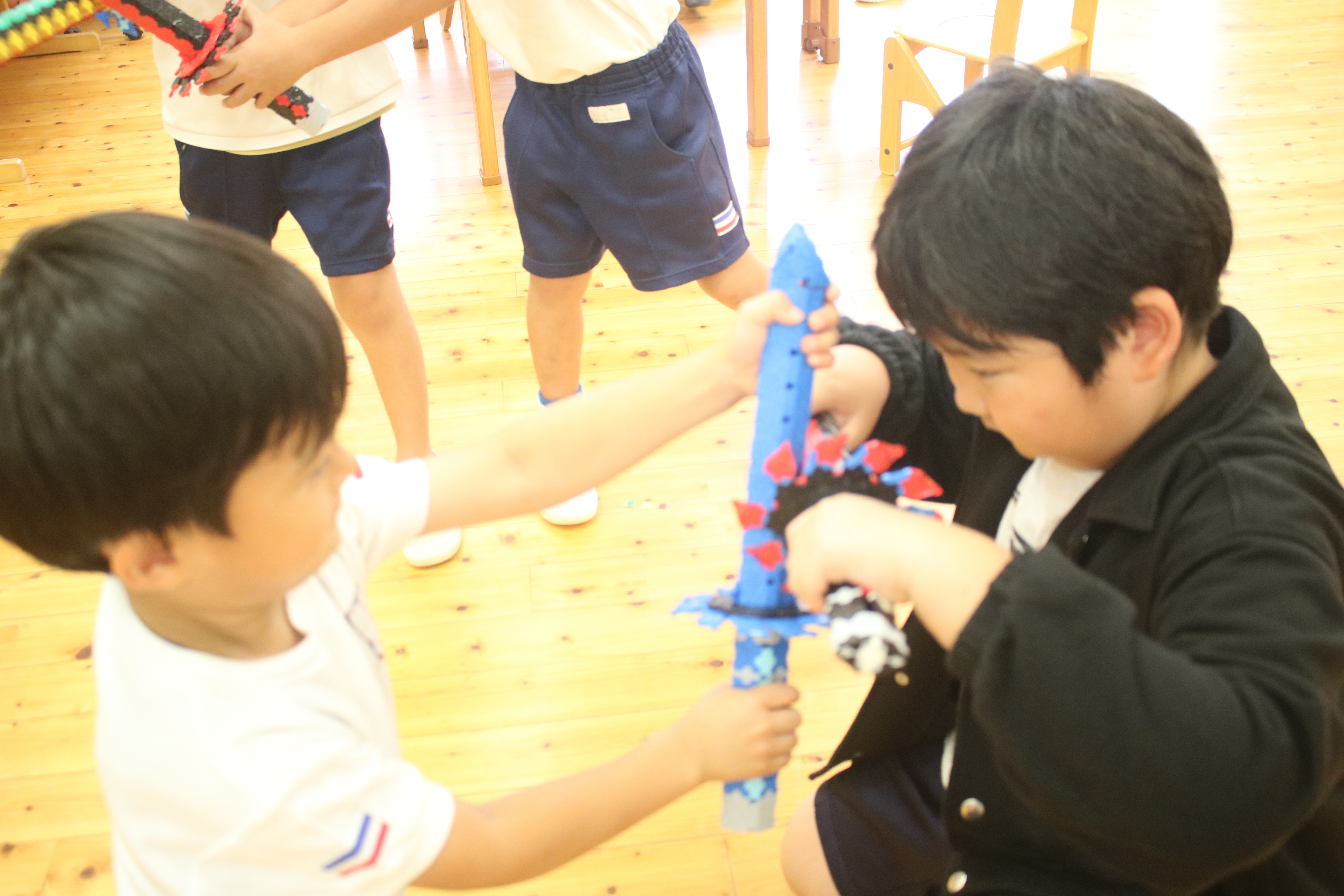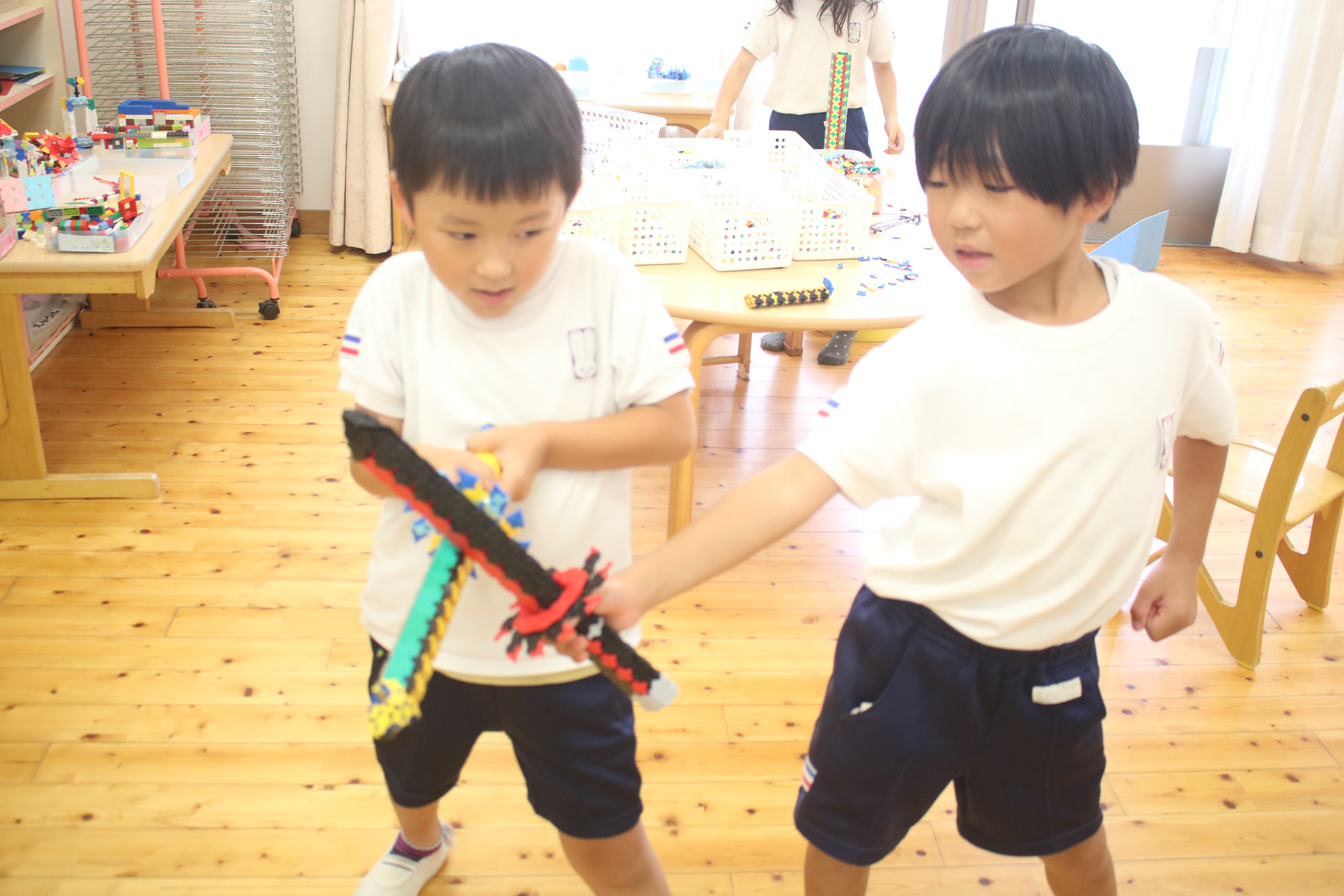 雨が降ったりやんだりの天気でしたので、お部屋で過ごしました。ゆり組は体を大きく使って粗大運動を楽しみ、あやめ組は大好きなLaQで「剣」や「コマ」「メリーゴーランド」と難しそうなものに挑戦!できたときには「先生見て~!!」と嬉しそうに見せてくれました。次の作品も楽しみですね!