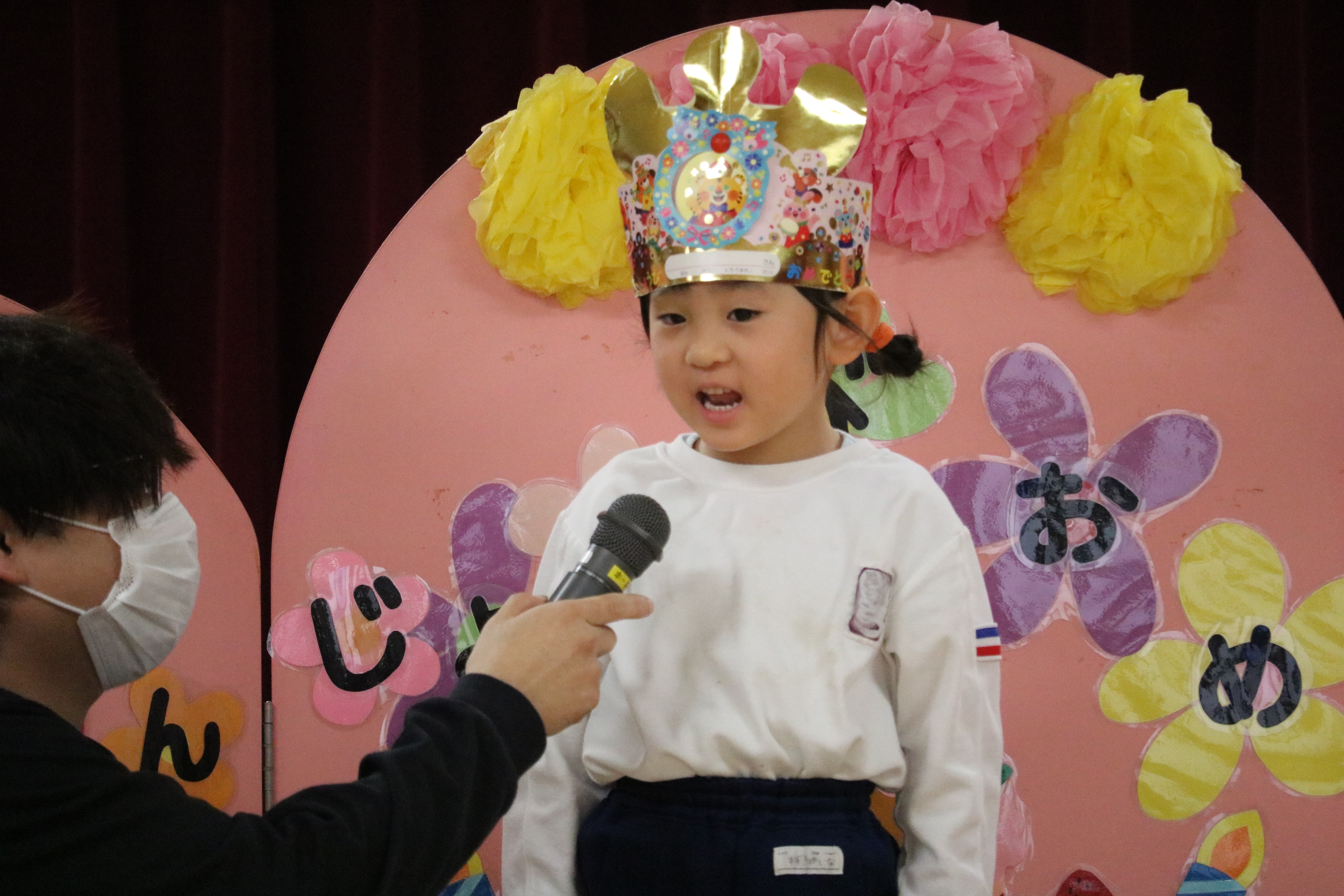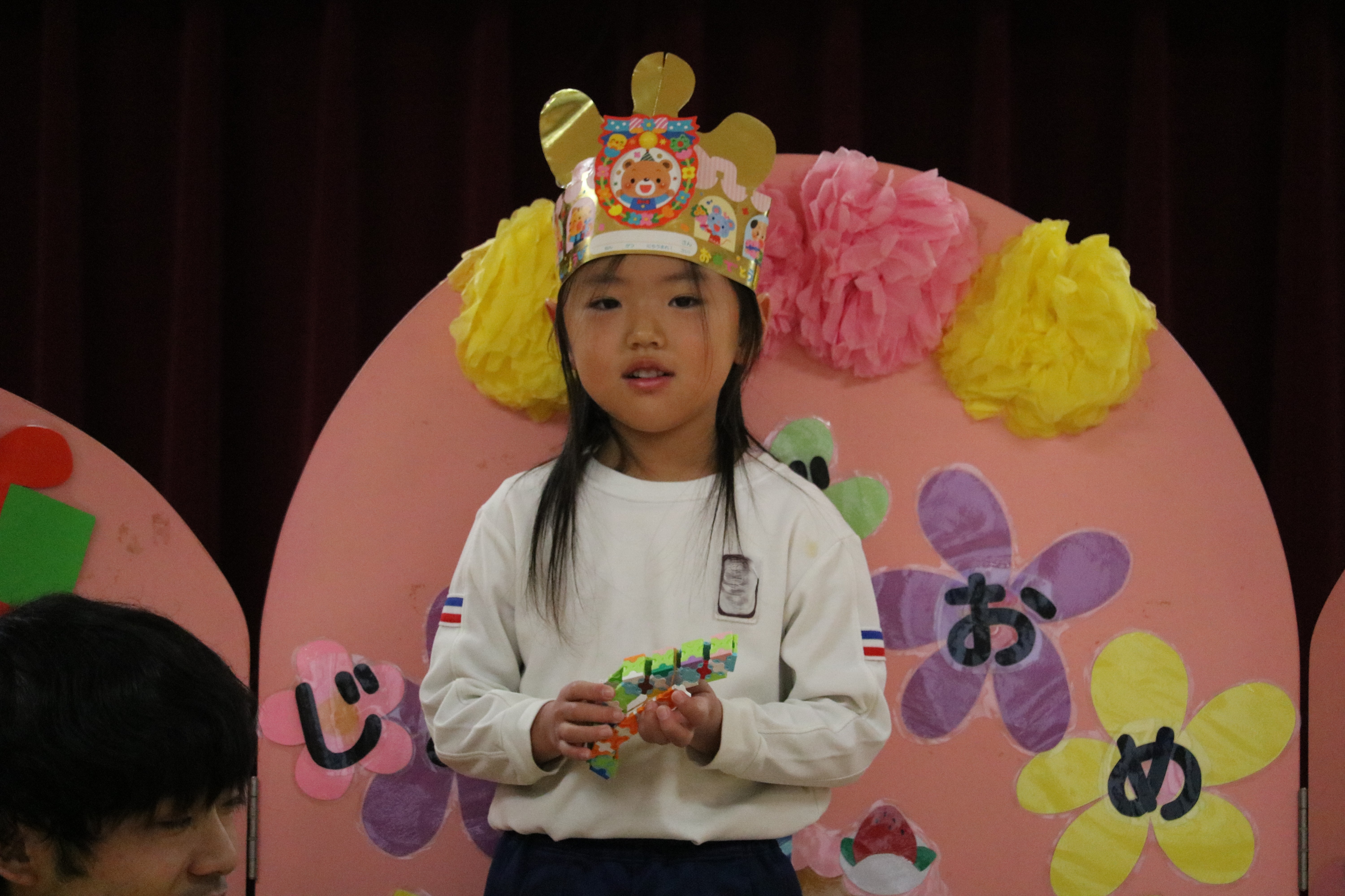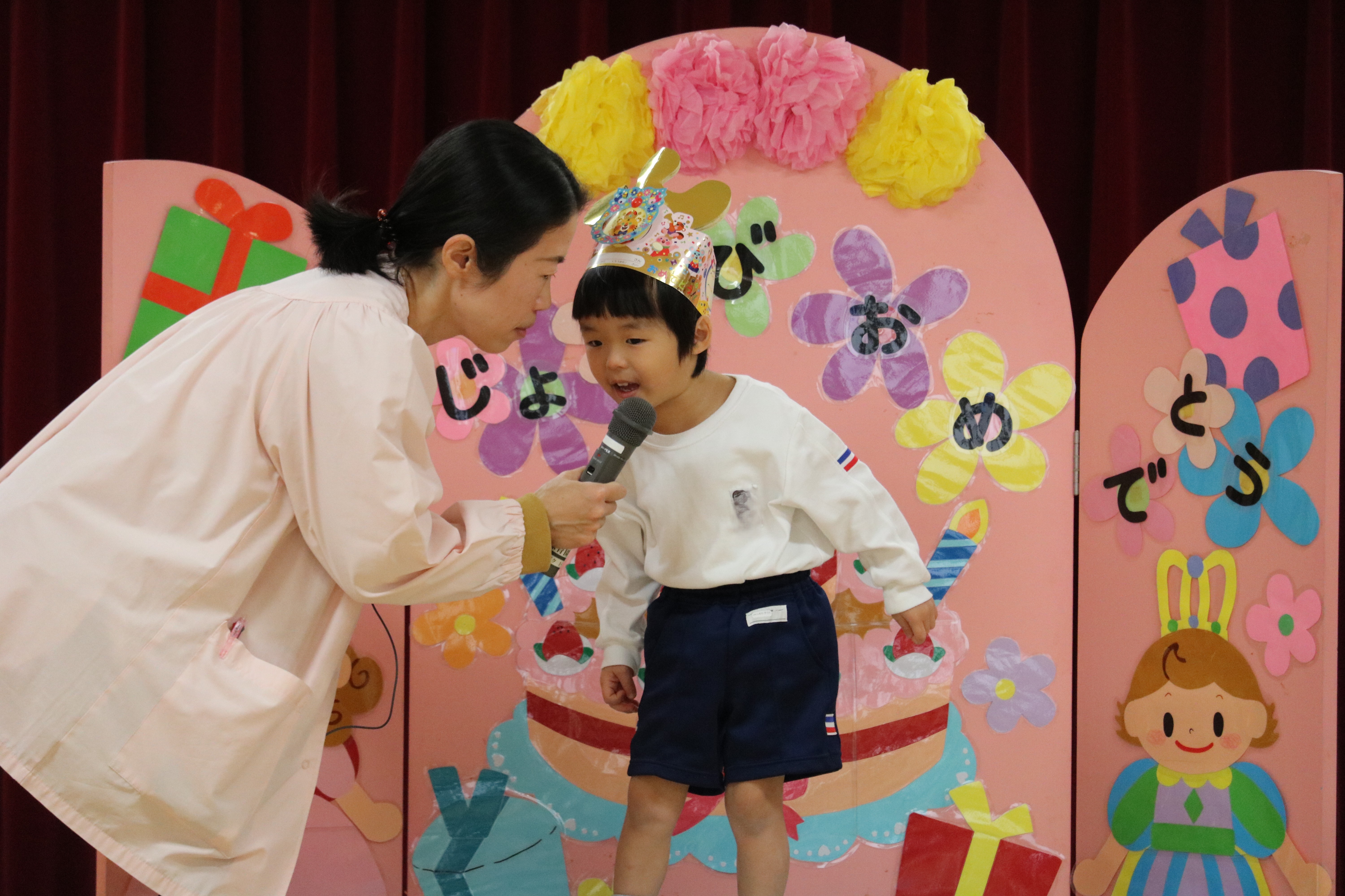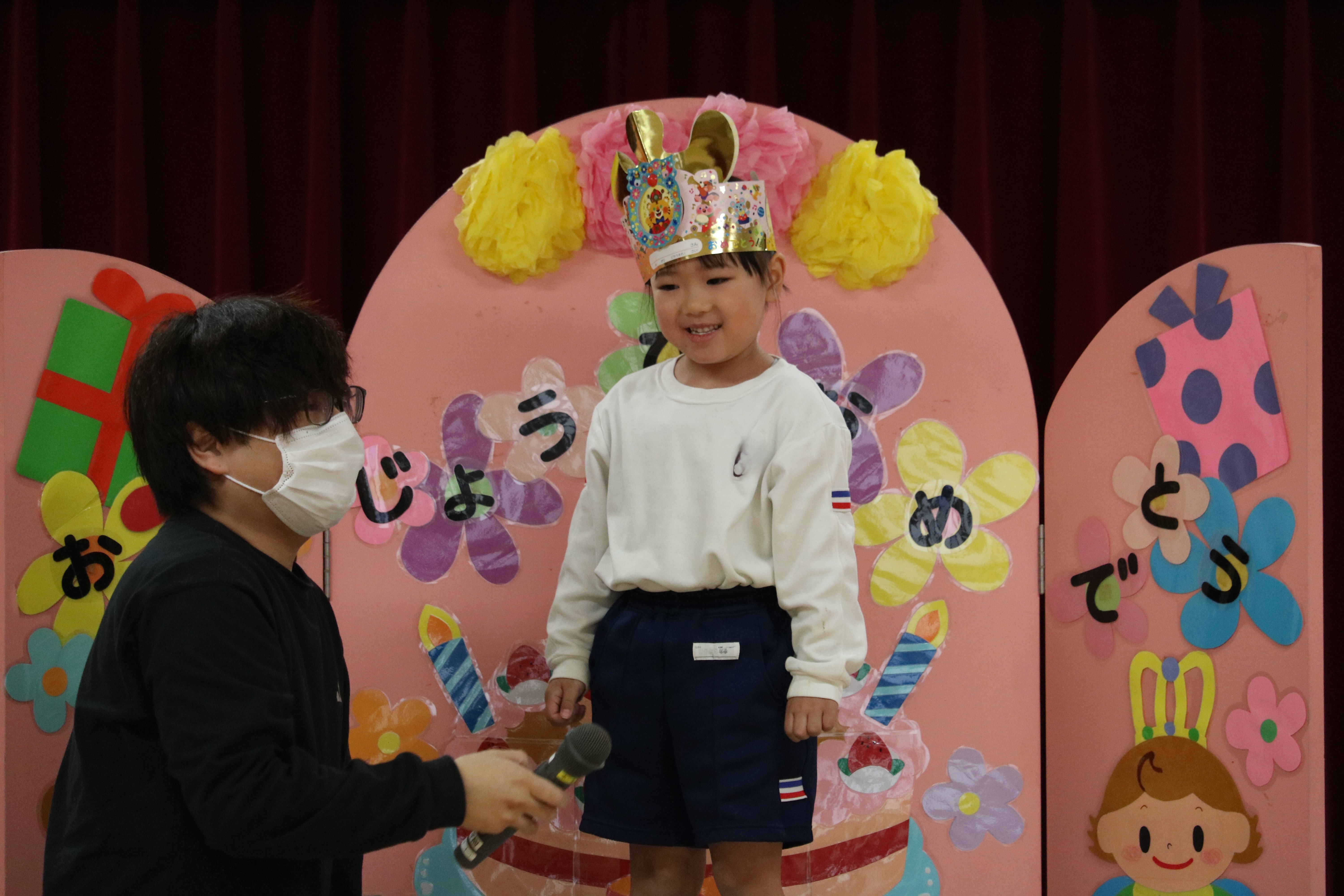ステージに上がると、緊張している子や嬉しそうな子など、子どもたちそれぞれの表情が見られ、みんなにお祝いされてとても嬉しそうでした。