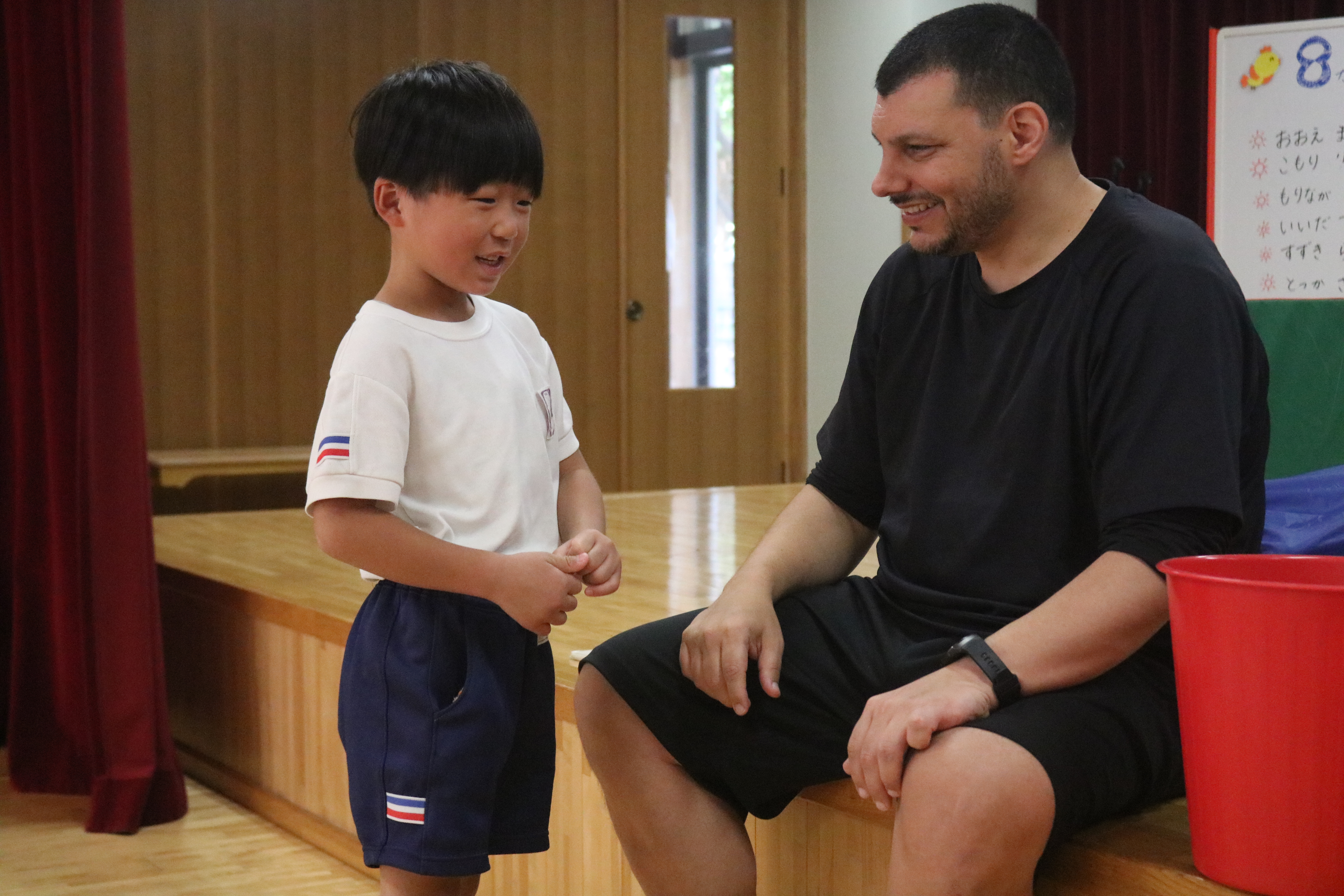 英語で遊ぼう!がありました ゆり組 ゆり組 ゆり組 画像説明文 あやめ組 あやめ組 「英語で遊ぼう」がありました。「夏祭り」がテーマでイグラム先生が屋台を開き、好きな物を買いに行き、英語でやり取りをしましたよ。 みんな好きなものが買えたかな?