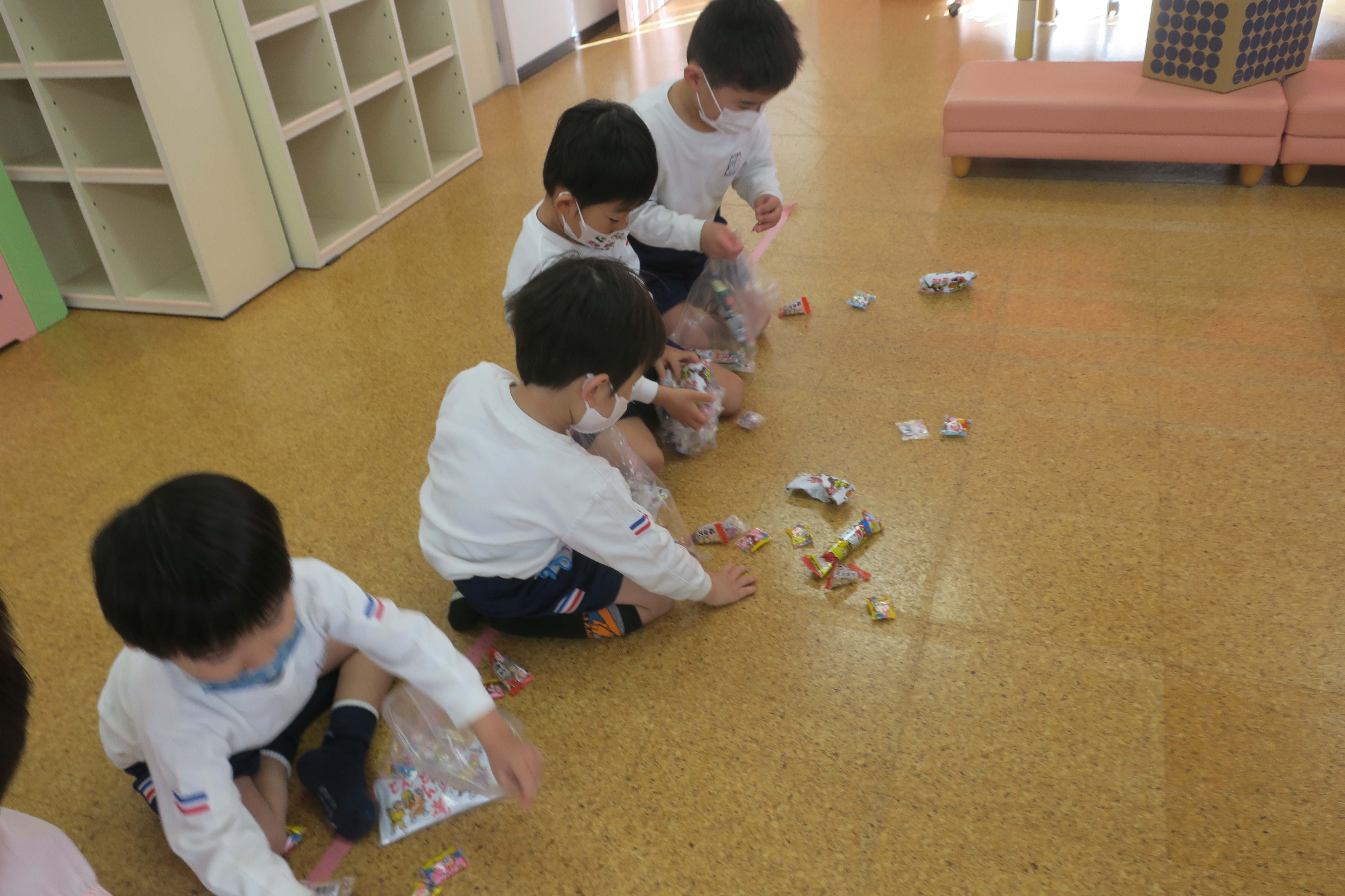 きく組さんがお菓子を拾っています