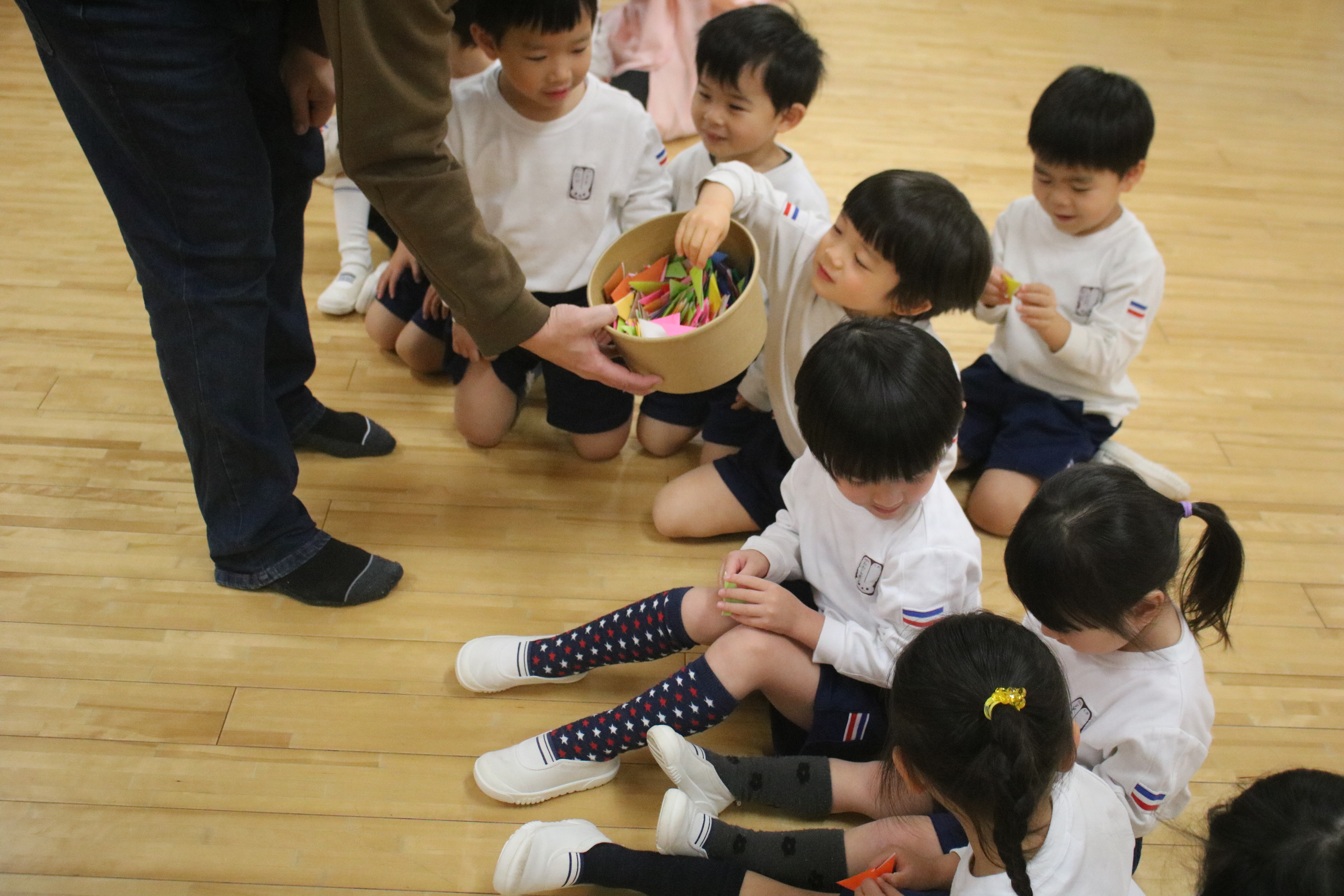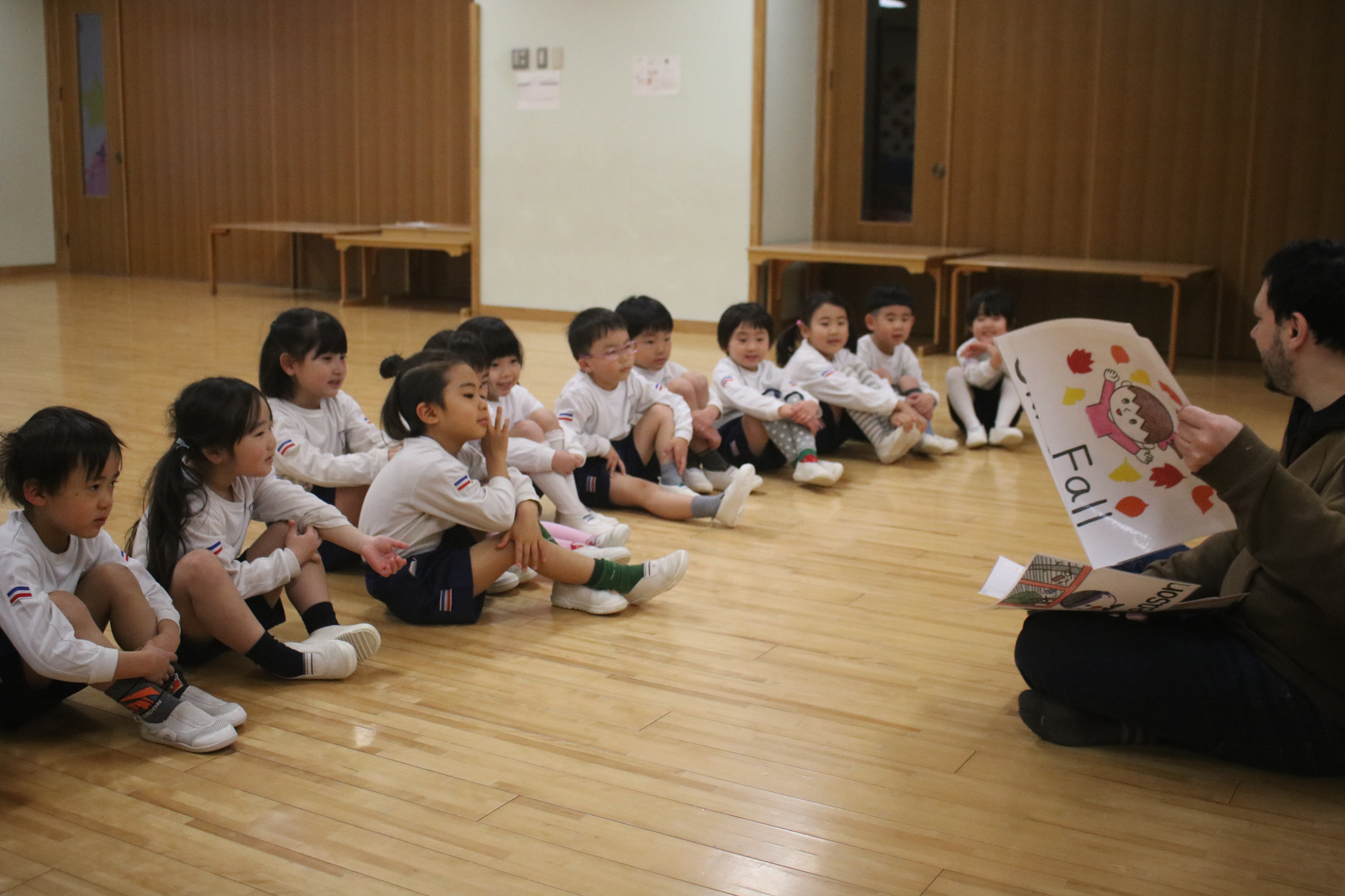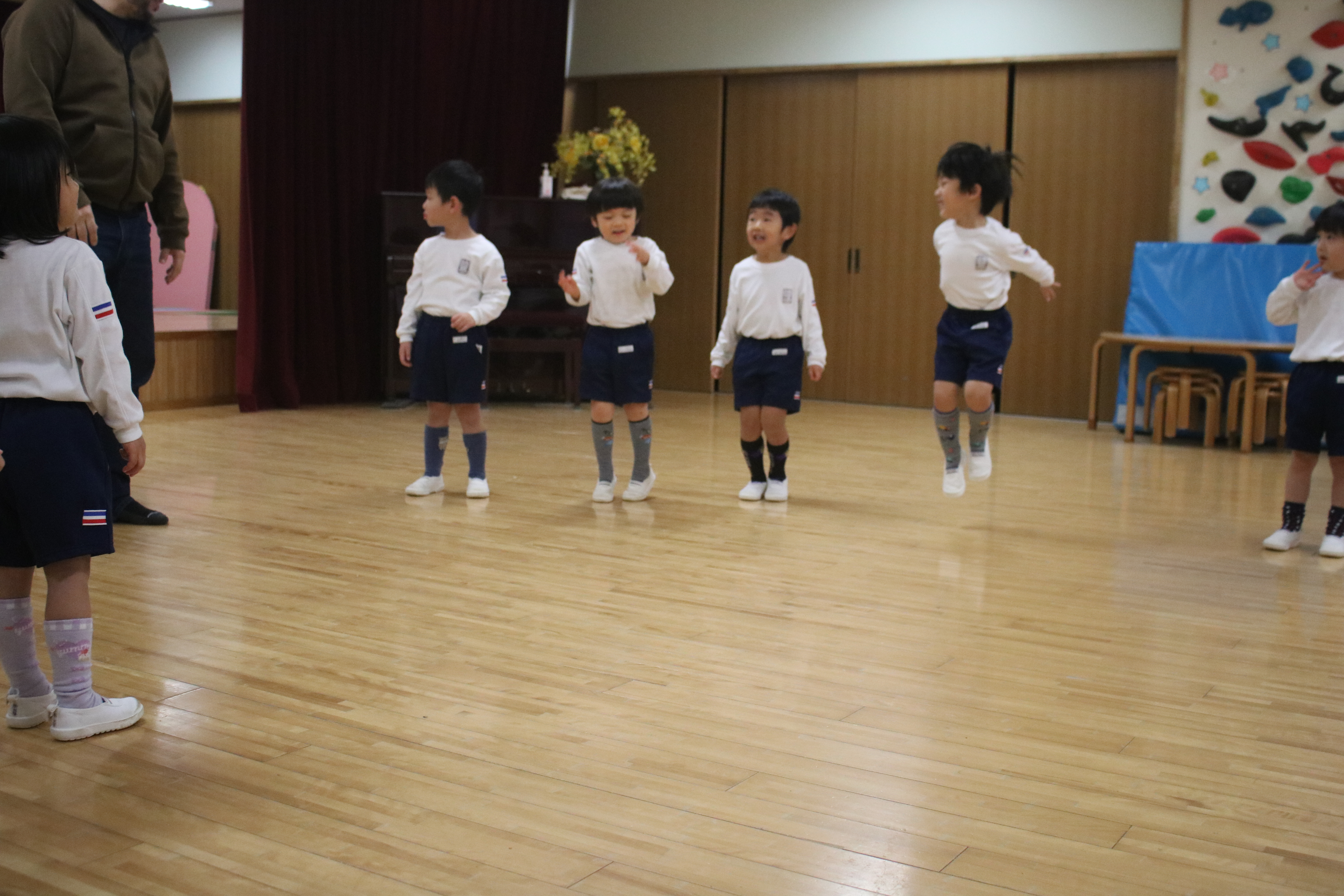 本日より、あやめ組に代わってきく組が「英語であそぼう!」に参加しました。初めての英語で遊ぼう!でしたが、子どもたちは興味津々で、楽しみながら参加していました。