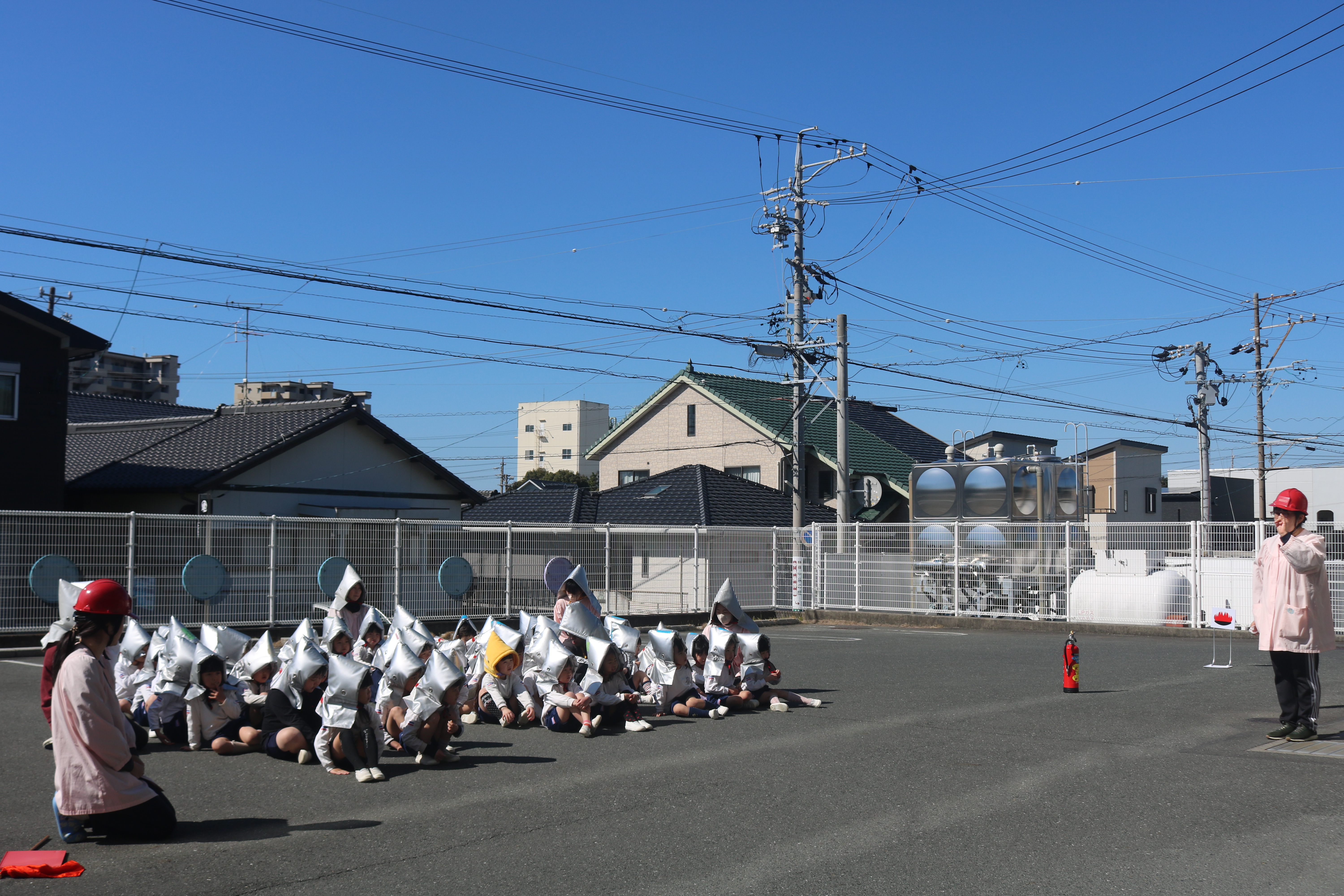火災発生の放送が流れると、子どもたちは先生の話をよく聞きながら、落ち着いて避難することができました。