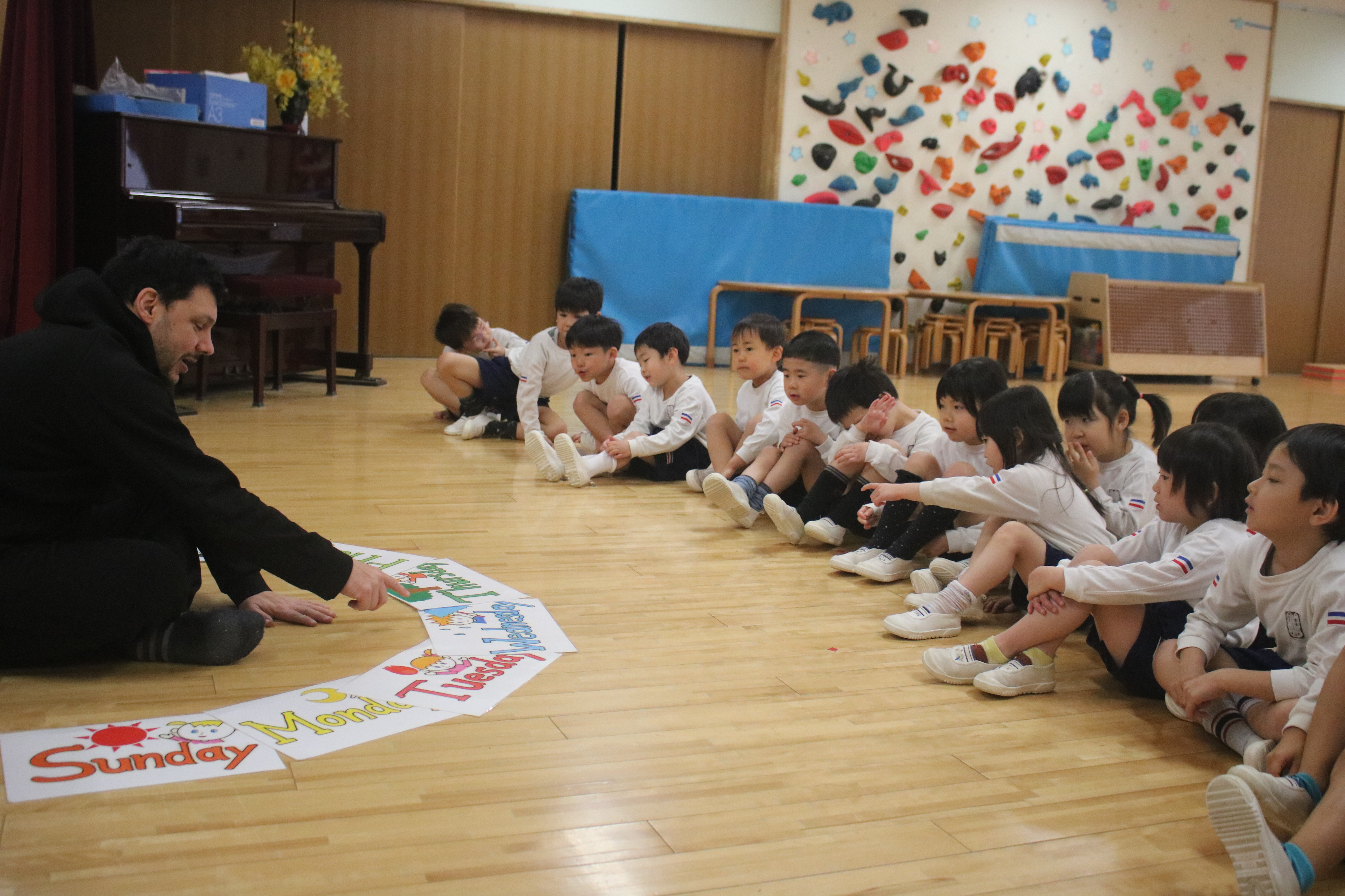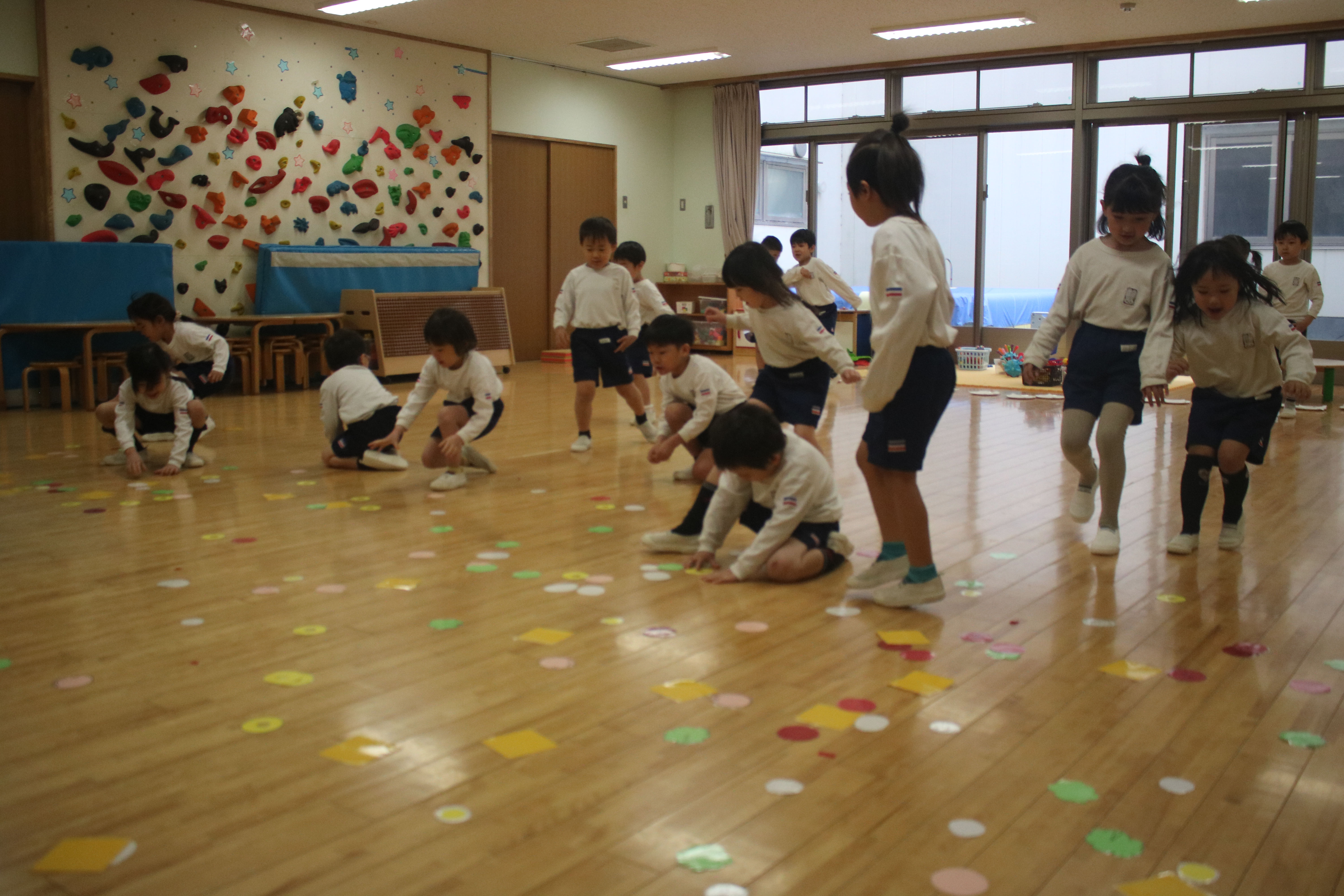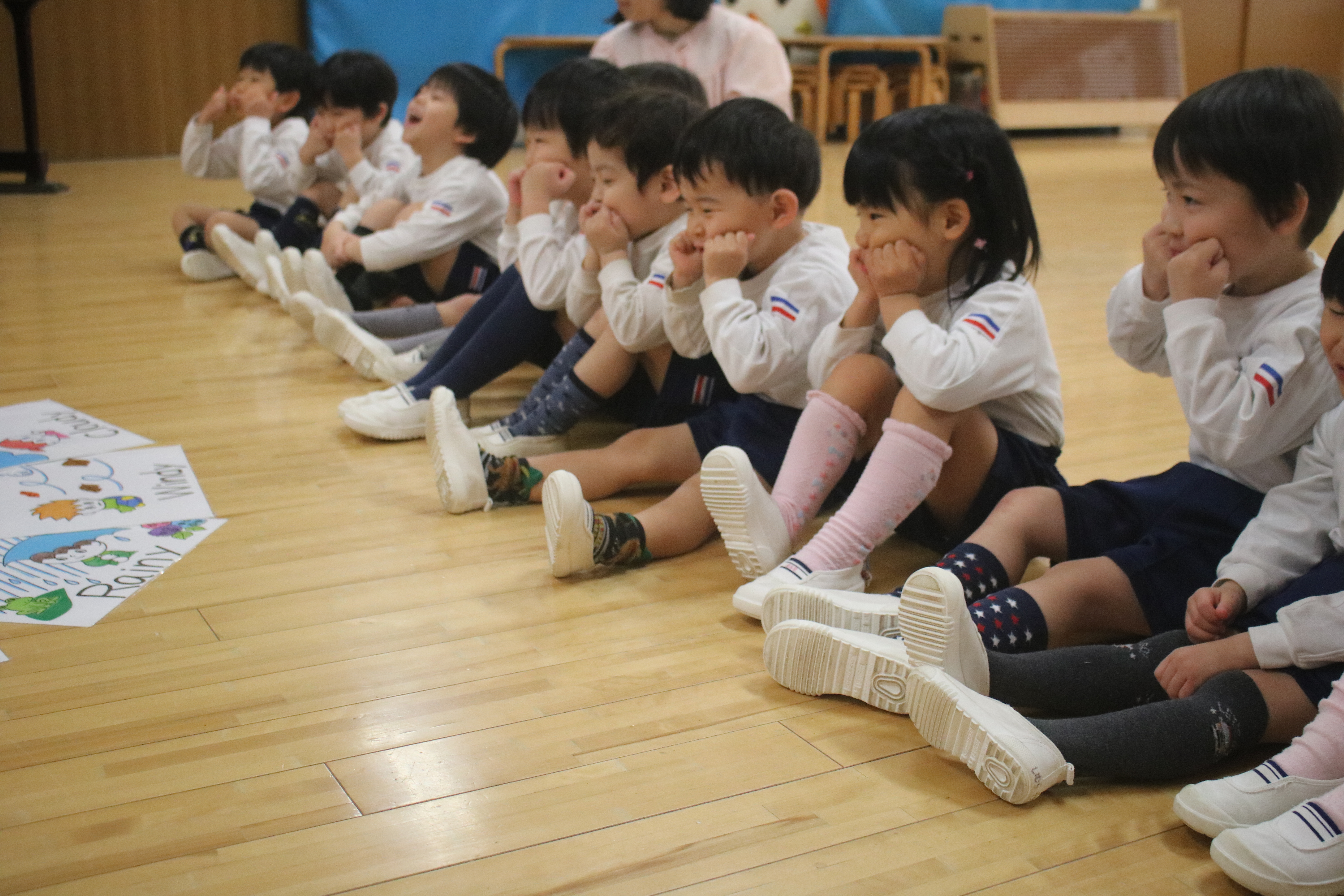 英語であそぼう!を行いました~きく組・ゆり組~ 遊戯室でピクニックごっこをしました~あやめ組~