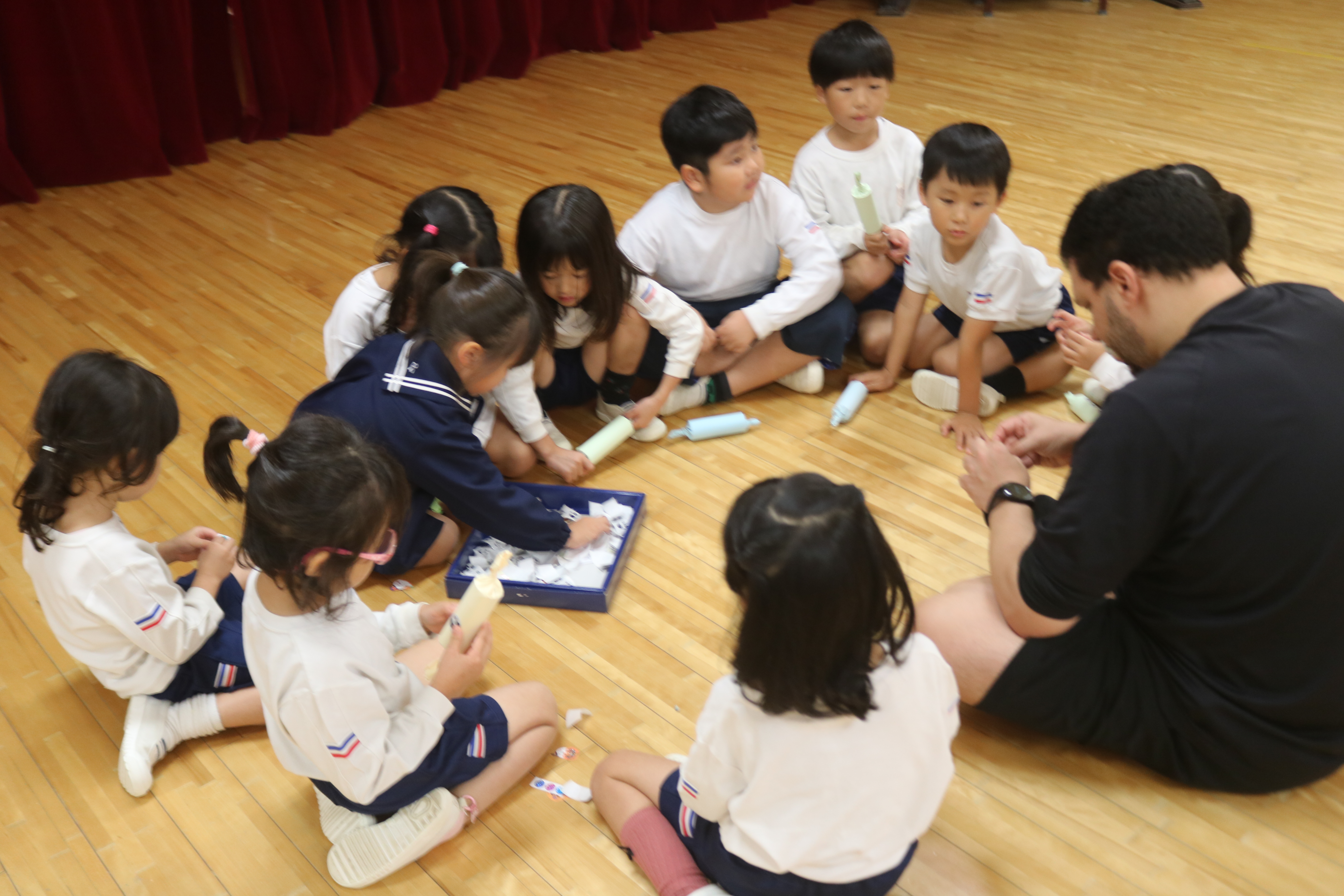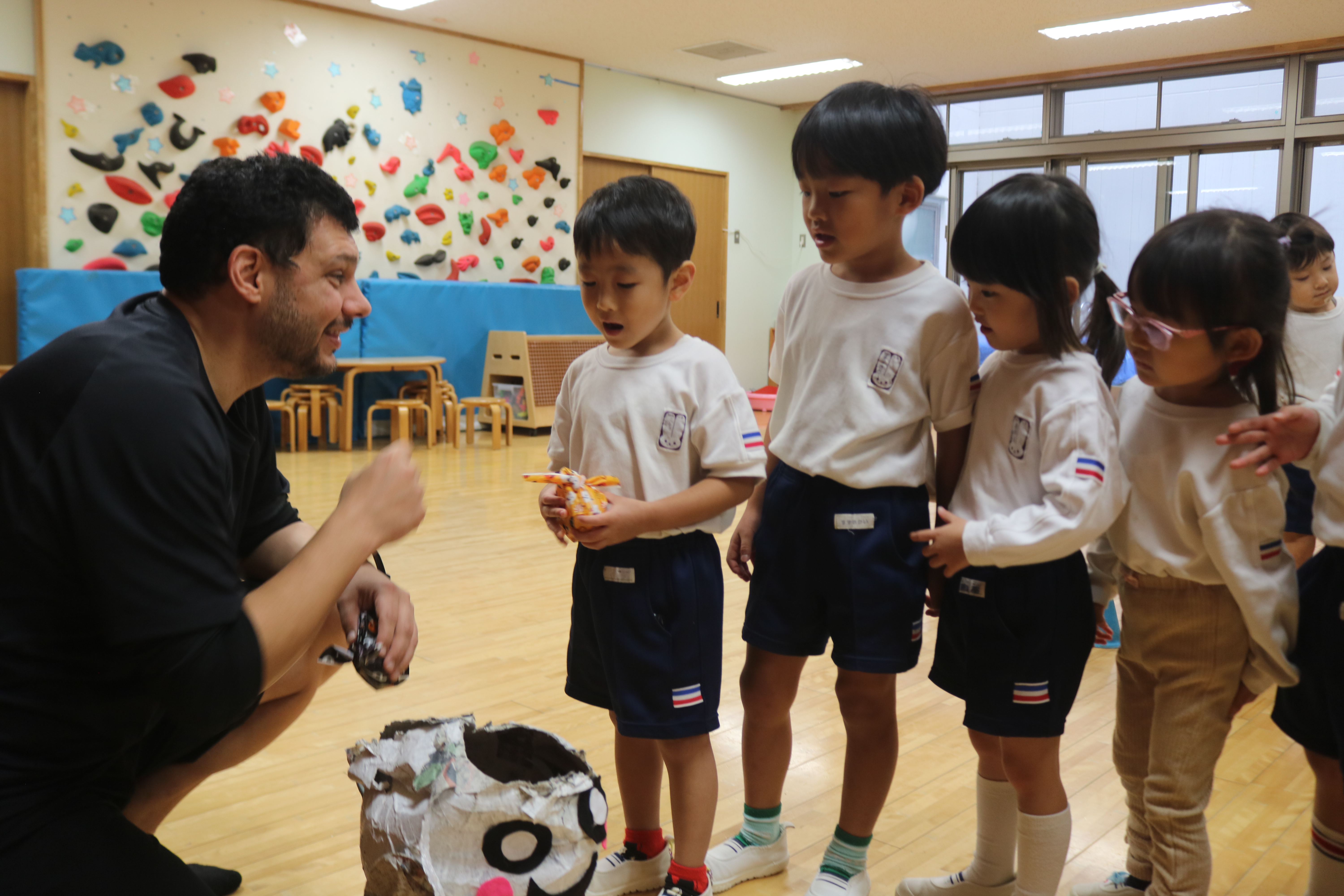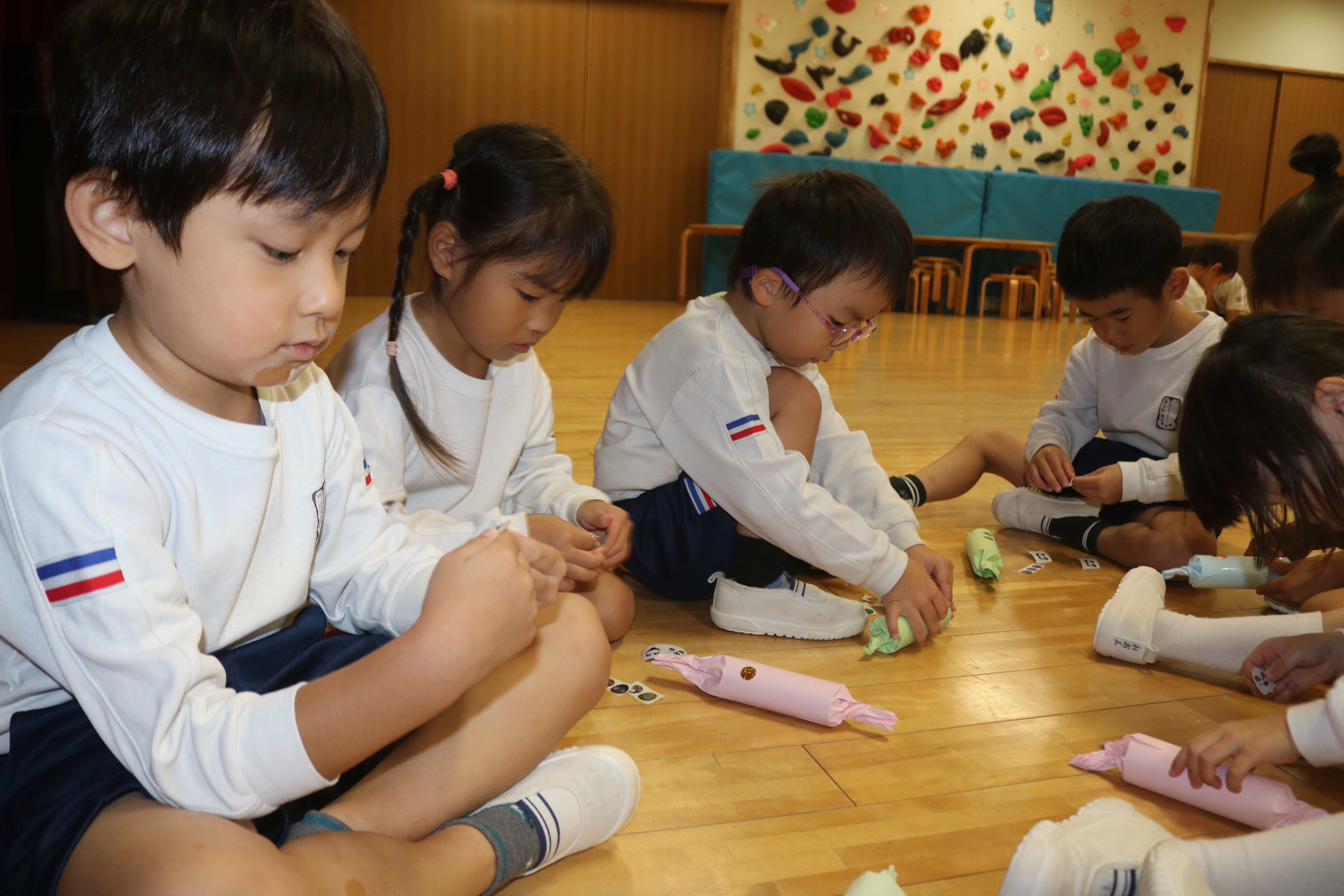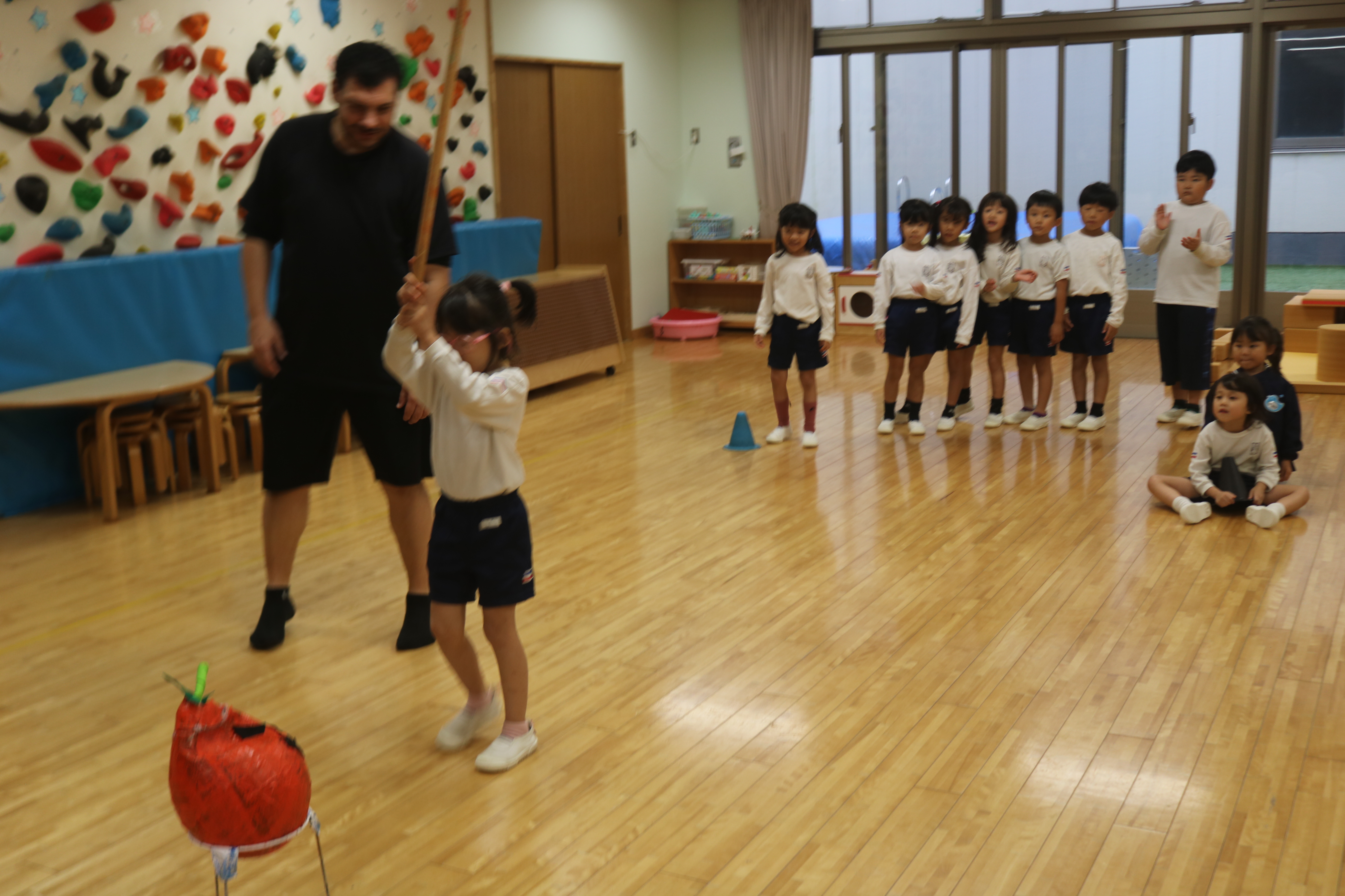 ゆり・あやめ組が「英語であそぼう」に参加しました。「ハロウィーン」をテーマに制作をしたり、ゲームをしたりしました。楽しんで参加していた子どもたちでした。
