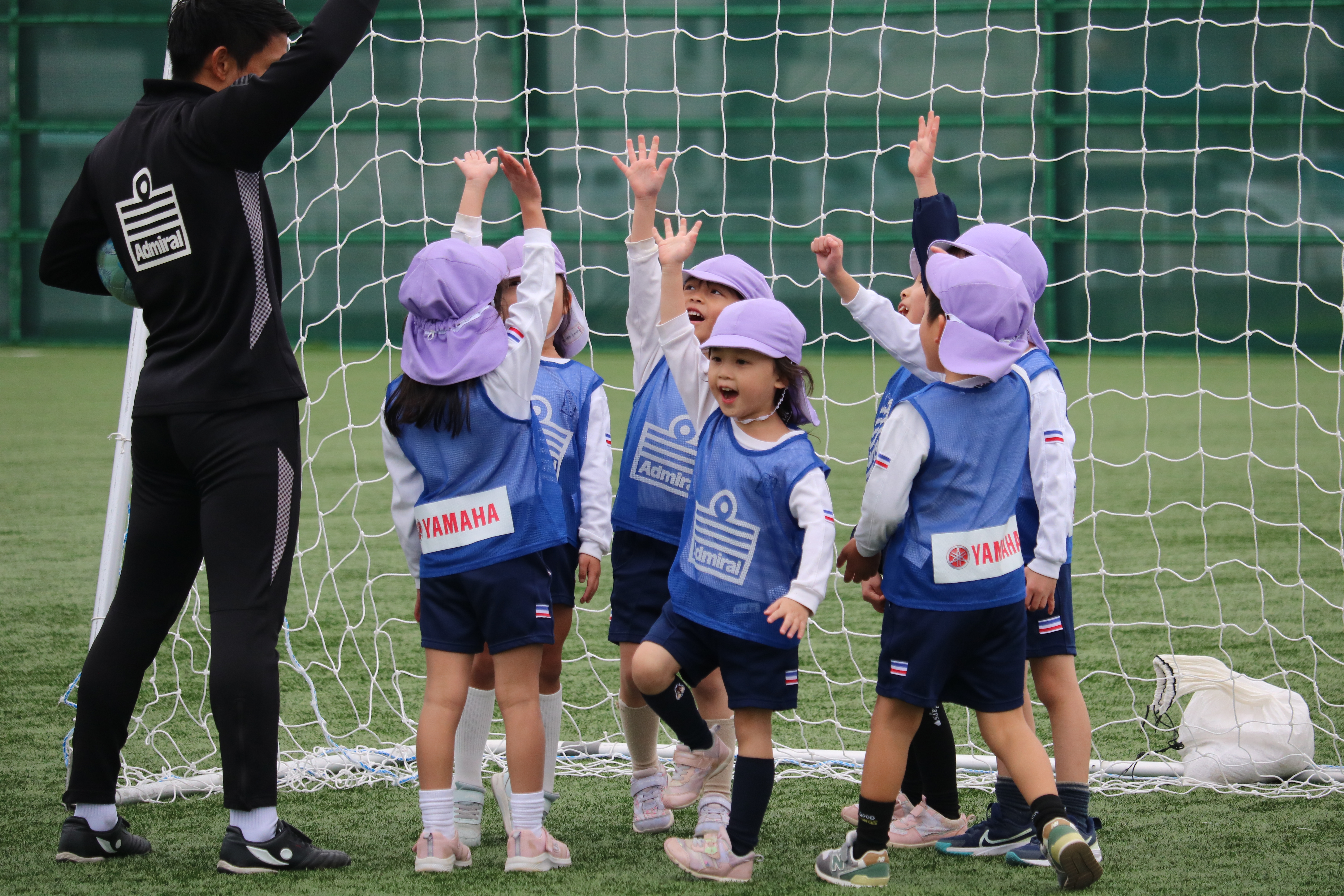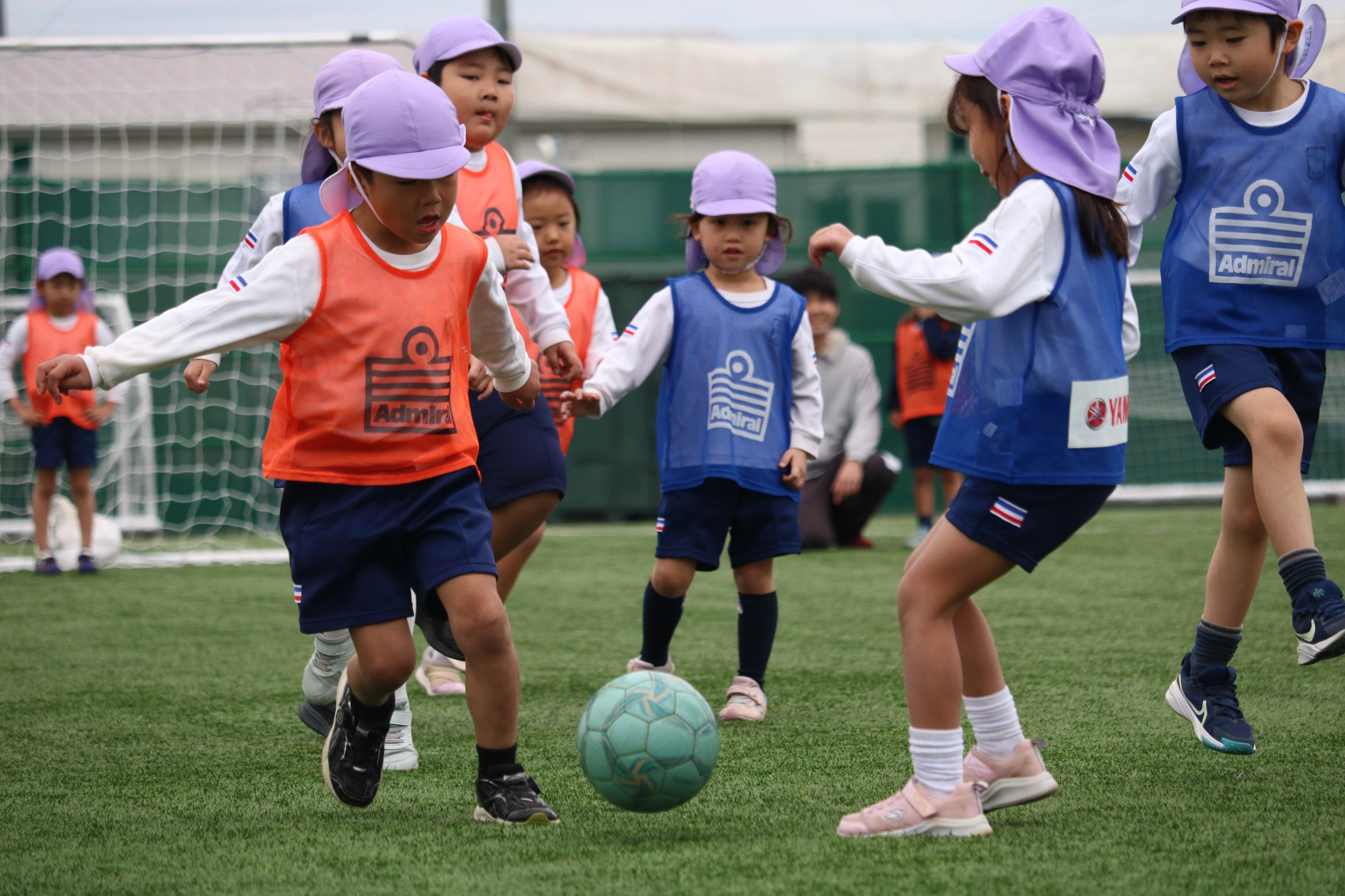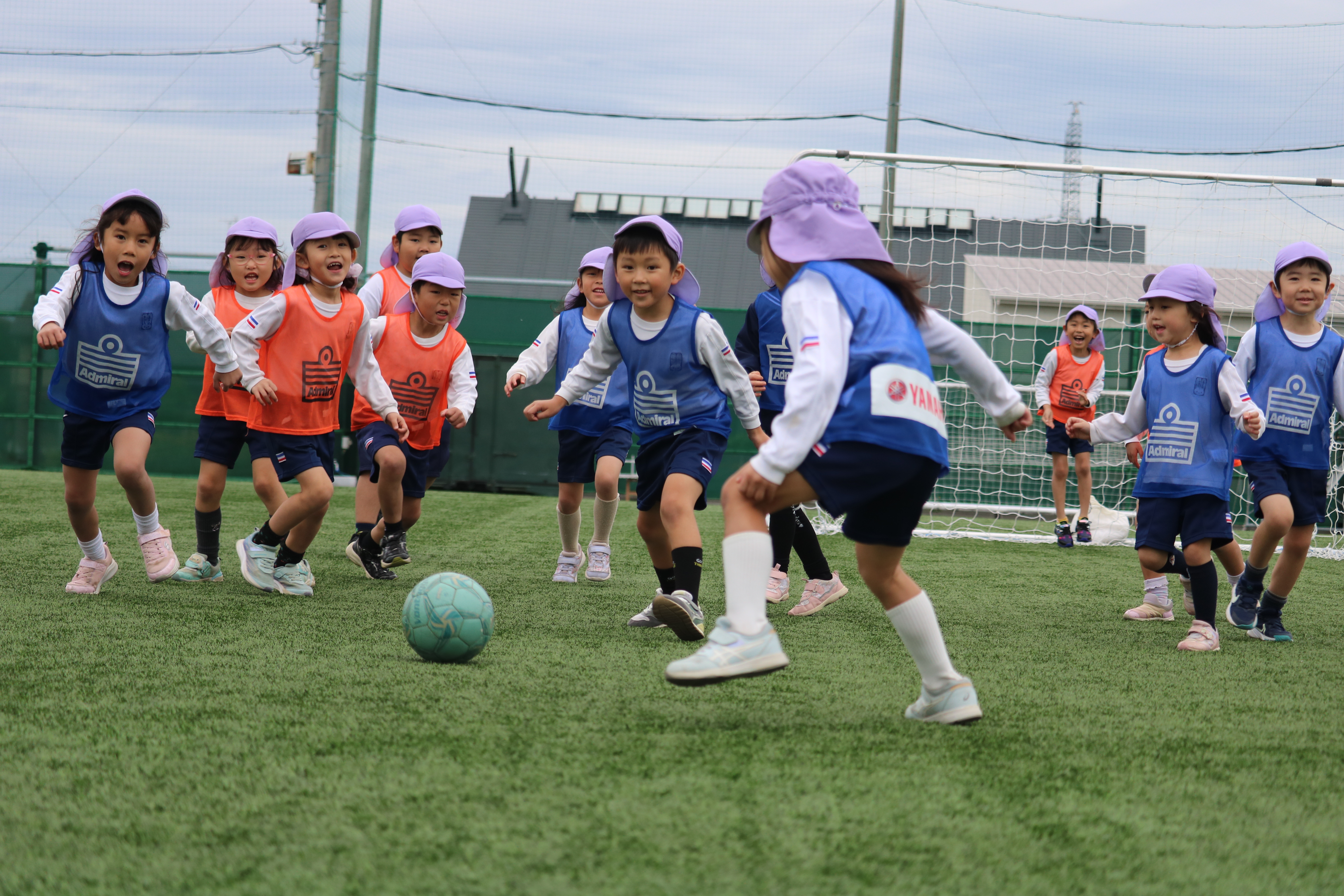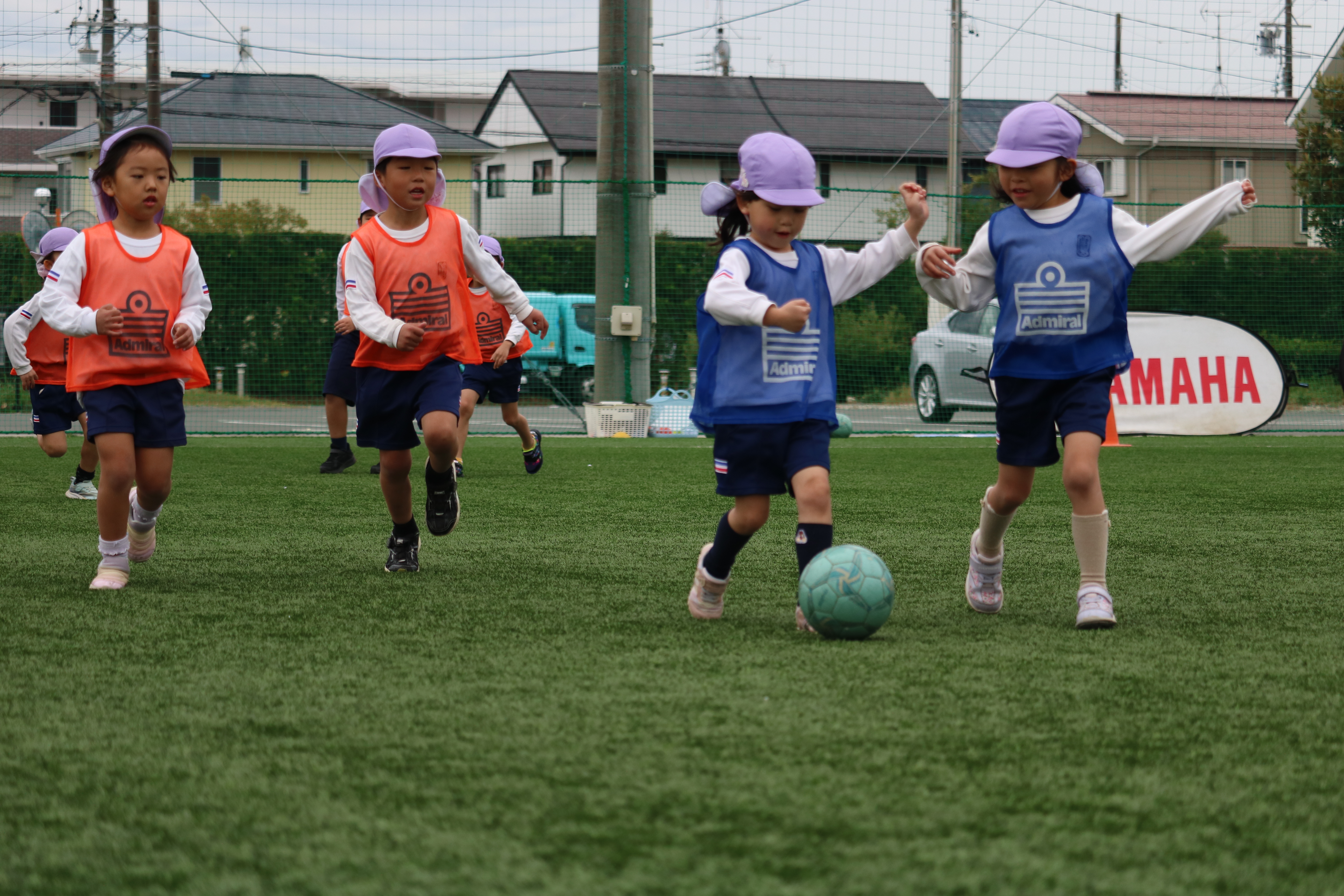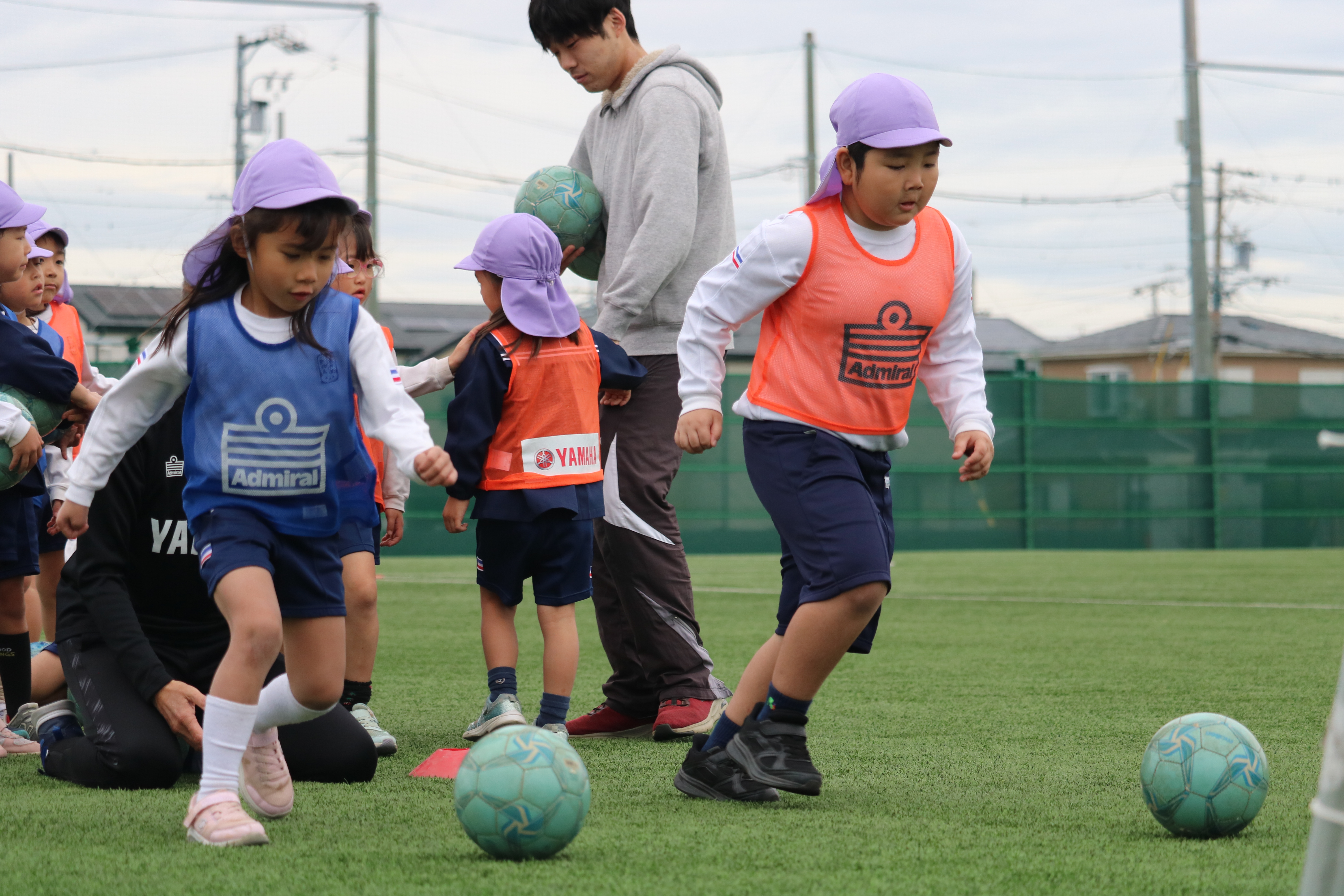 コーチ(ジュビロ磐田普及スタッフ)と一緒にボール遊びやゲームを楽しみ、チームで協力して真剣に取り組む姿が見られました。「まだやりたい!」と話すほど、楽しい時間となりました。