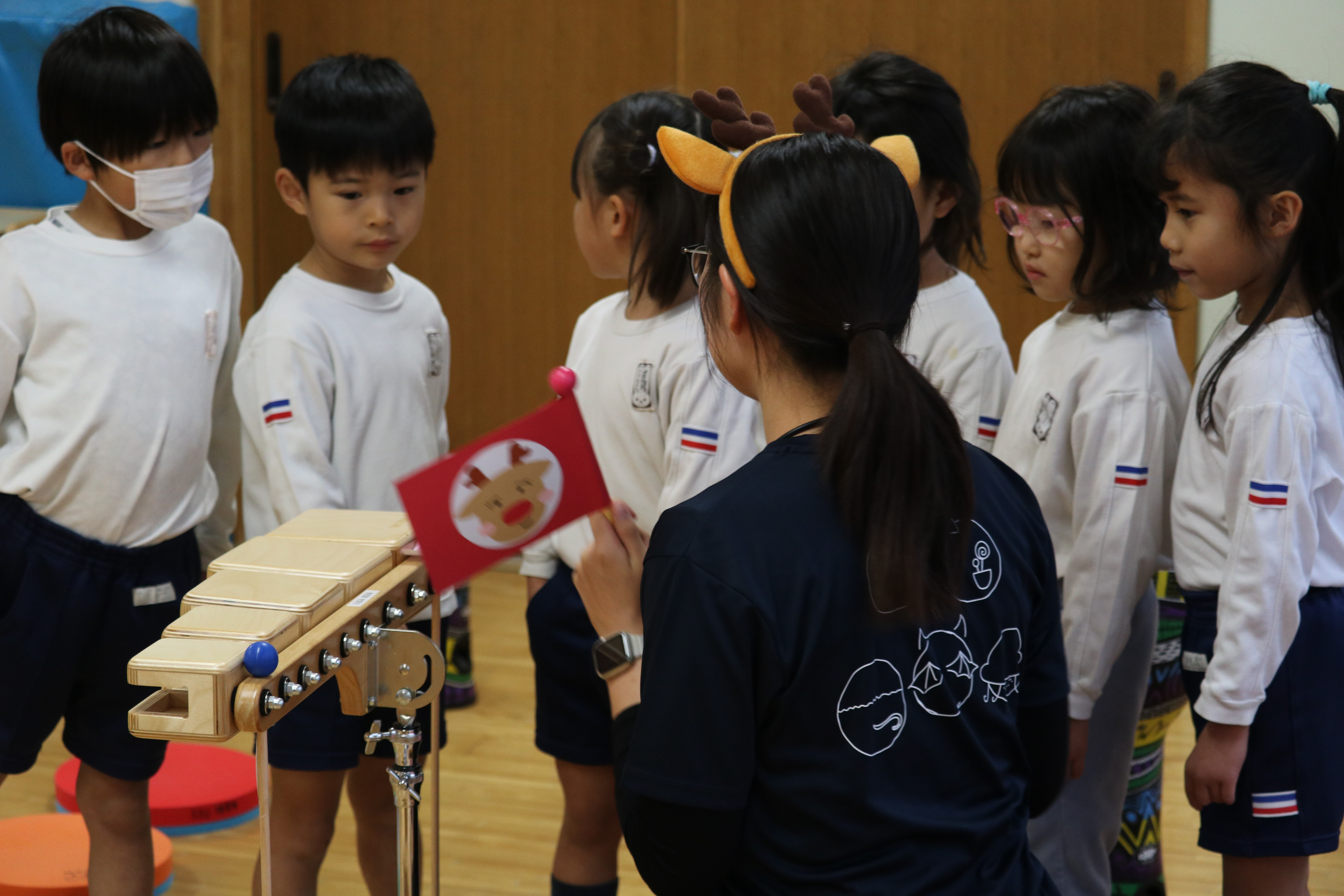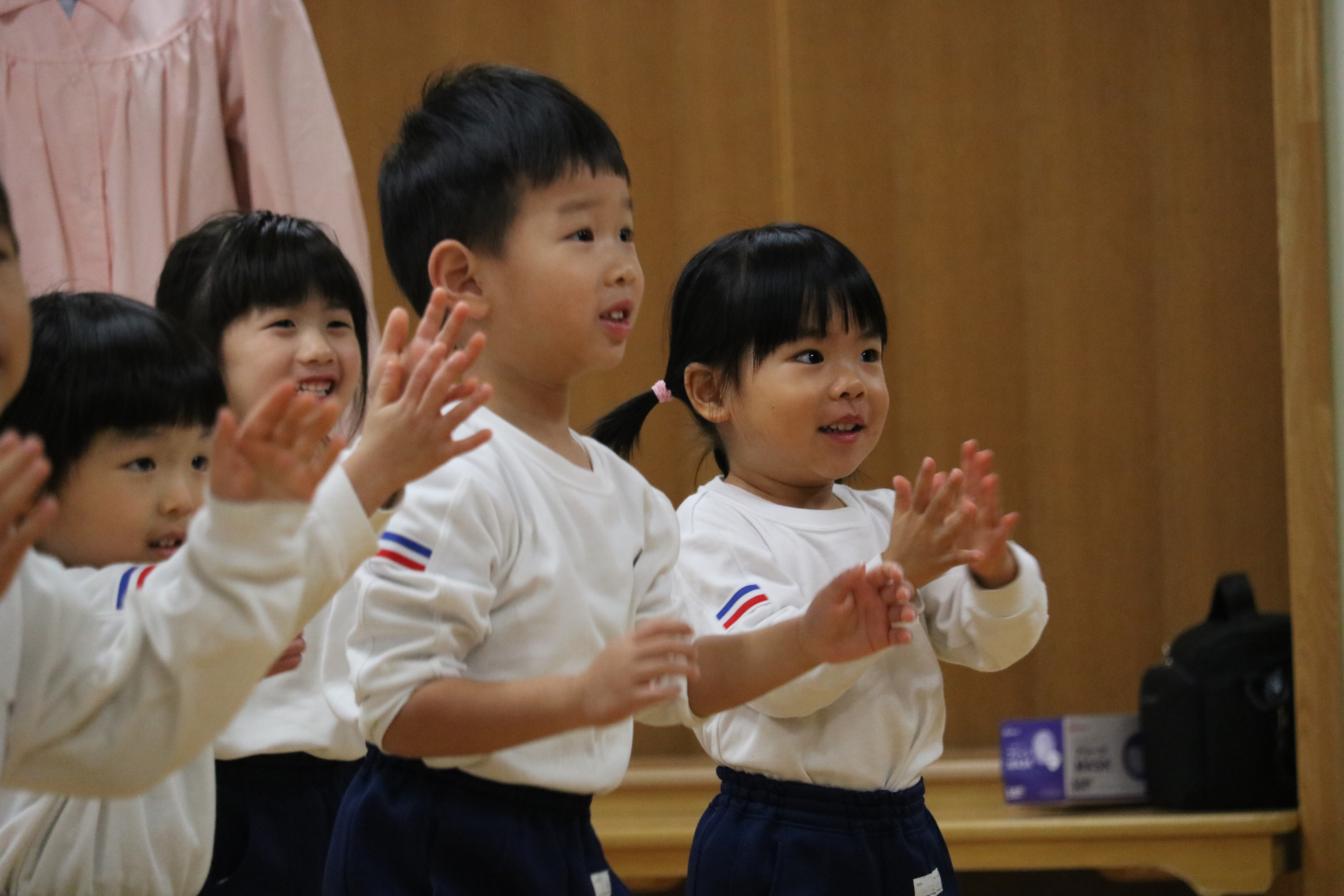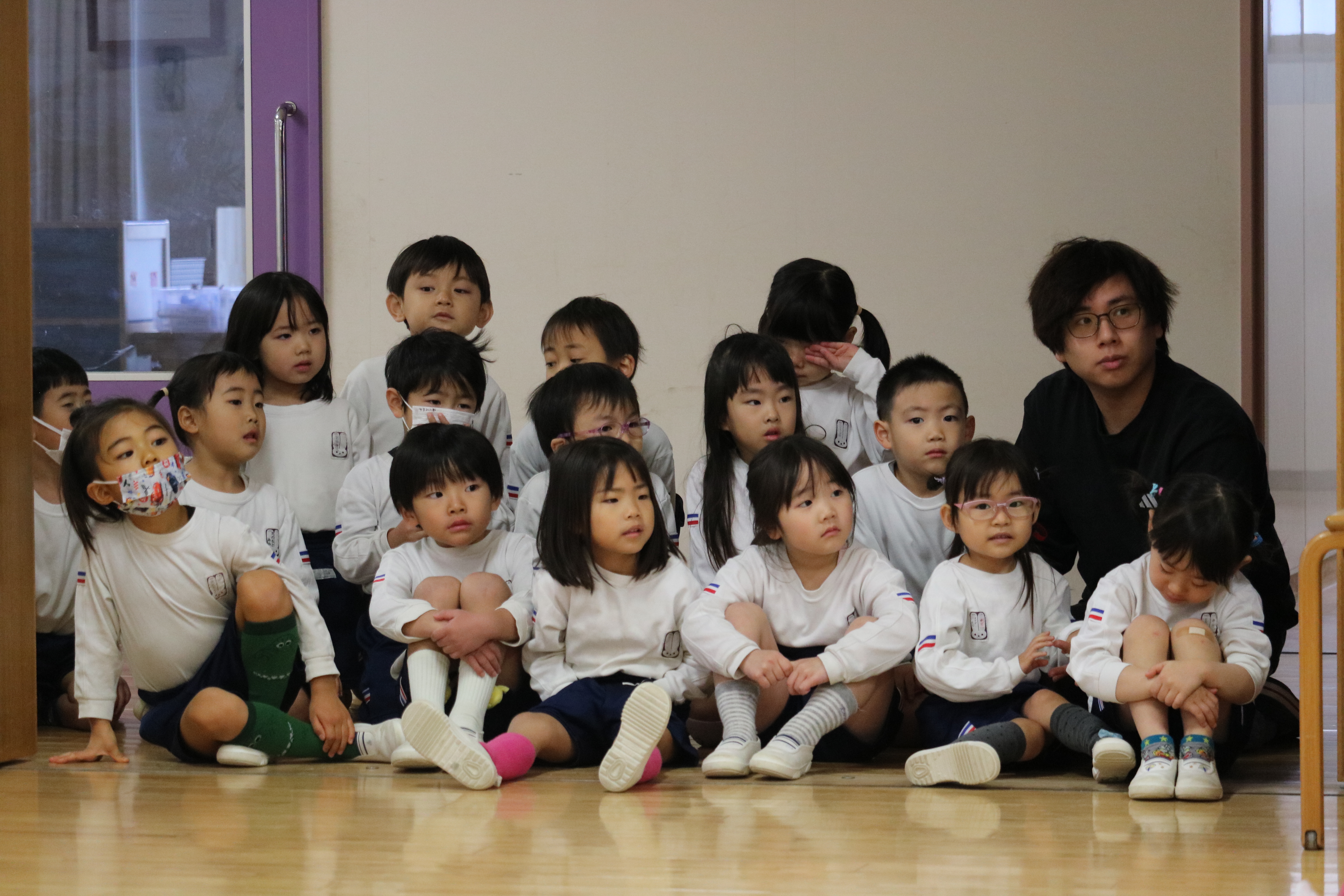 なお、ゆり組は感染症が流行している状況を踏まえ、廊下から距離をとり、見学という形で参加しました。