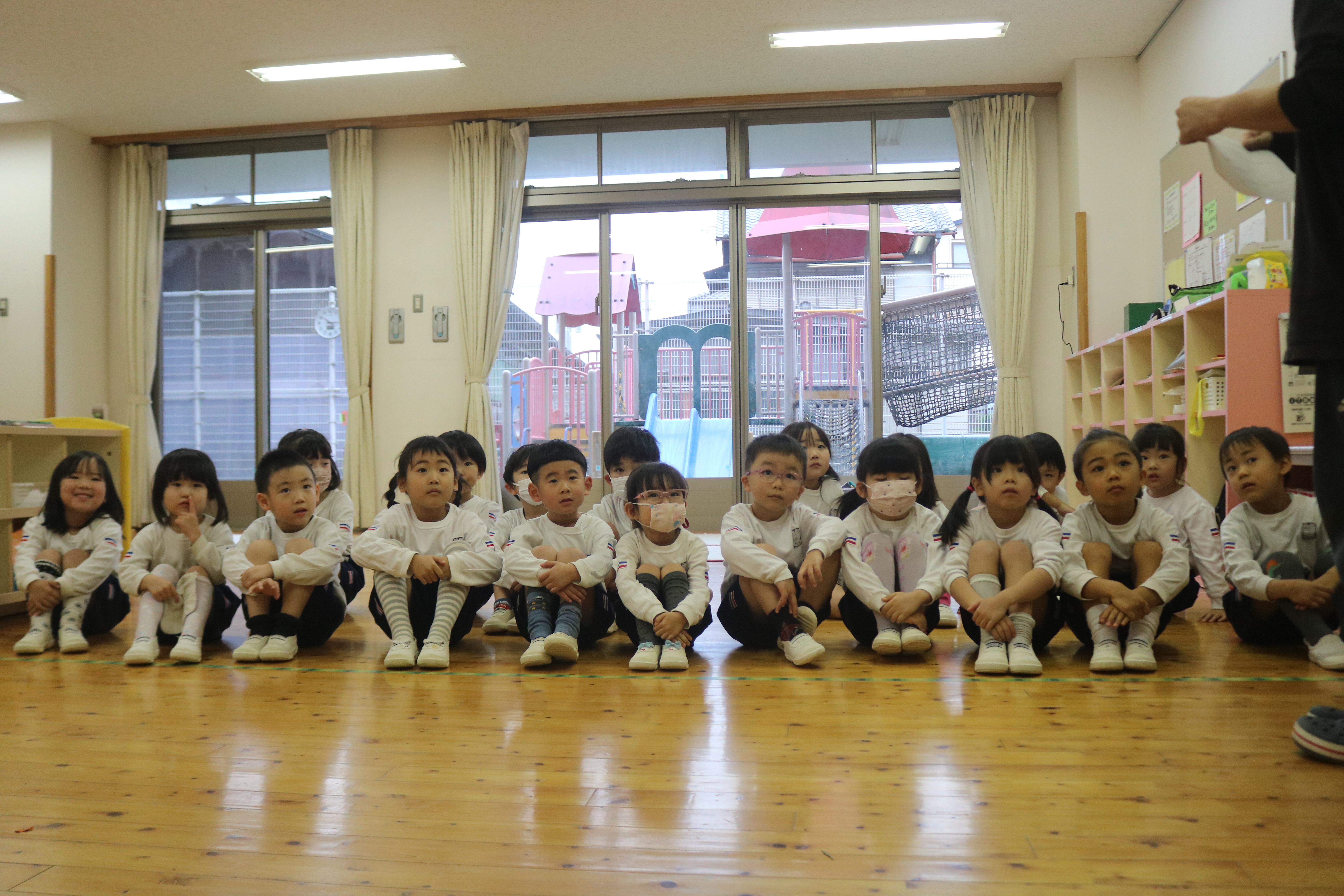 感染症の流行を考慮し、全体でのクリスマス会は行わず、サンタさんが各クラスを回ってプレゼントを届けてくれました。