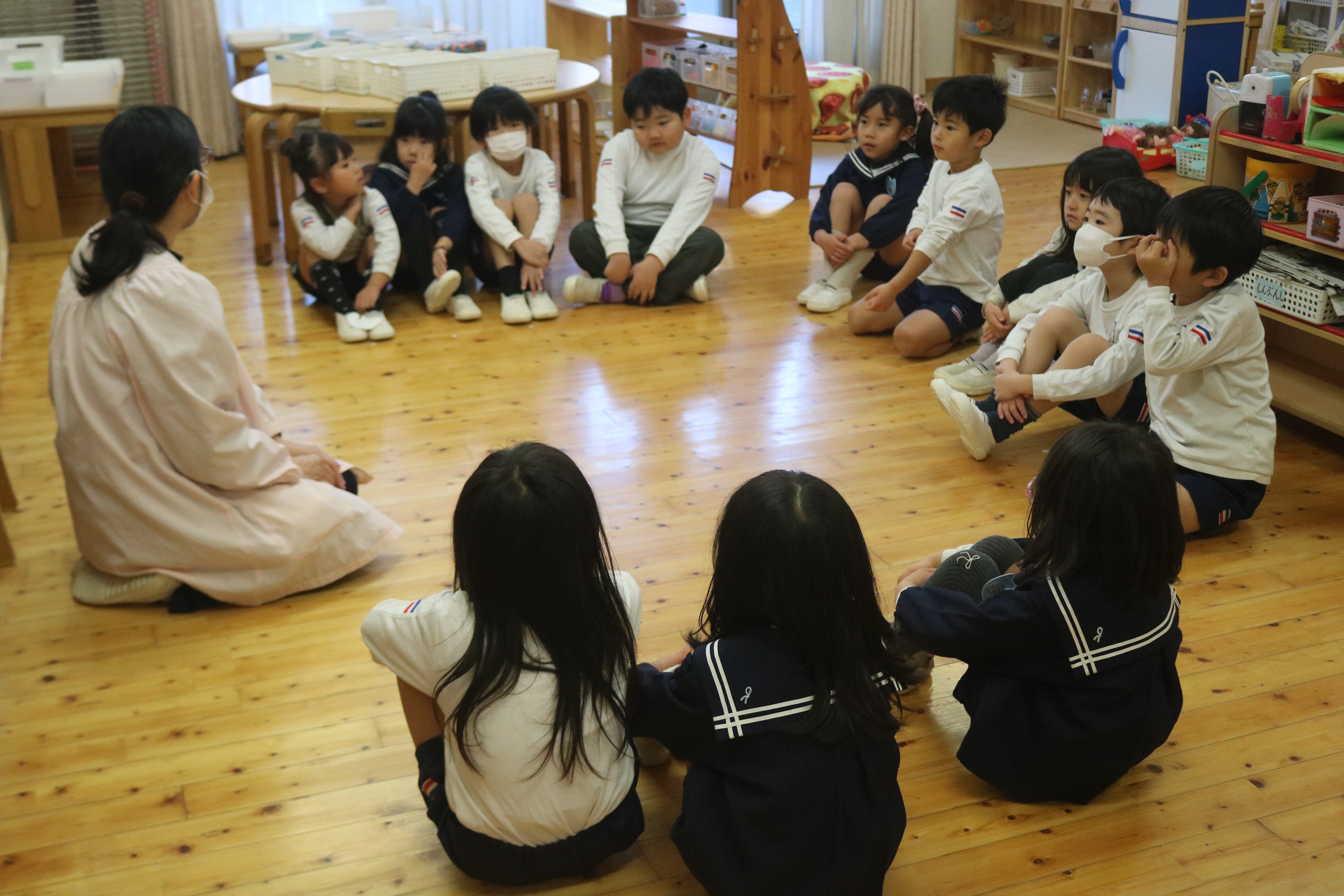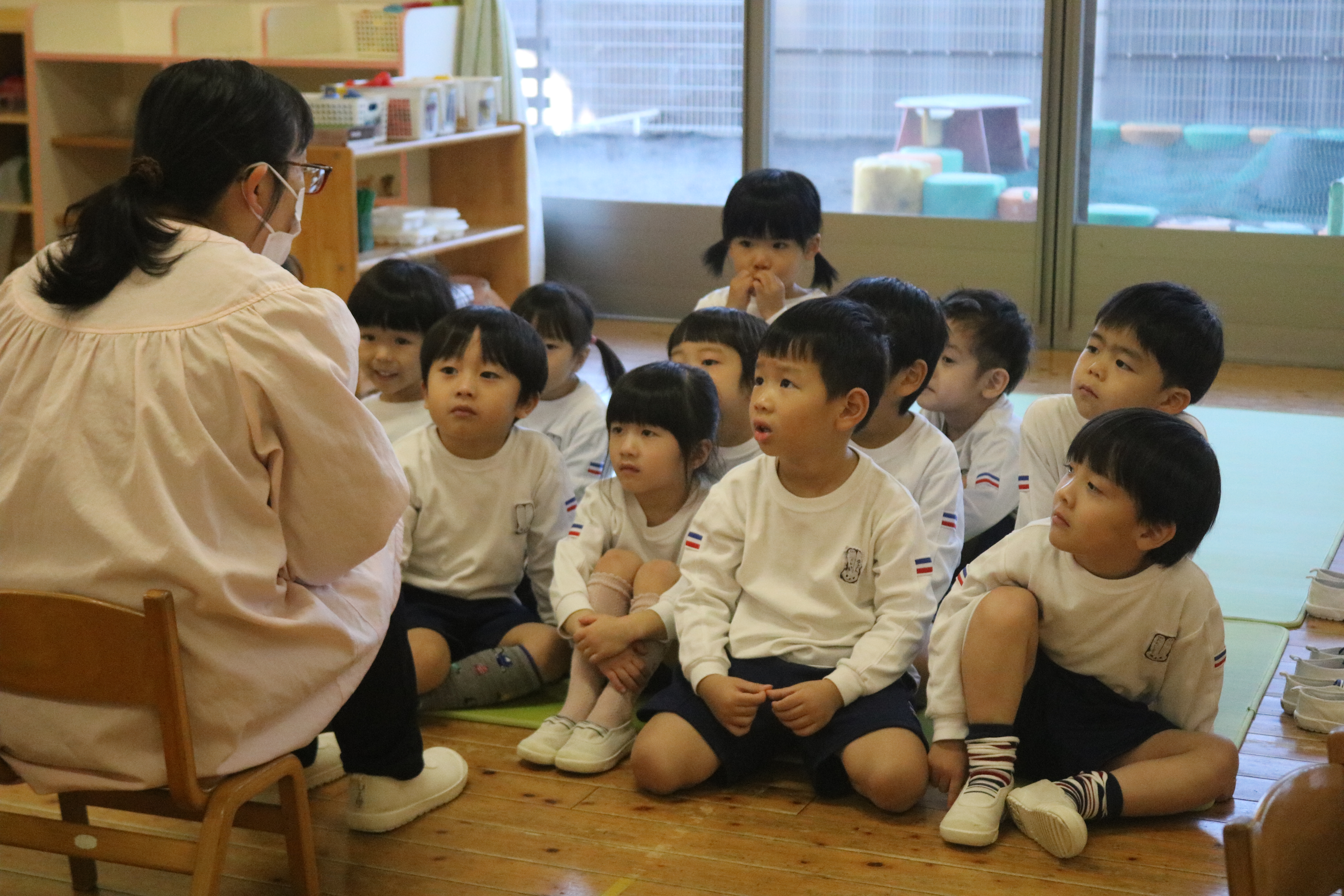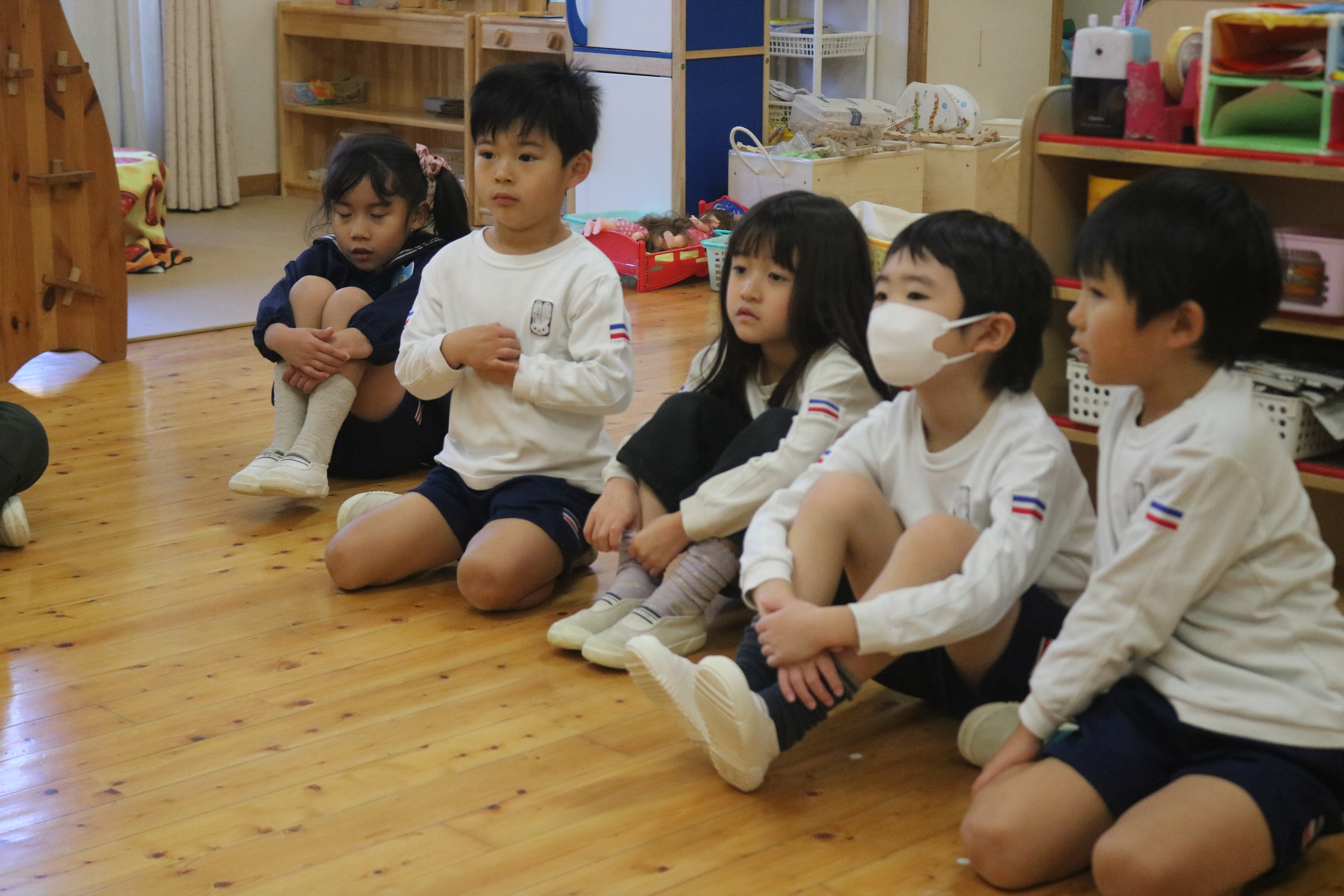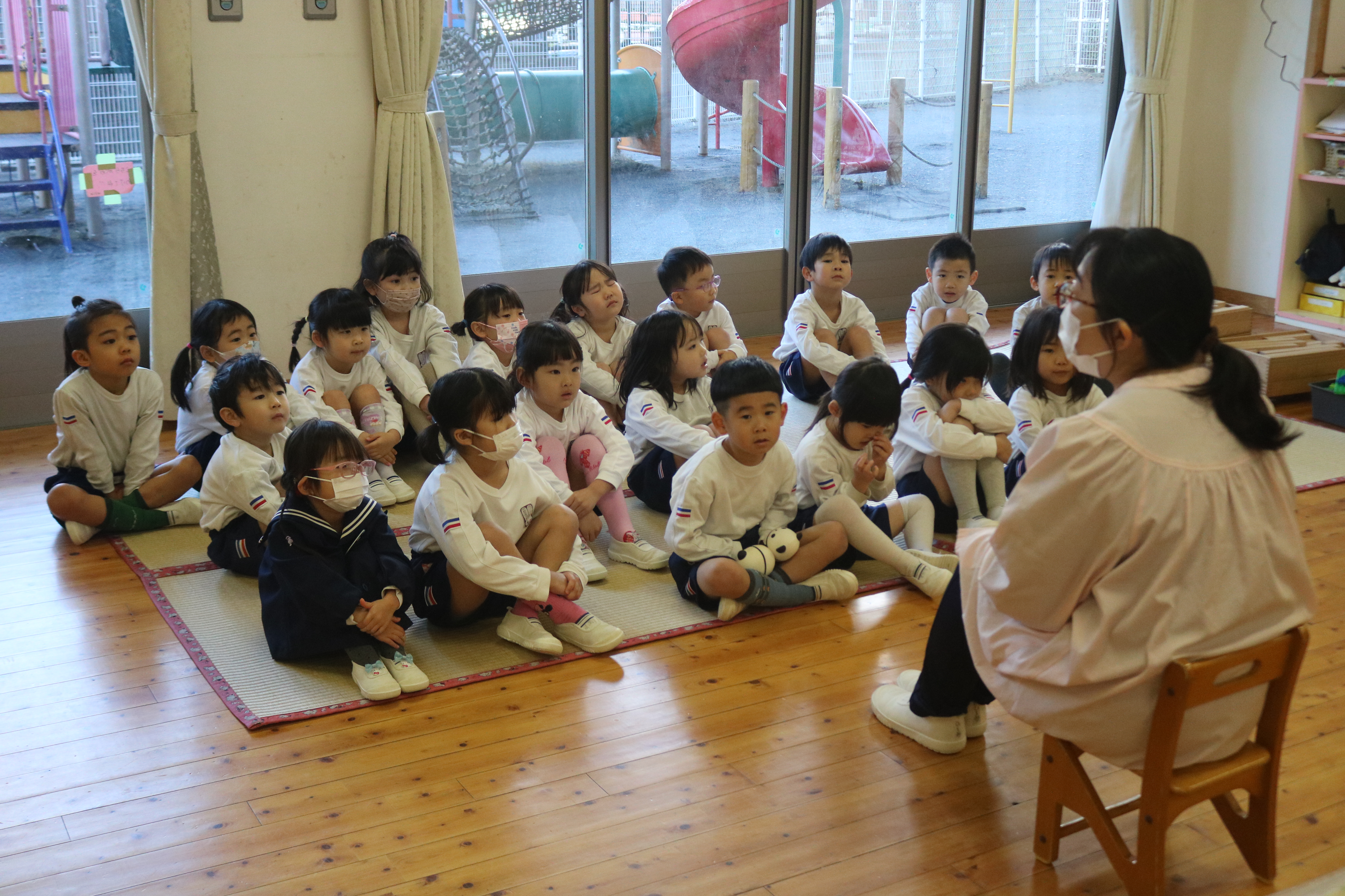 感染症拡大防止のため、全体で集まることはせず、各クラスにて園長先生から子どもたちへ「3つのおねがい」のお話がありました。