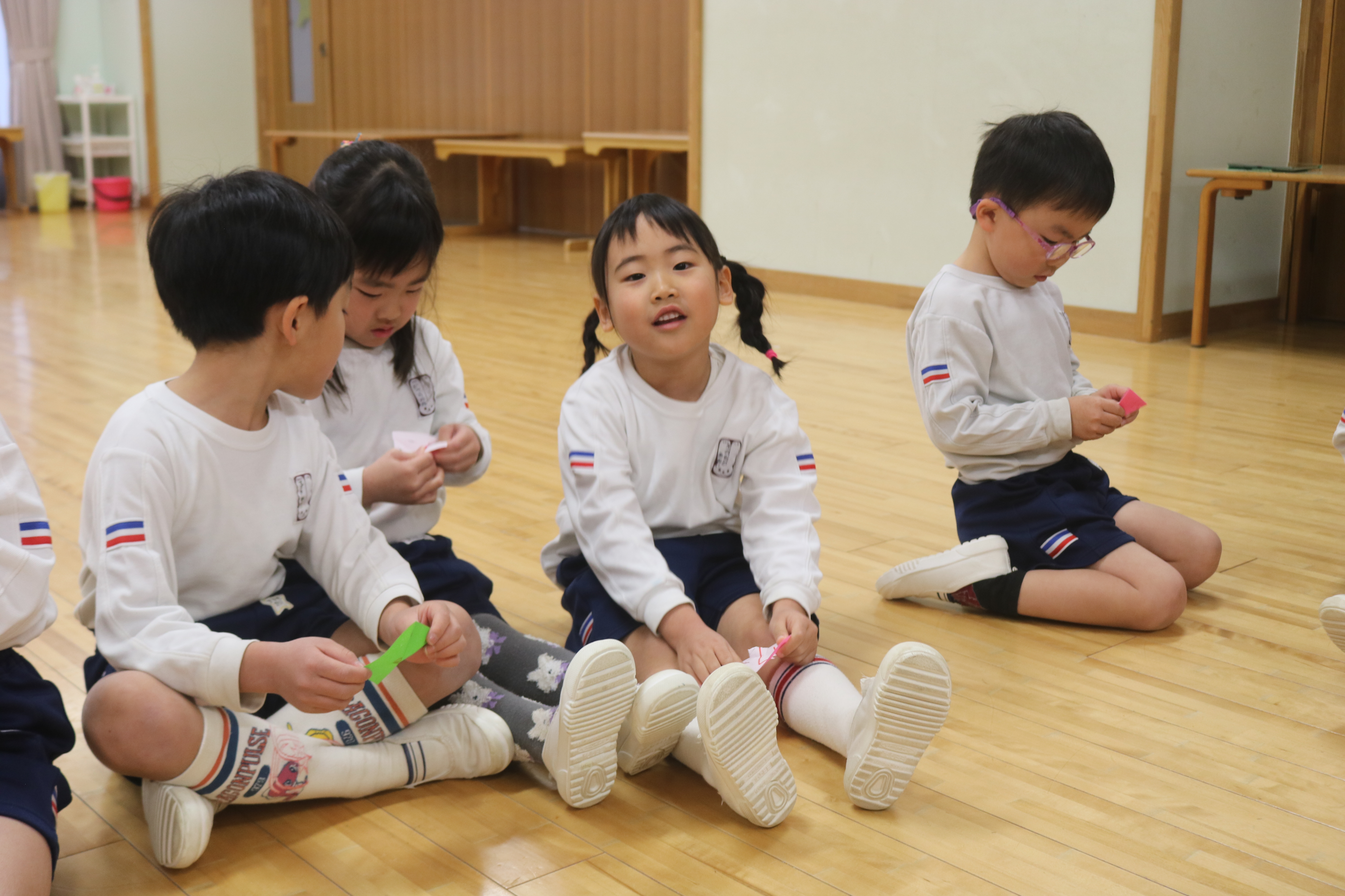 英語であそぼう!を行いました~きく組・ゆり組~ きく組 きく組 ゆり組 ゆり組 本日は「英語であそぼう!」がありました。 前回と同様におみくじをひき、わくわくした表情で楽しむ子どもたちでした。イングラム先生と一緒に、英語に親しみながら楽しい時間を過ごしました。