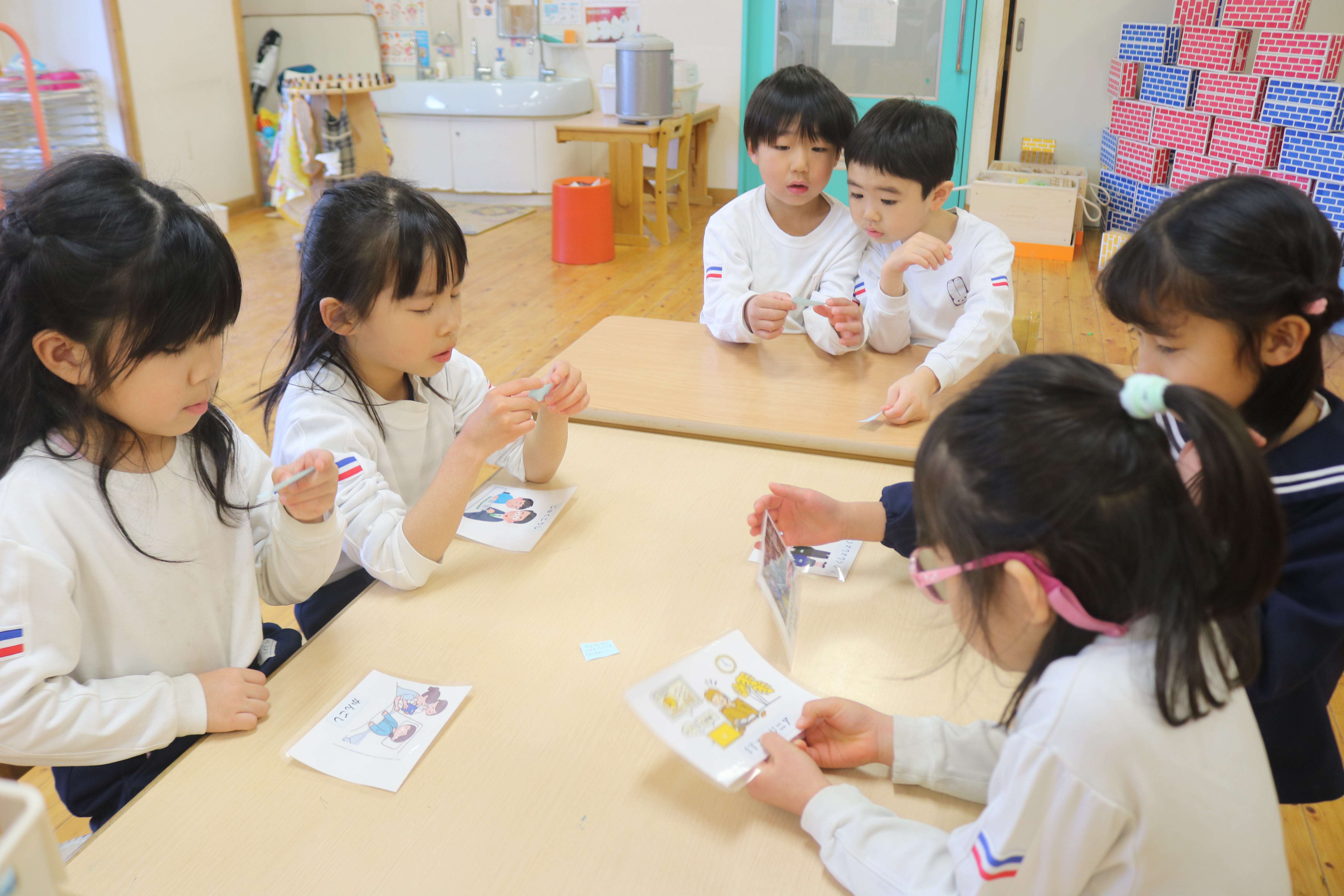 一人で答えを出すのではなく、自分の考えを伝えたり、友だちの意見を聞いたりしながら進める中で、思考力や協調性といった育ちが感じられる時間となりました。