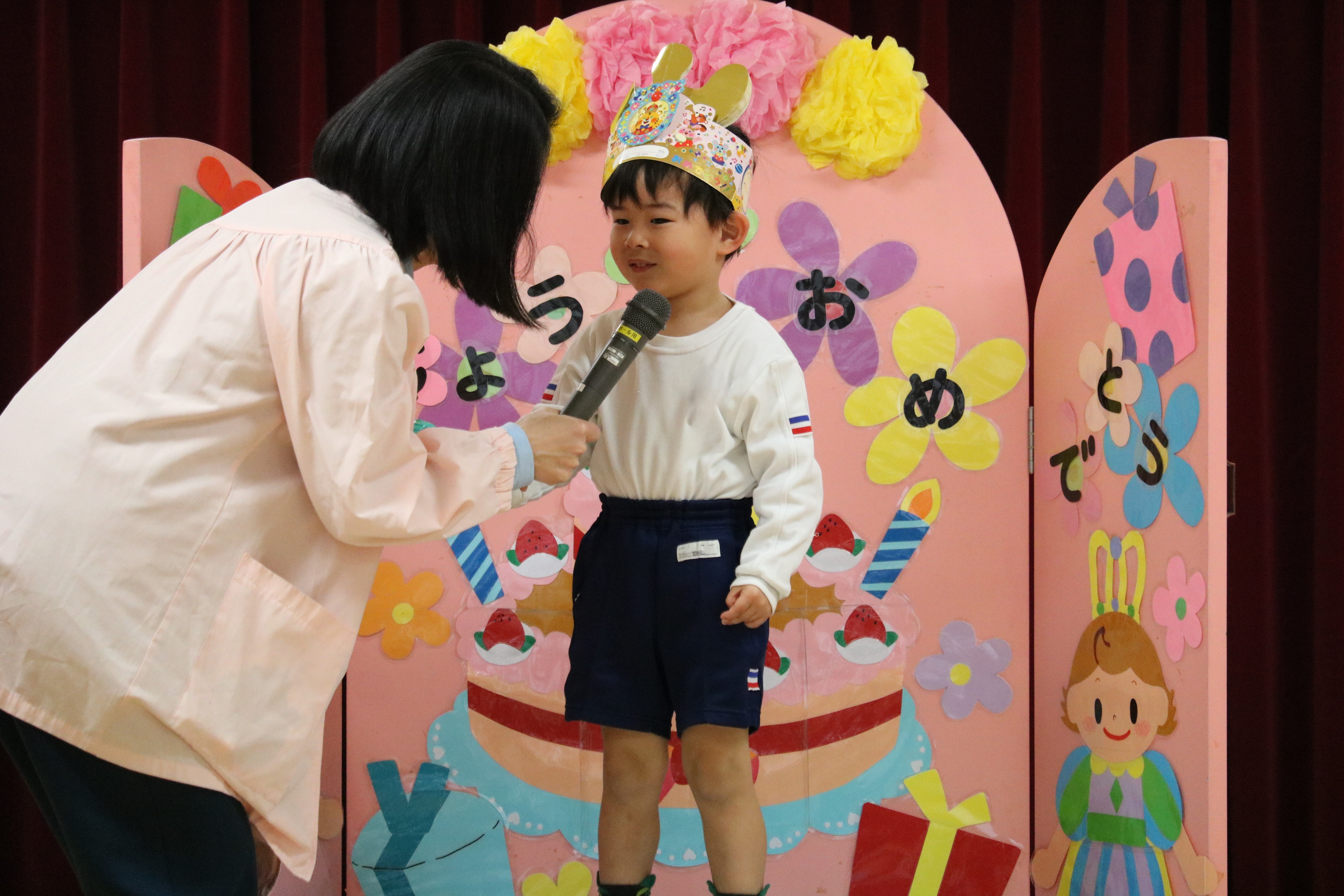 本日は、2月生まれのお友だちのお誕生日会を行い、みんなでお祝いしました。