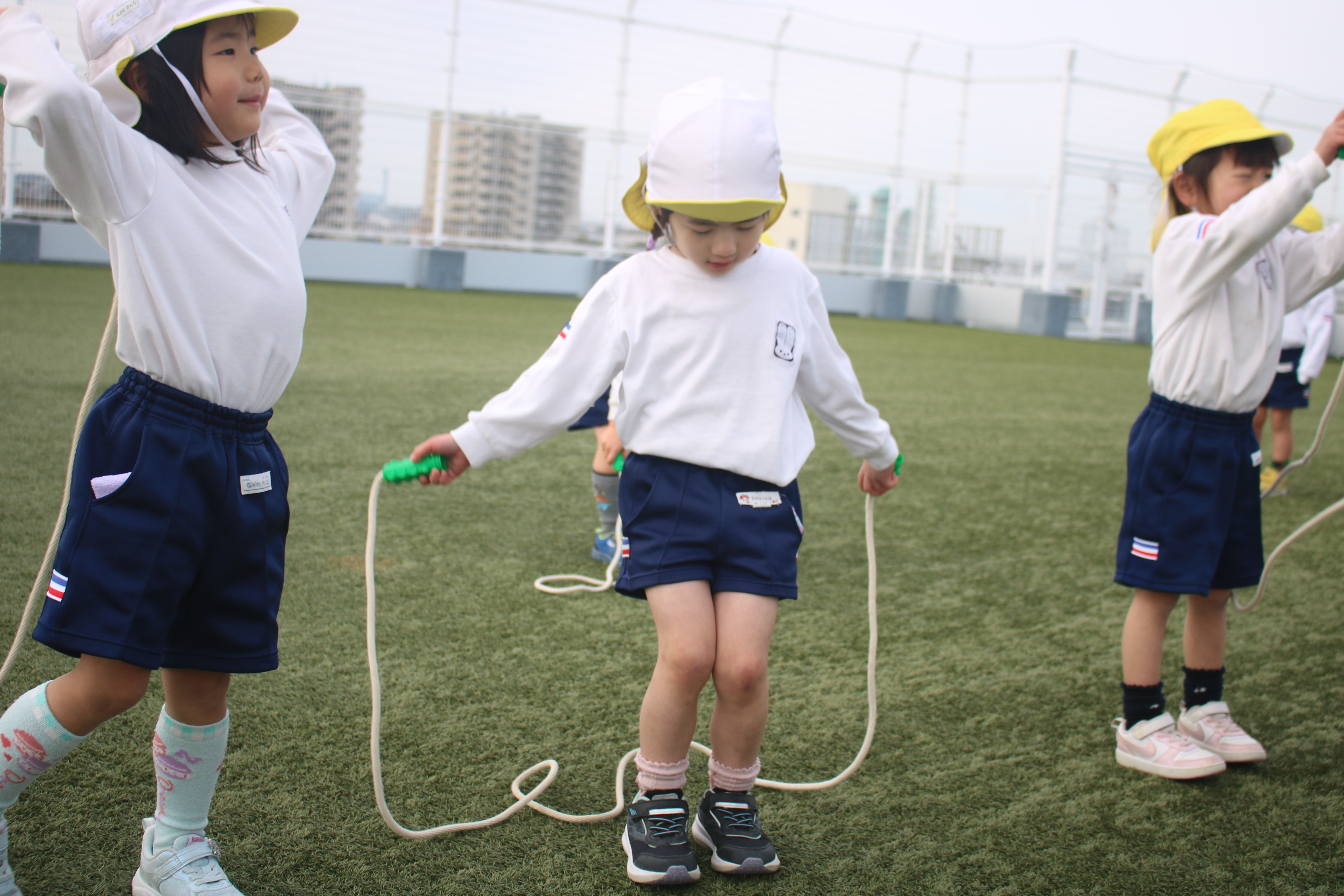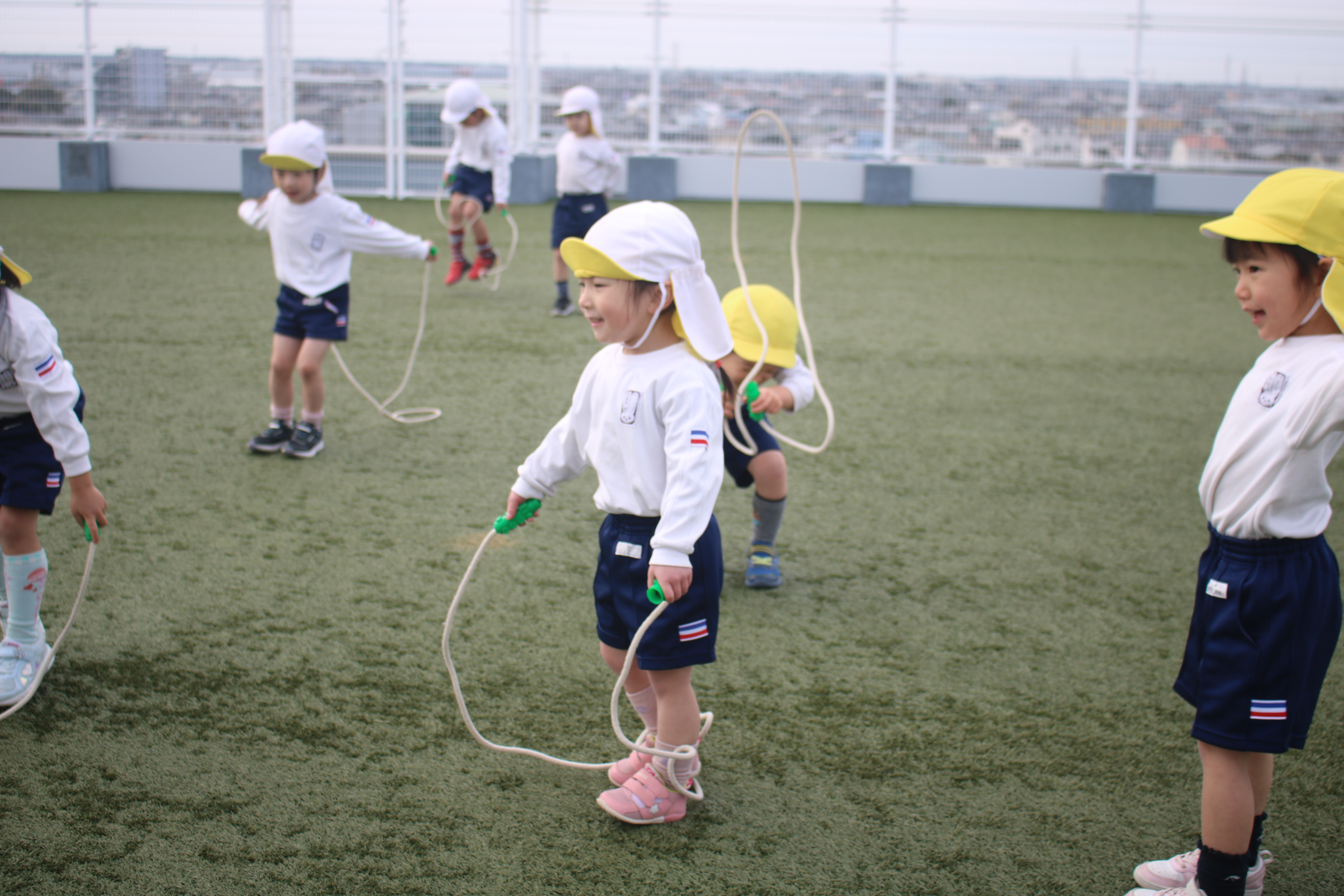 気のいい羊たちがありました きく組 きく組 ゆり組 ゆり組 あやめ組 あやめ組 本日、気のいい羊たちがありました。せんべー先生指導のもと、縄跳びやサーキットあそびを行い、体力づくりを楽しみながら行いました。 今日は比較的風が穏やかでしたので、気持ちよく屋上で体を動かすことができました。