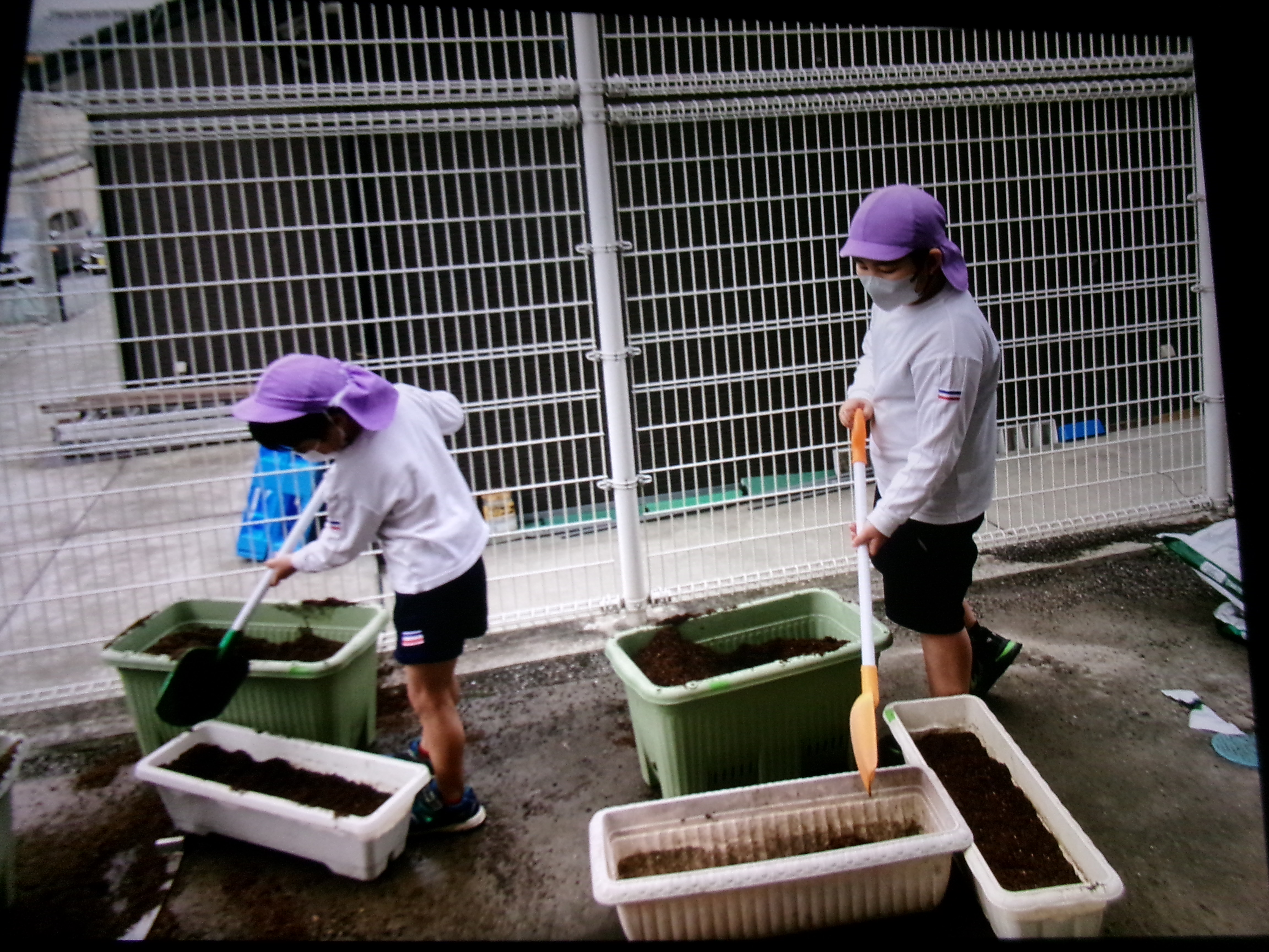 避難訓練を行いました/野菜の種を植えました